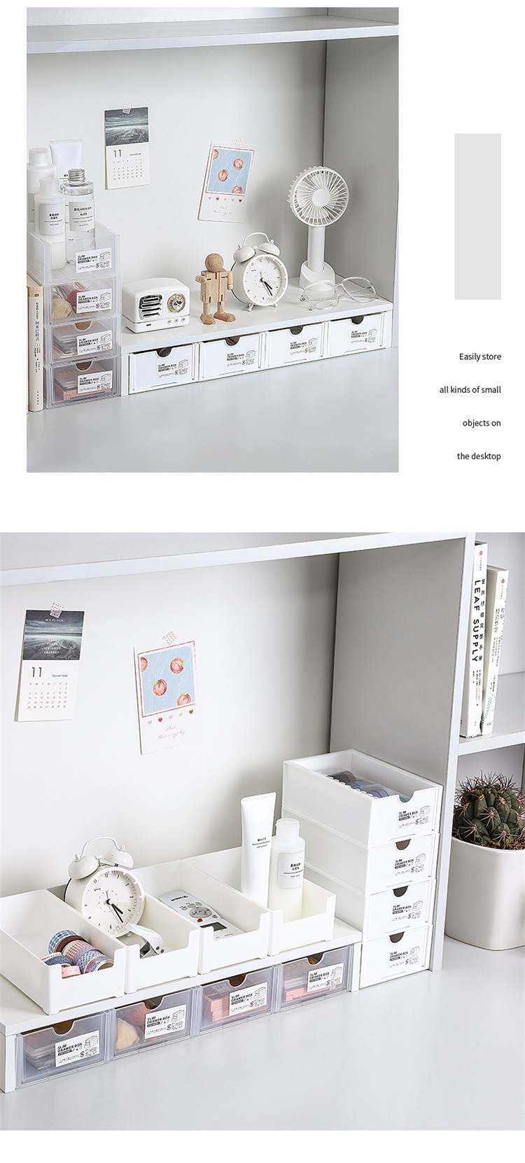 탁상 보관함 서랍형 학생 기숙사 책상 잡화 문구 화장품 마감 투명 플라스틱 보관함