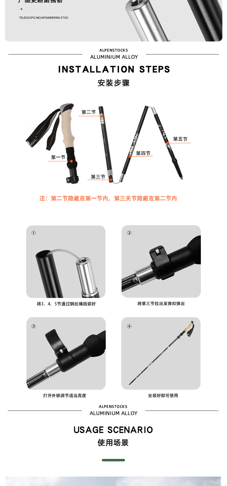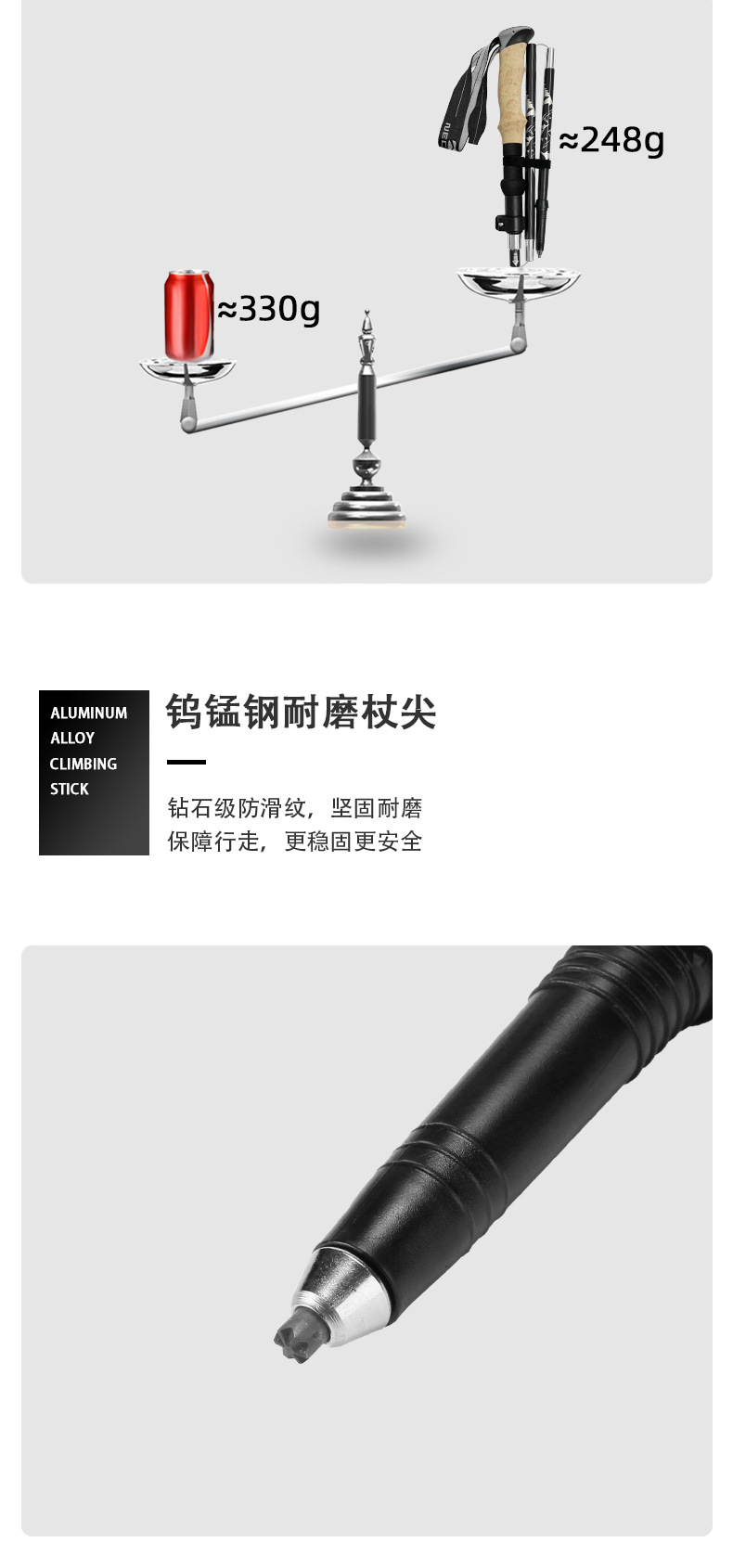 一根登山杖带配件重量:307g