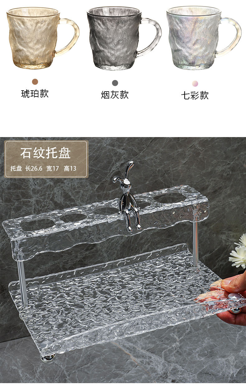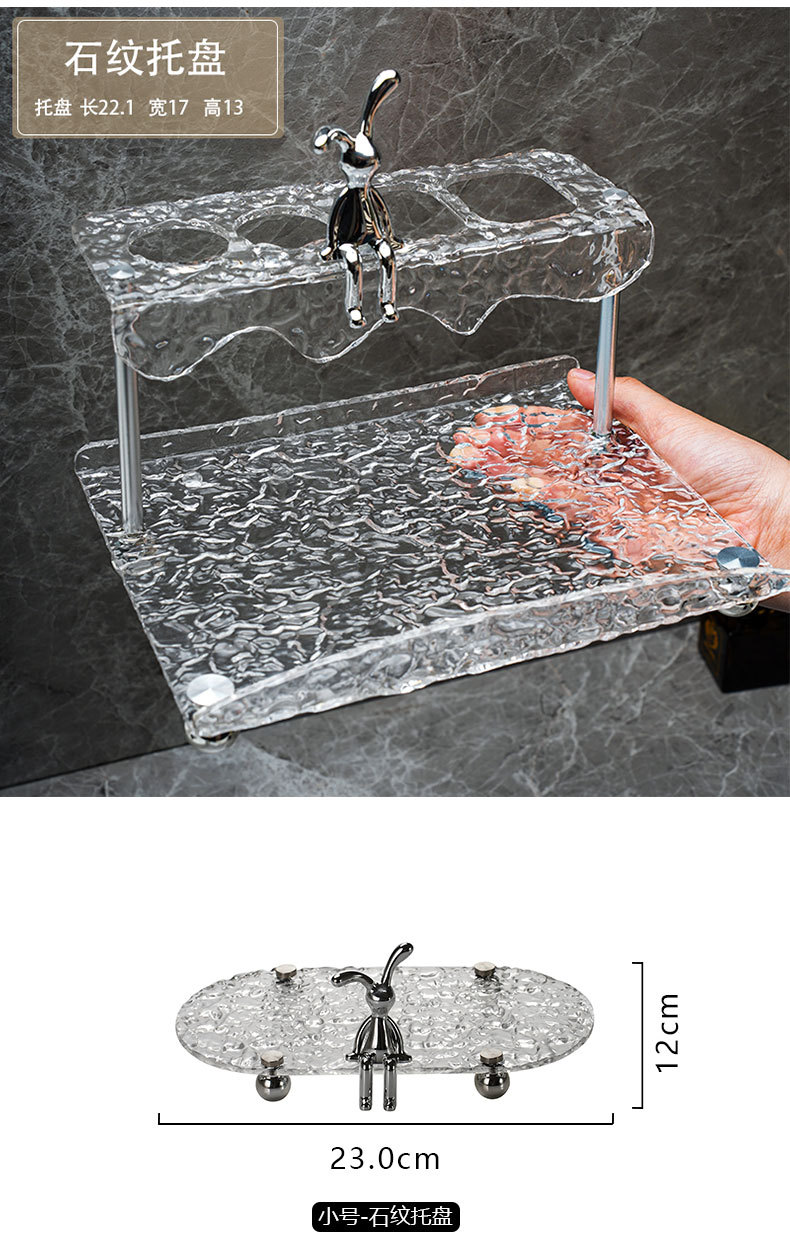 • 손잡이가 있는 짧은 스타일의 빙하재 + 투명 + 돌무늬 아크릴 트레이