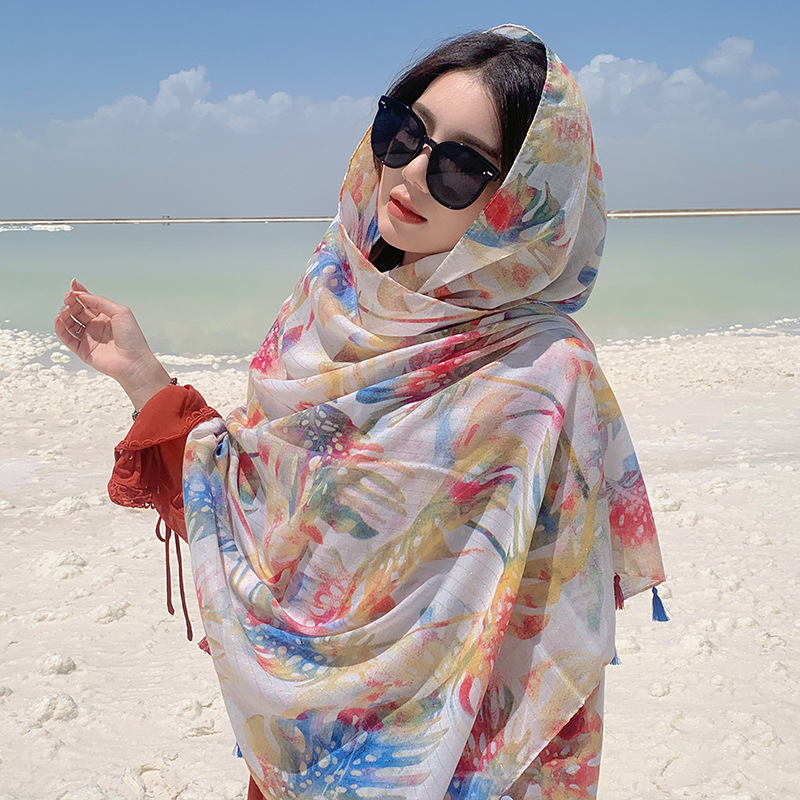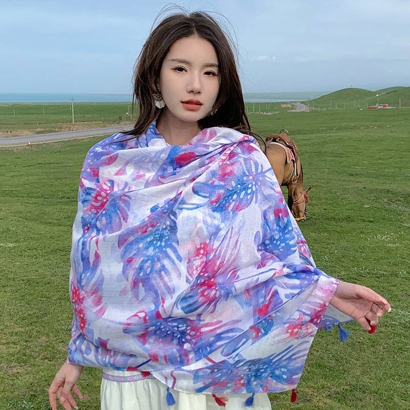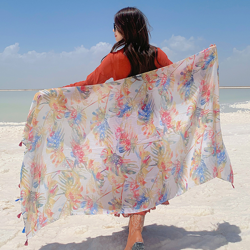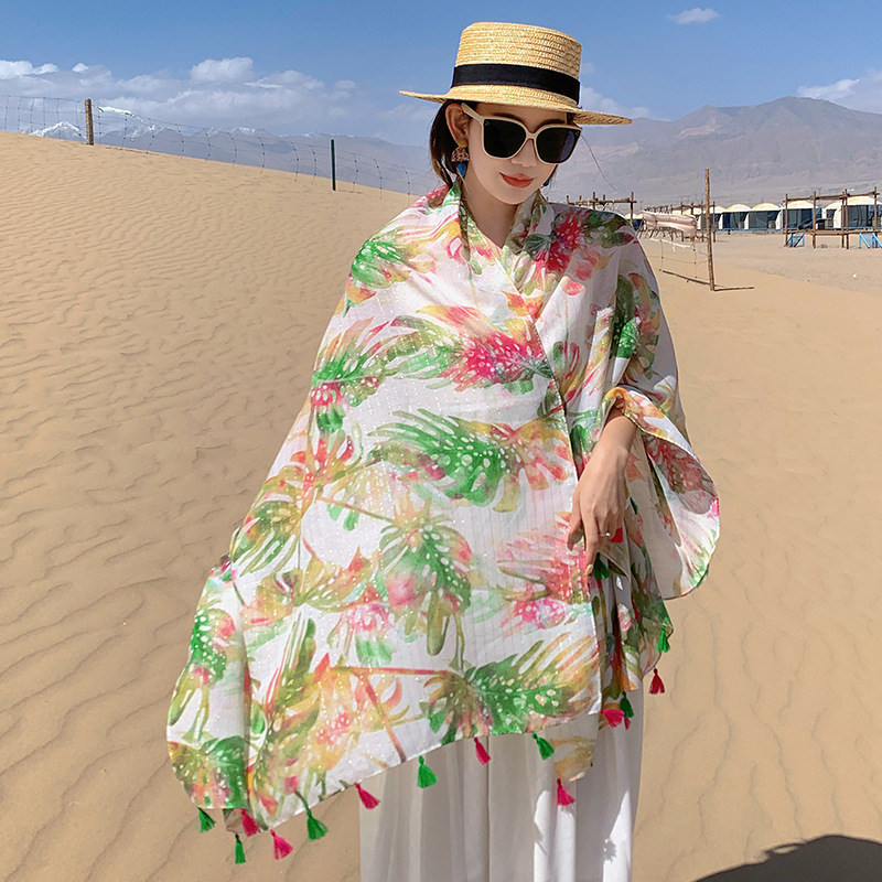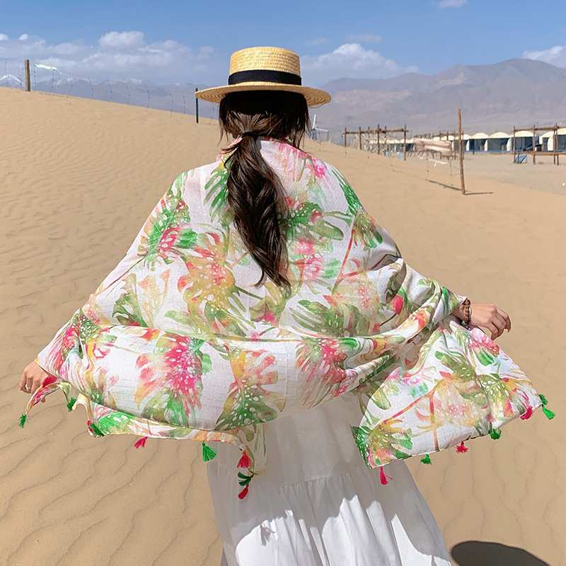 여름 사막 사진 여행 망토 캐주얼 패션 편안한 통기성 스카프 겉옷 대형 망토 바나나 잎 숄스토어 가기