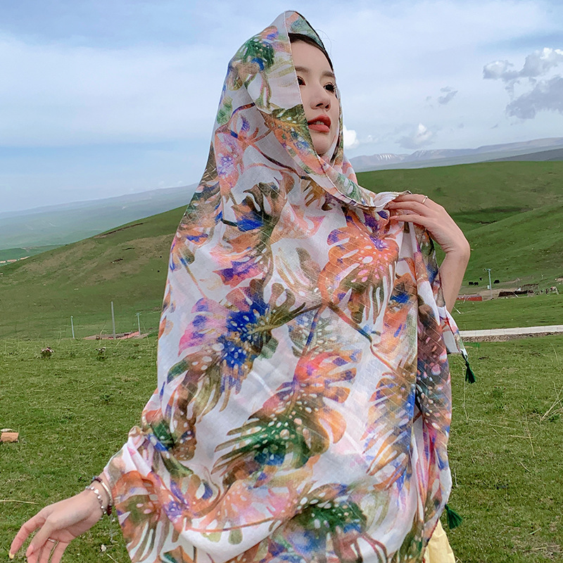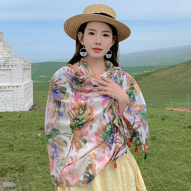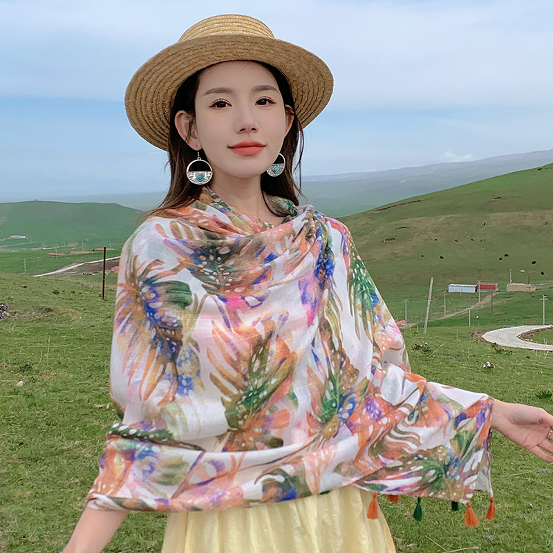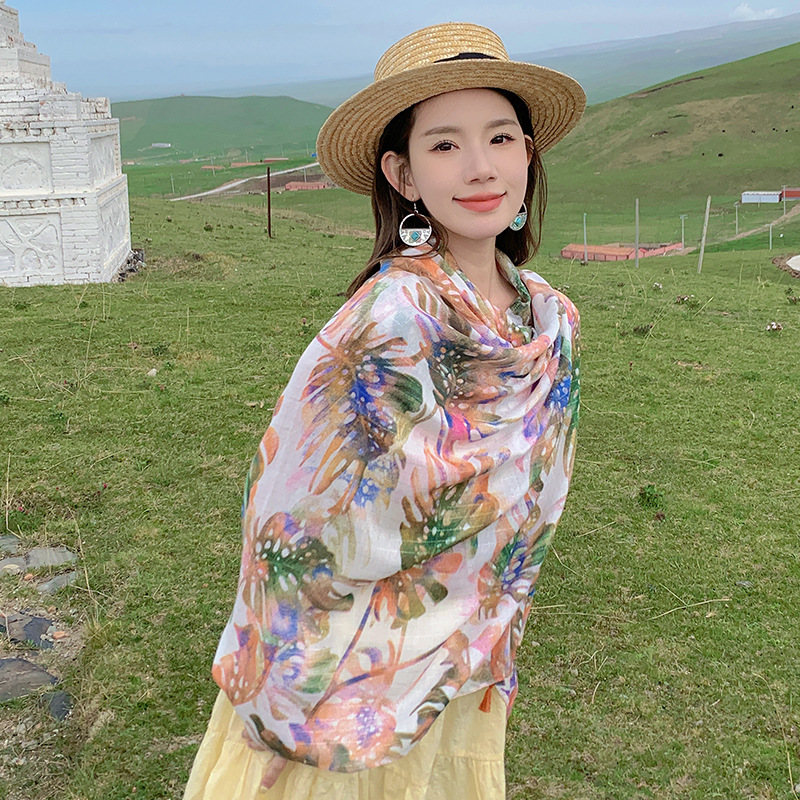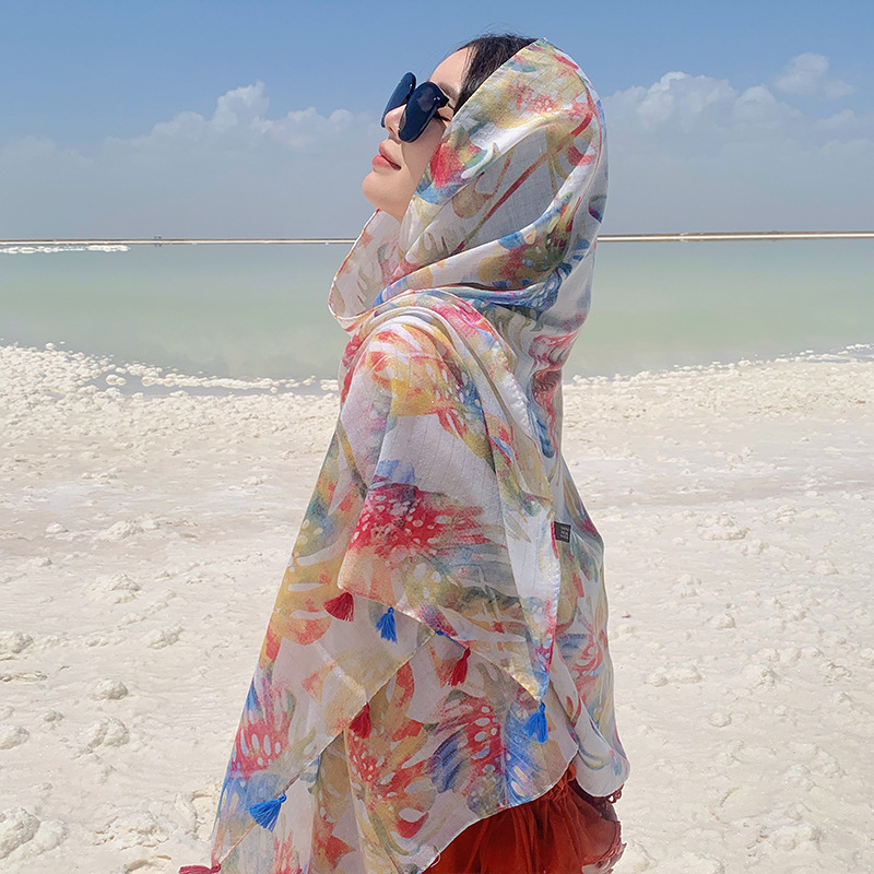 여름 사막 사진 여행 망토 캐주얼 패션 편안한 통기성 스카프 겉옷 대형 망토 바나나 잎 숄스토어 가기