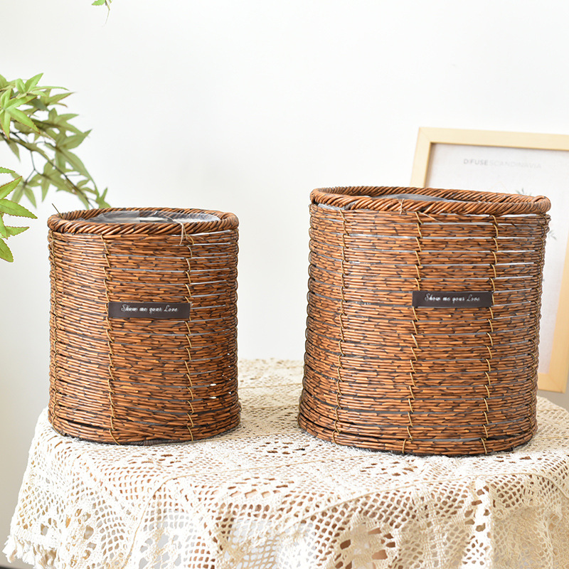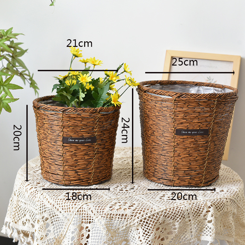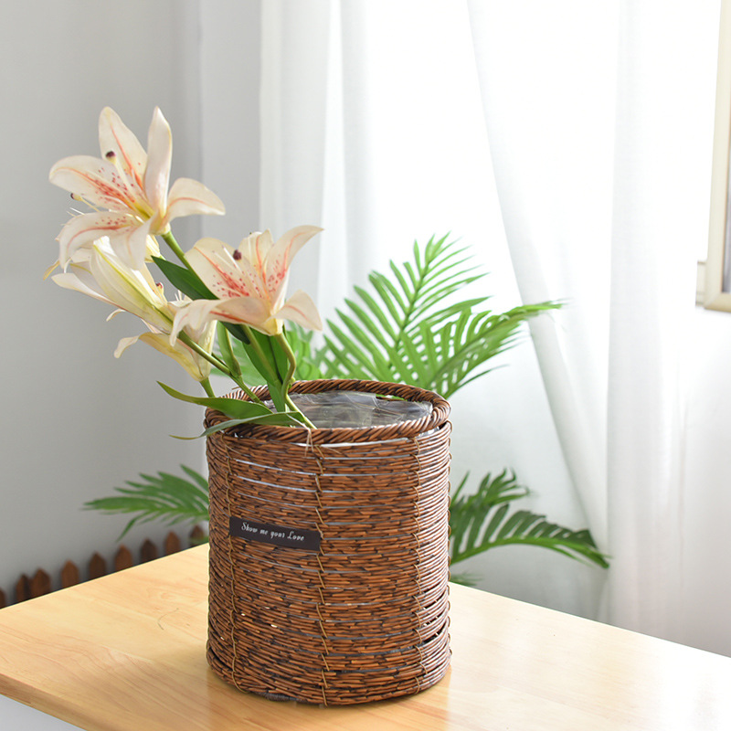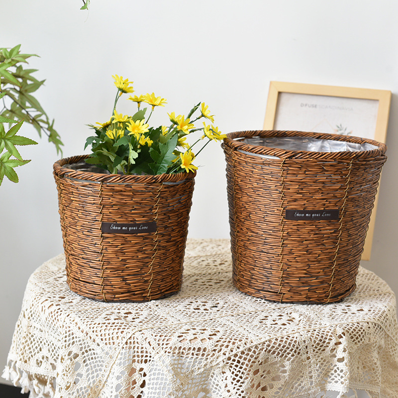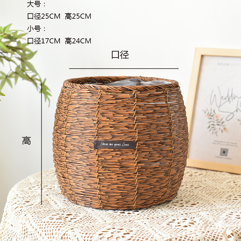 밀짚 화분 등나무 짠 수제 거실 발코니 홈 수납 바구니 호텔 장식 화분 세트