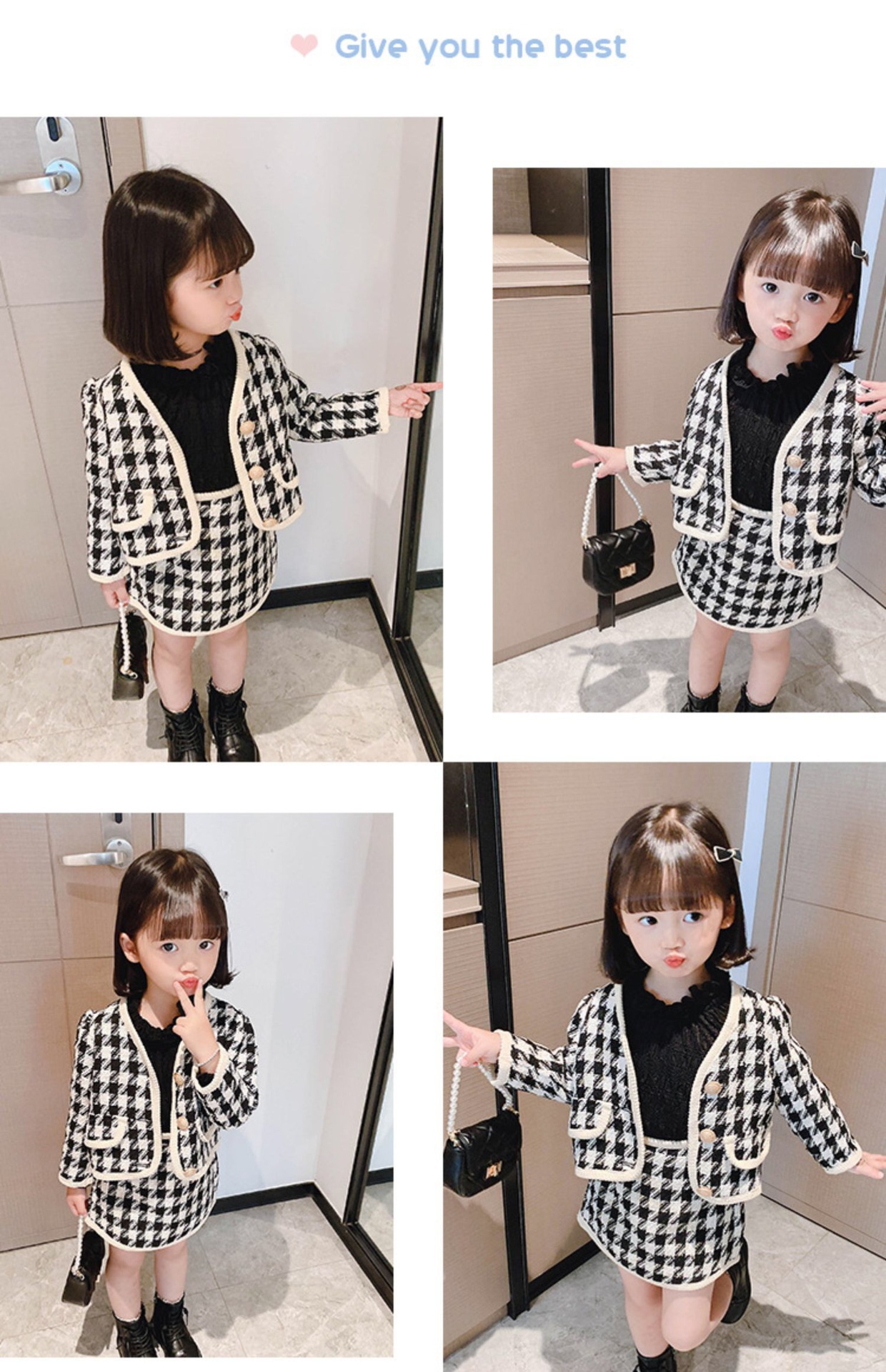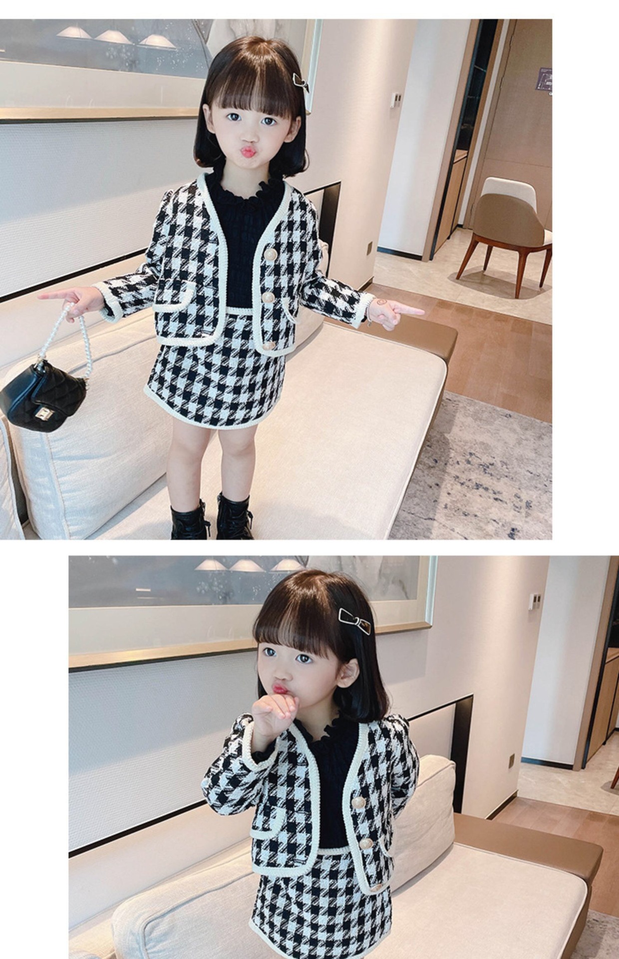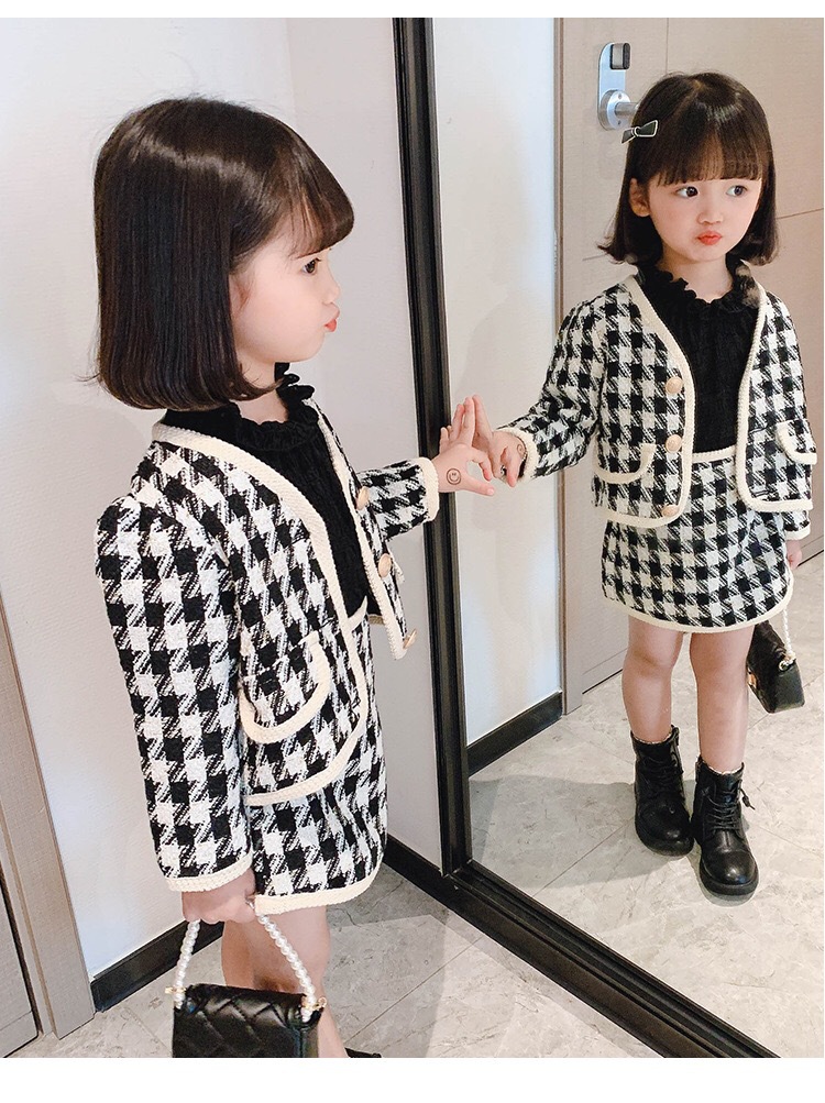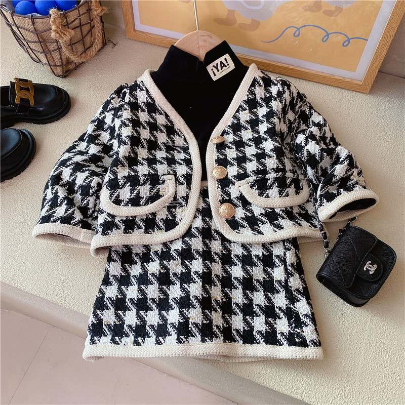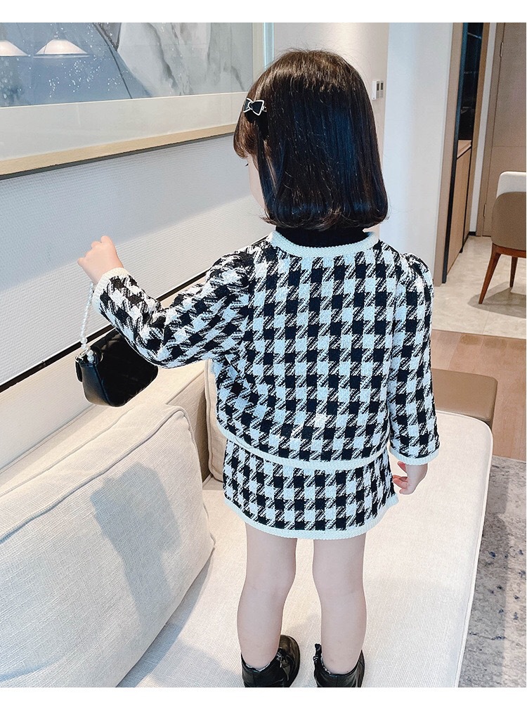 라임 소녀의 샤넬 스타일 세트 원피스 가을 새 스타일 어린이를위한 유행 짧은 치마 아기 소녀를위한 사이버 인기있는 투피스 세트스토어 가기