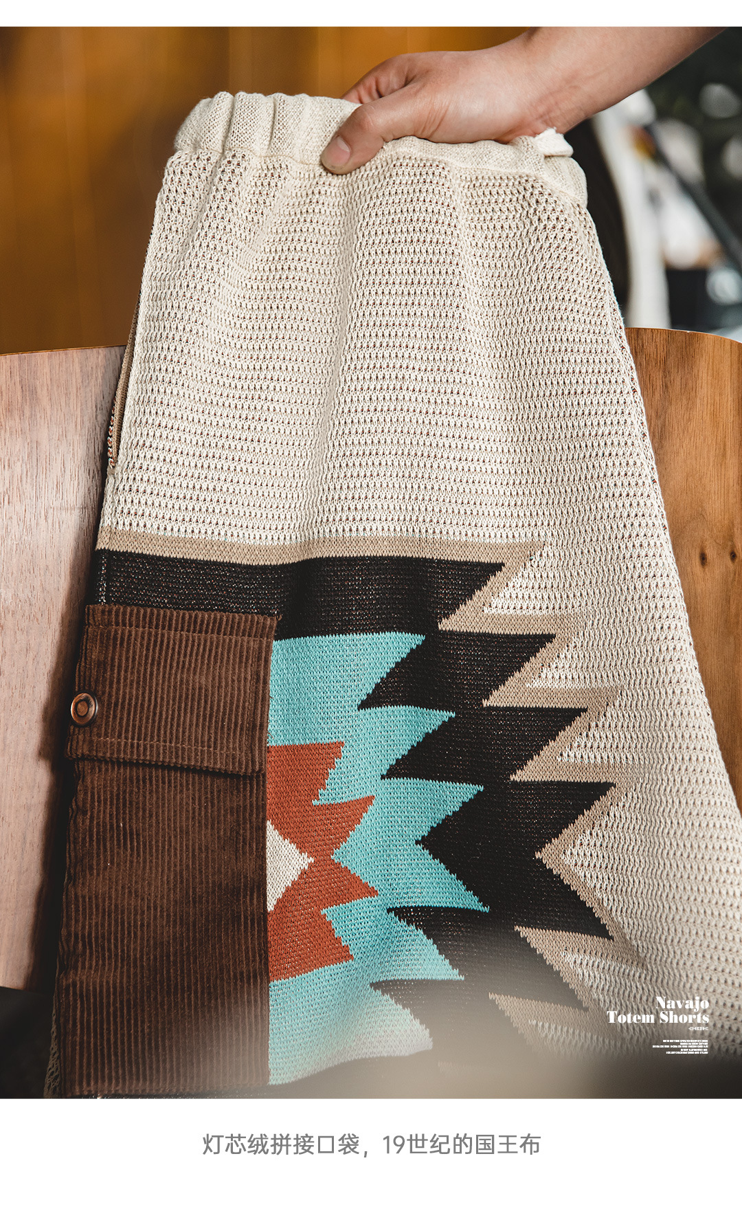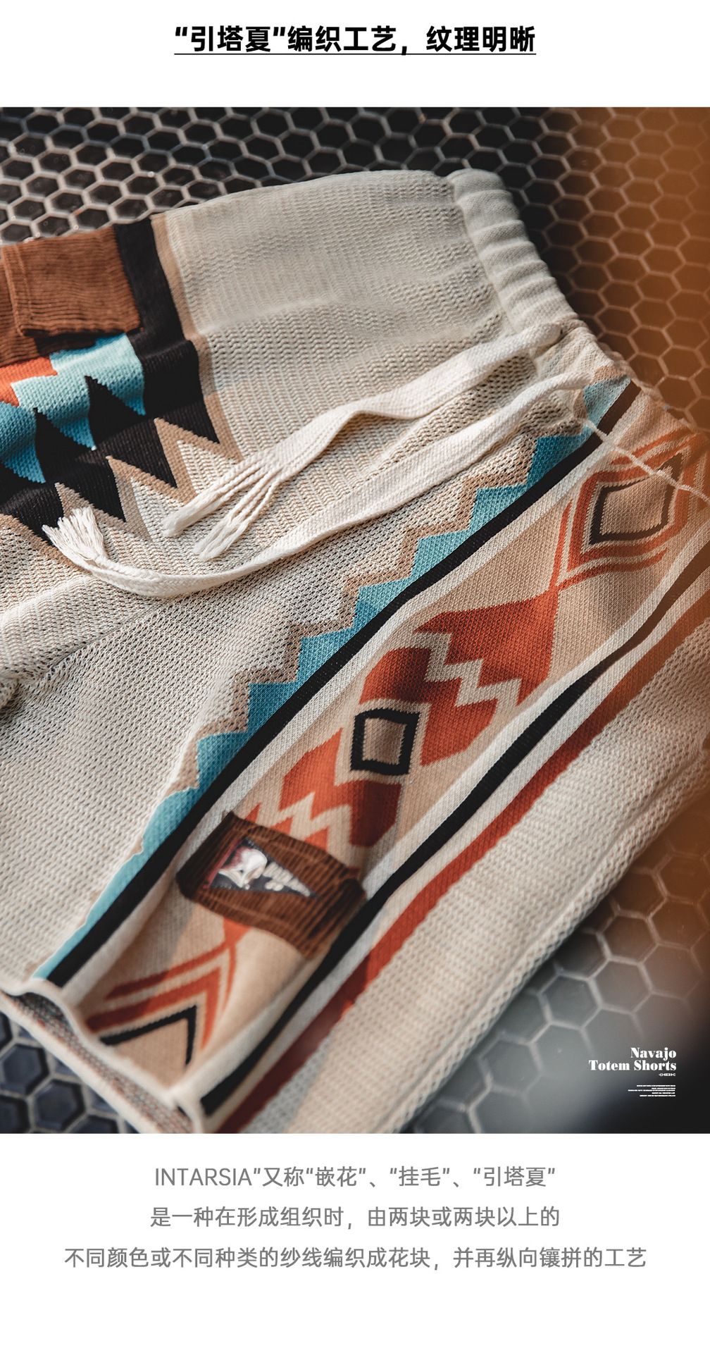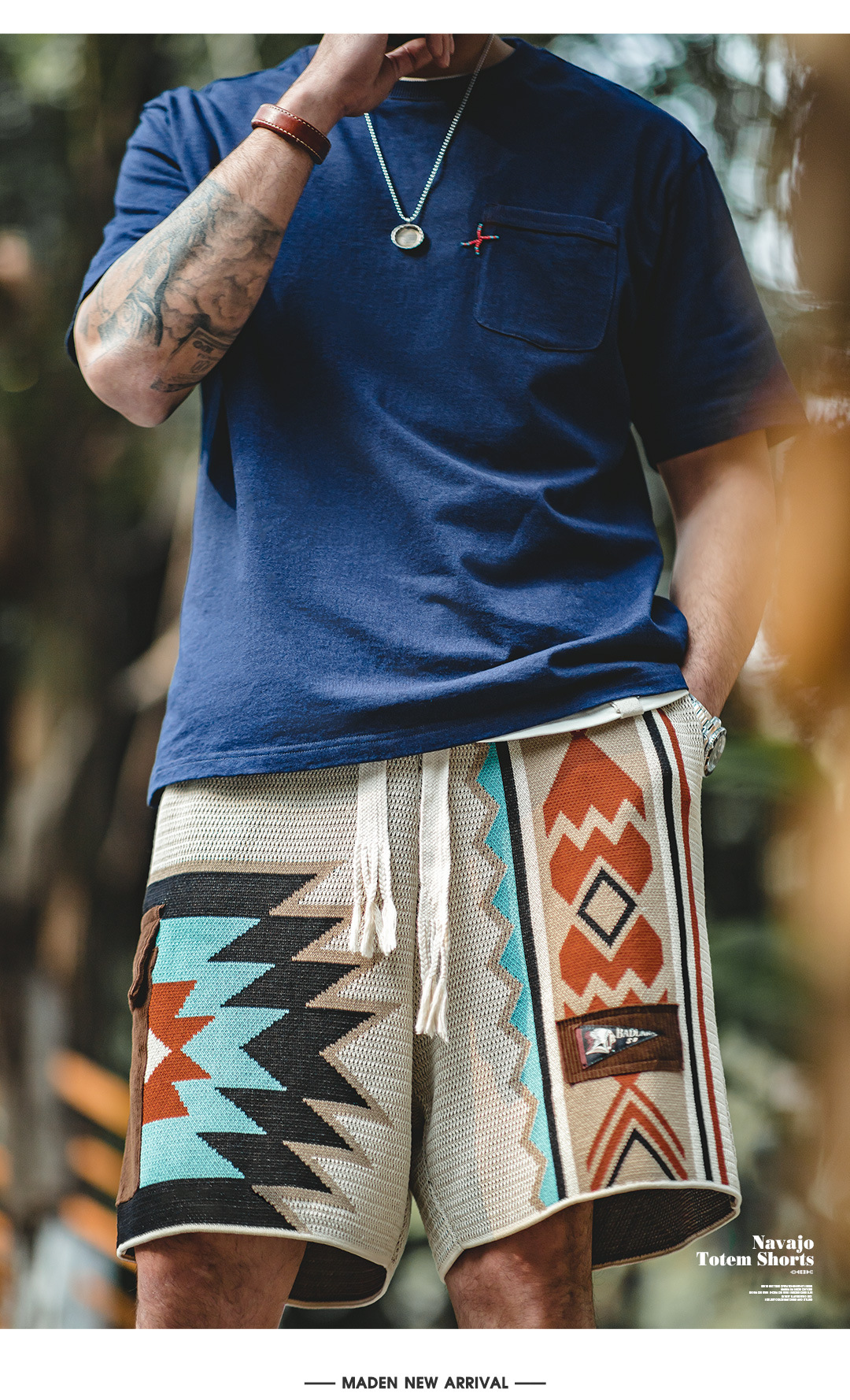Madden Workwear 아메리칸 레트로 나바호 니트 반바지 하와이 에스닉 스타일 아우터웨어 비치 반바지 남성 여름