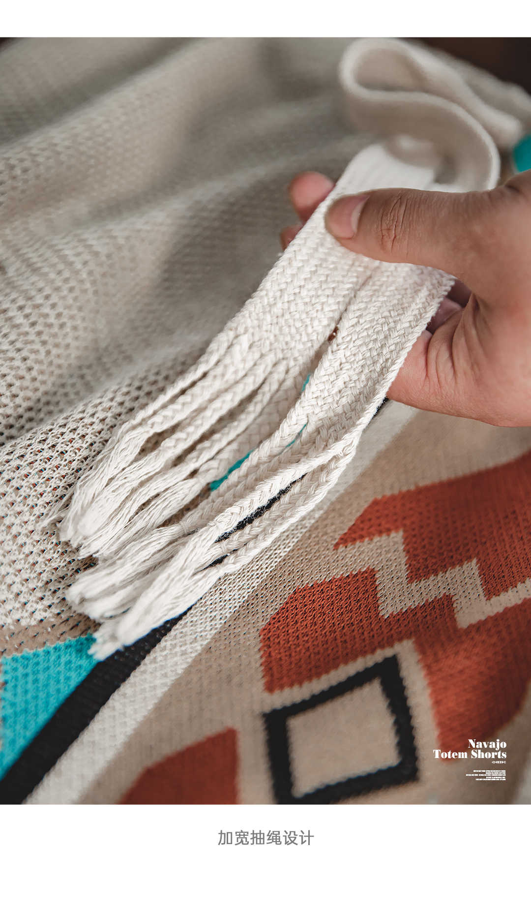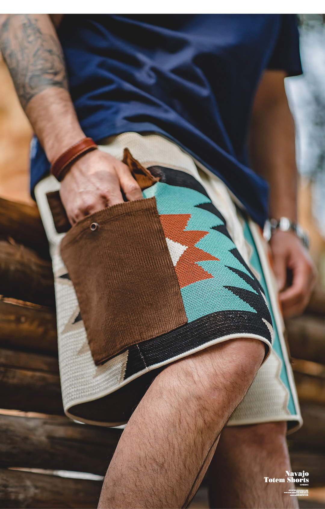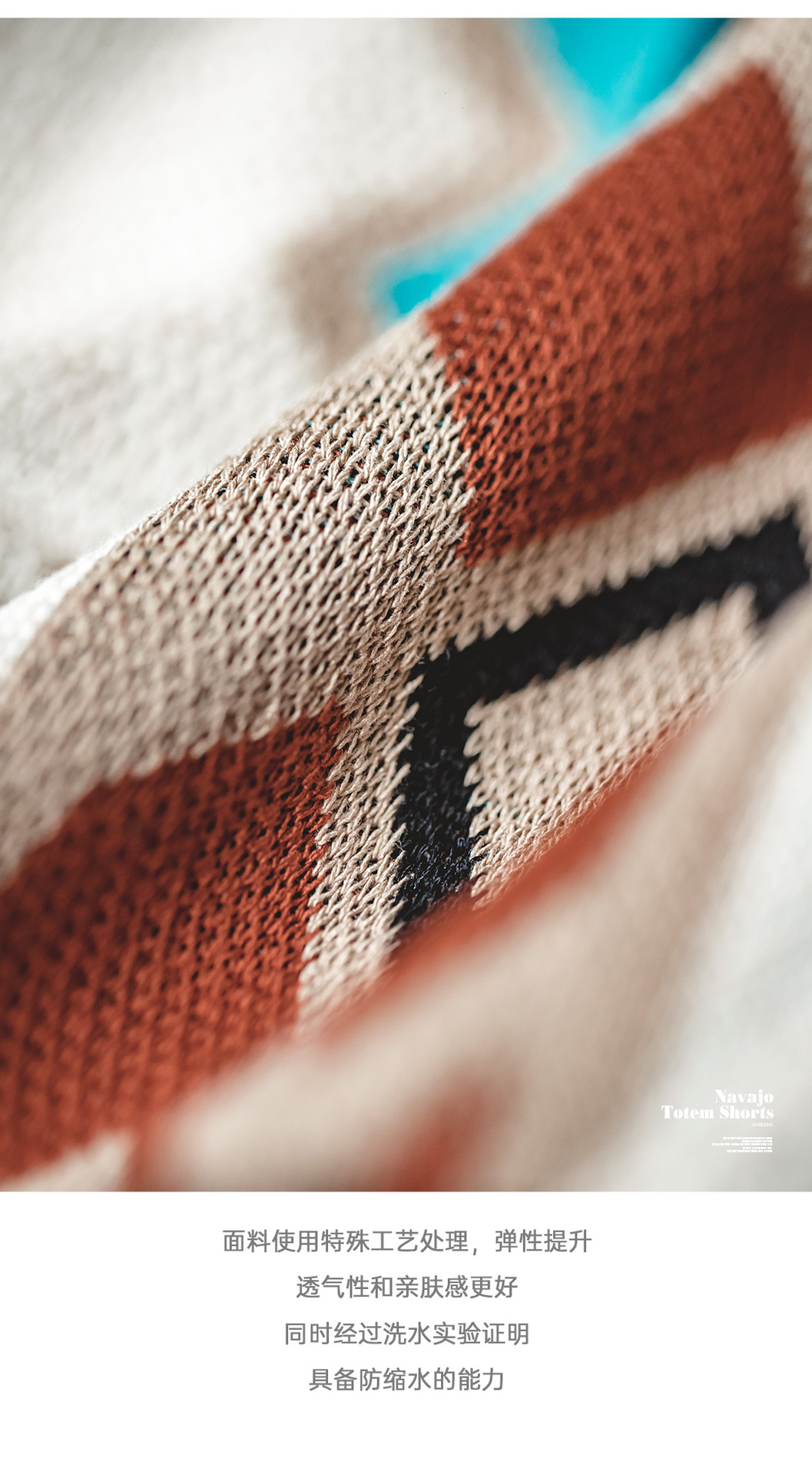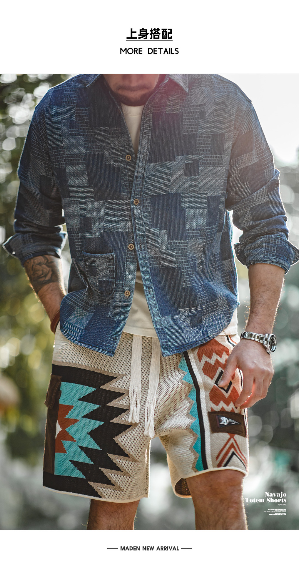 Madden Workwear 아메리칸 레트로 나바호 니트 반바지 하와이 에스닉 스타일 아우터웨어 비치 반바지 남성 여름