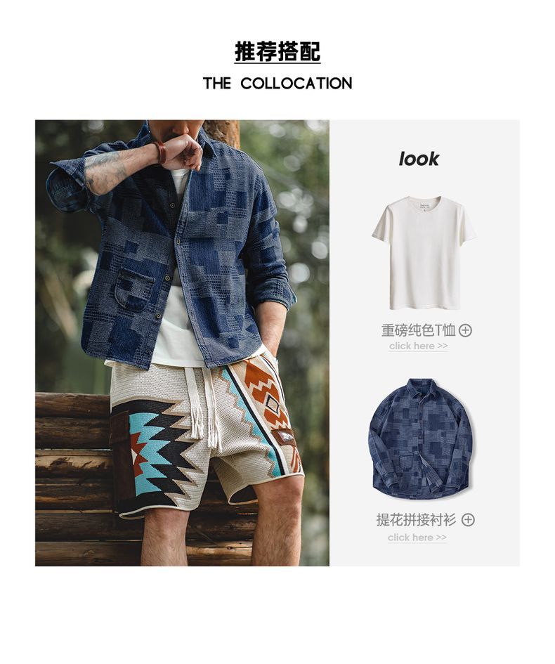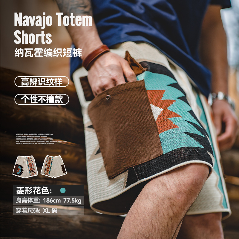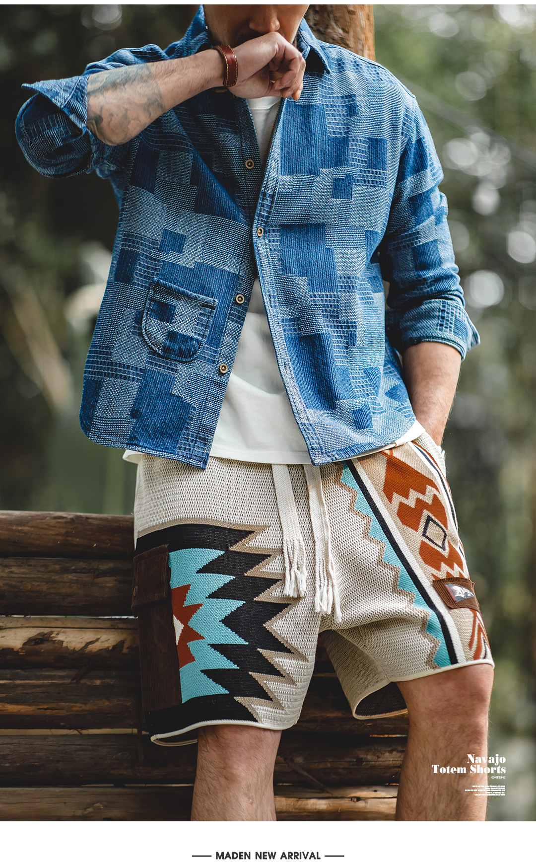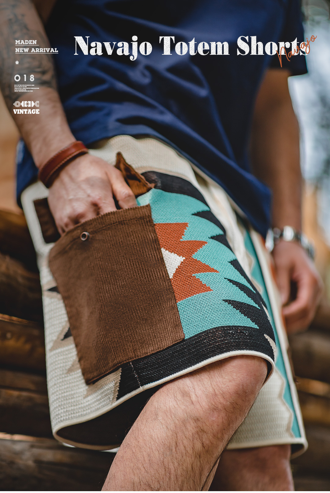 Madden Workwear 아메리칸 레트로 나바호 니트 반바지 하와이 에스닉 스타일 아우터웨어 비치 반바지 남성 여름스토어 가기
