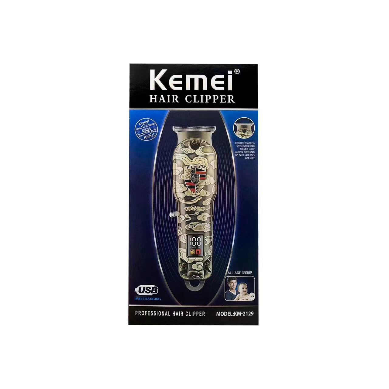Kemei 헤어 클리퍼 KM-2129 금속 바디 두개골 조각 전기 클리퍼 LED 디지털 디스플레이 헤어 살롱 전문 전기 클리퍼스토어 가기