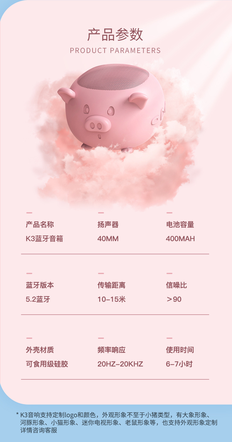 상품이있는 새로운 TikTok 개인 모델 K3 블루투스 스피커 무선 야외 귀여운 만화 작은 스피커 미니 창조적 인 선물