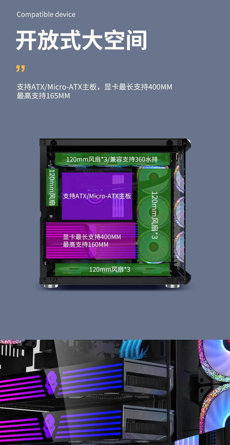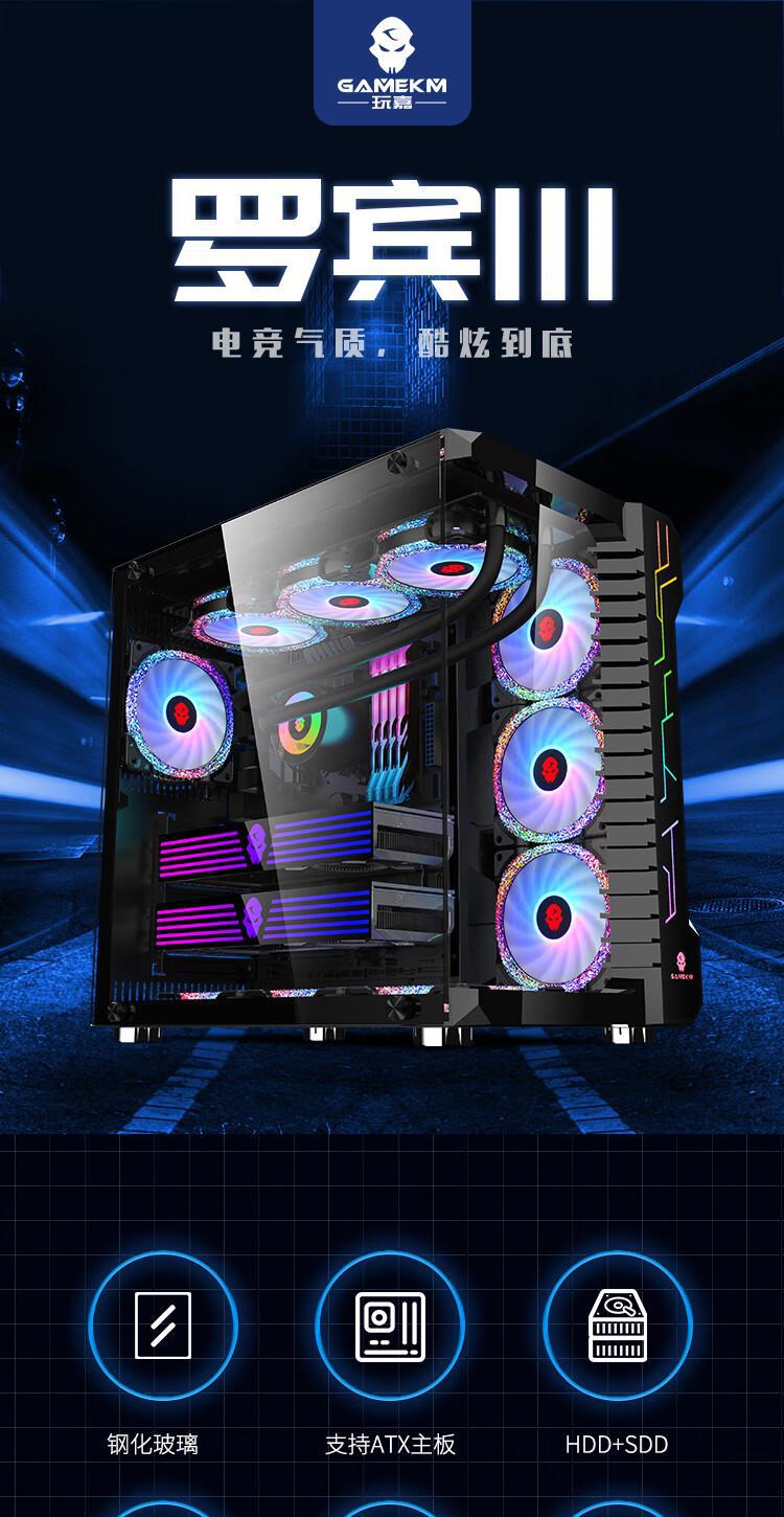 Garobin 3 화이트/블랙 와이드 바디 사이드 유리 게임 컴퓨터 메인 섀시 지원 360 수냉식 바다 전망 룸스토어 가기