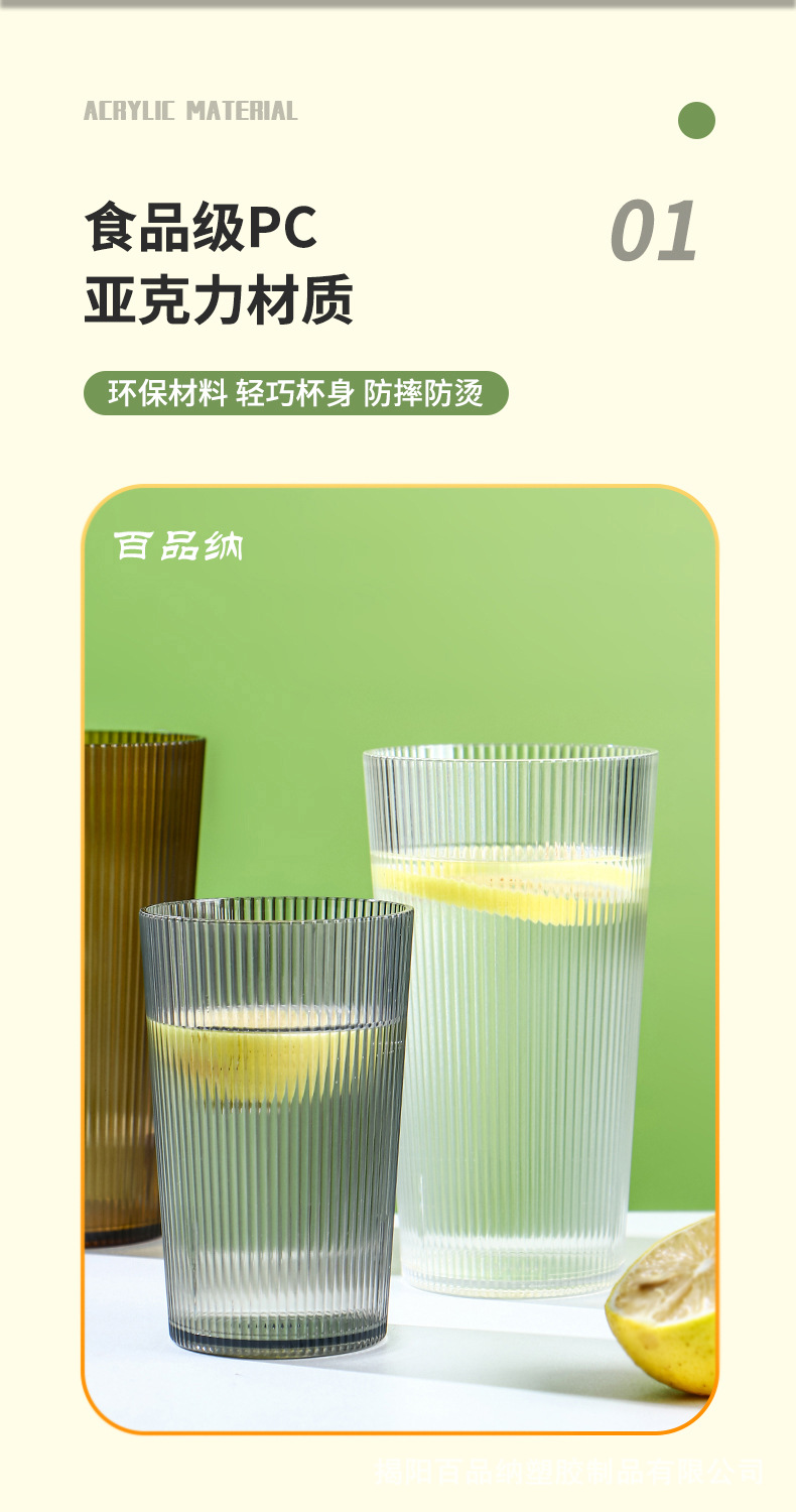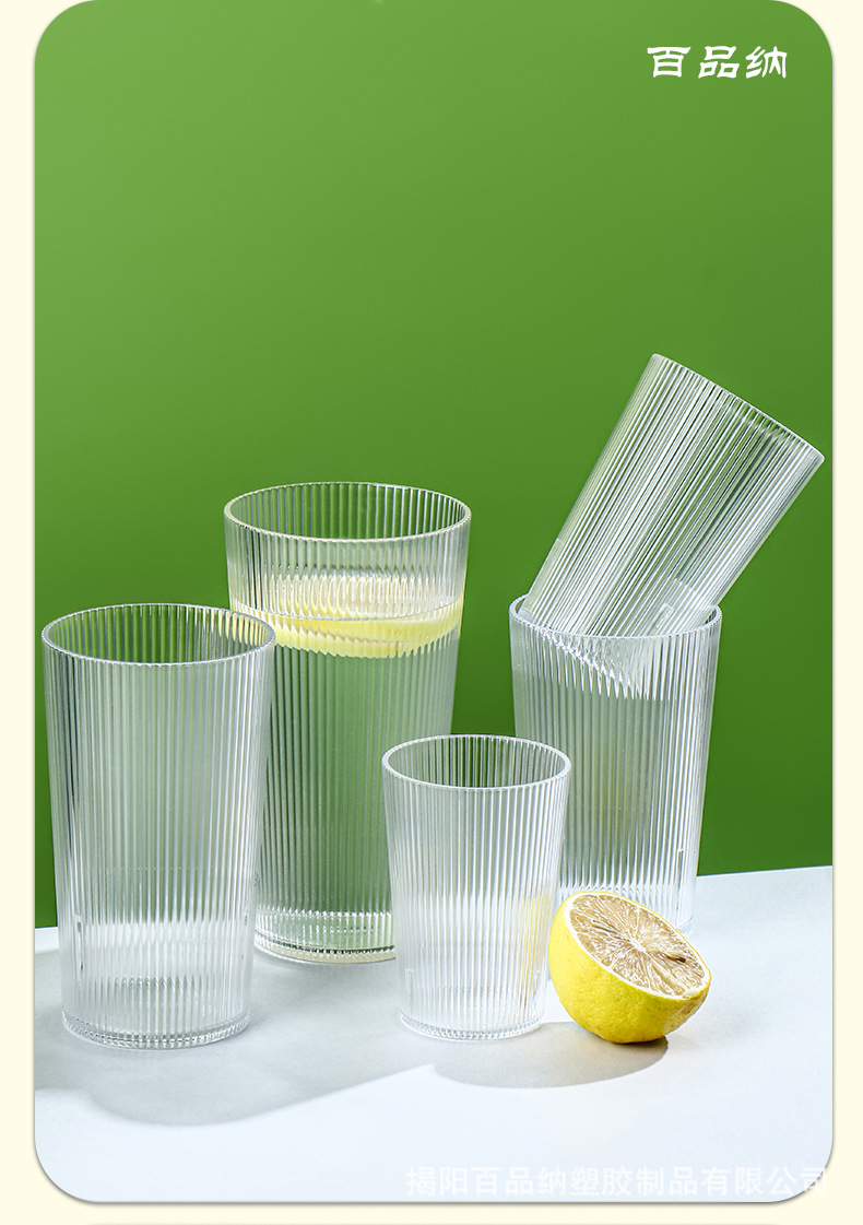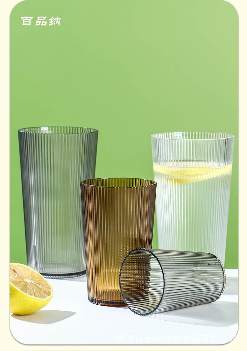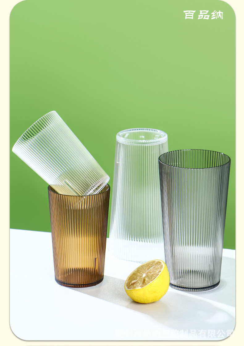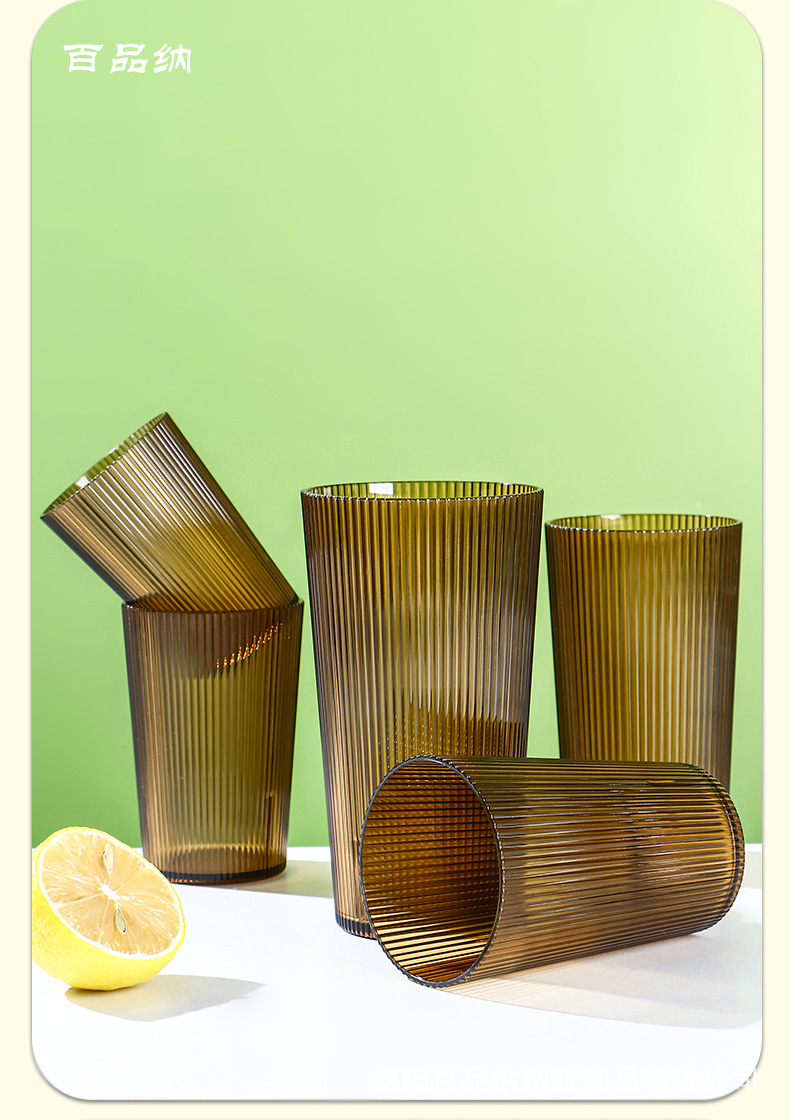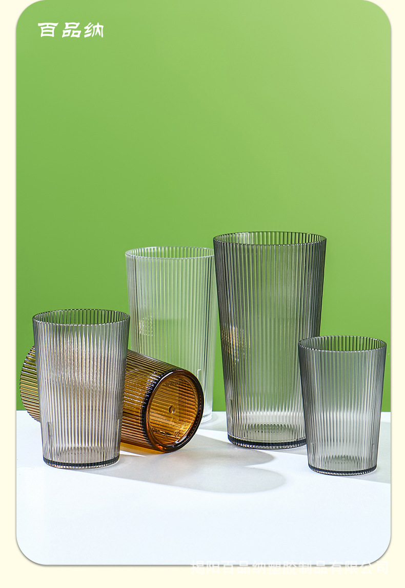 창의적인 투명 가정용 주스컵 세로 줄무늬 우유컵 플라스틱 음료컵 PC 밀크티컵 와인잔 라이트 럭셔리 스타일