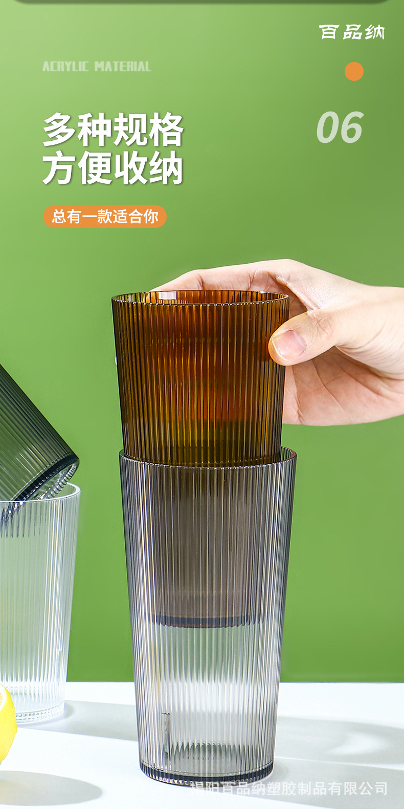 창의적인 투명 가정용 주스컵 세로 줄무늬 우유컵 플라스틱 음료컵 PC 밀크티컵 와인잔 라이트 럭셔리 스타일스토어 가기
