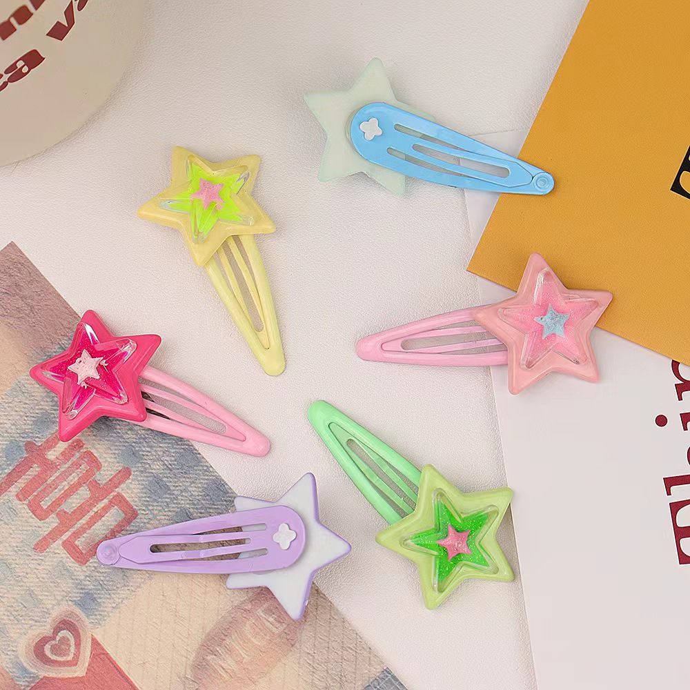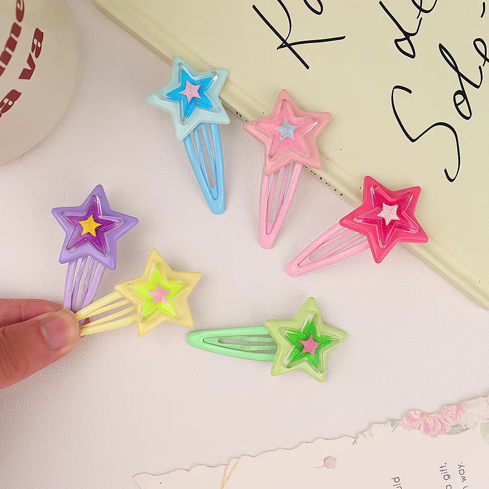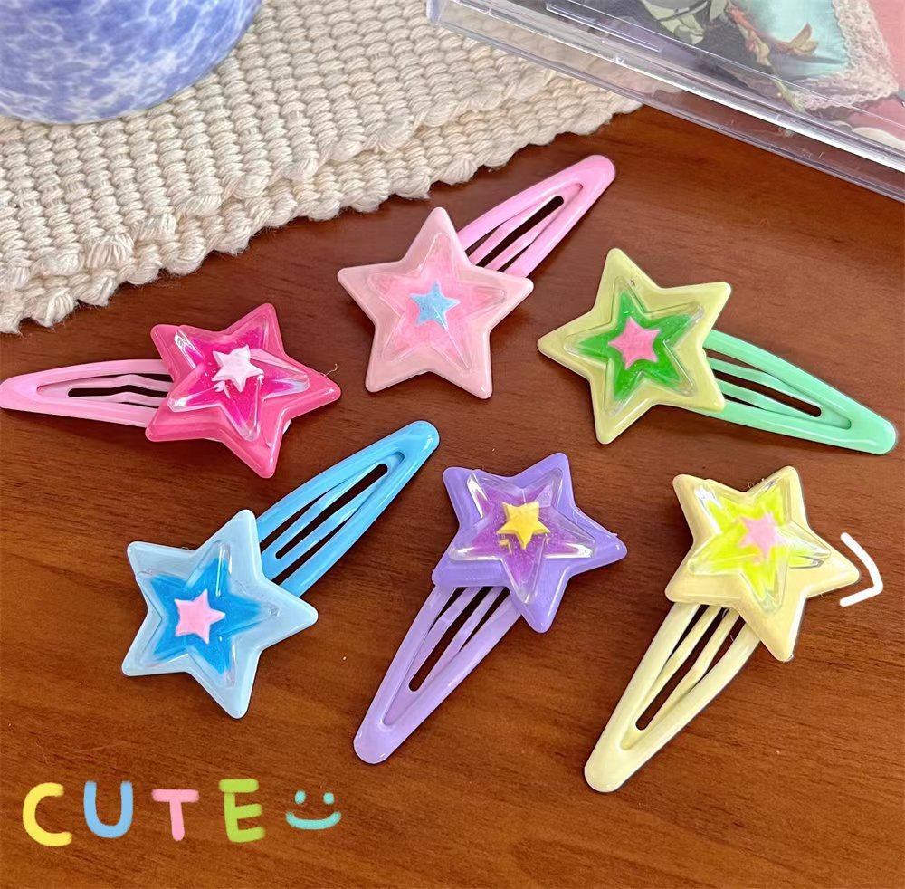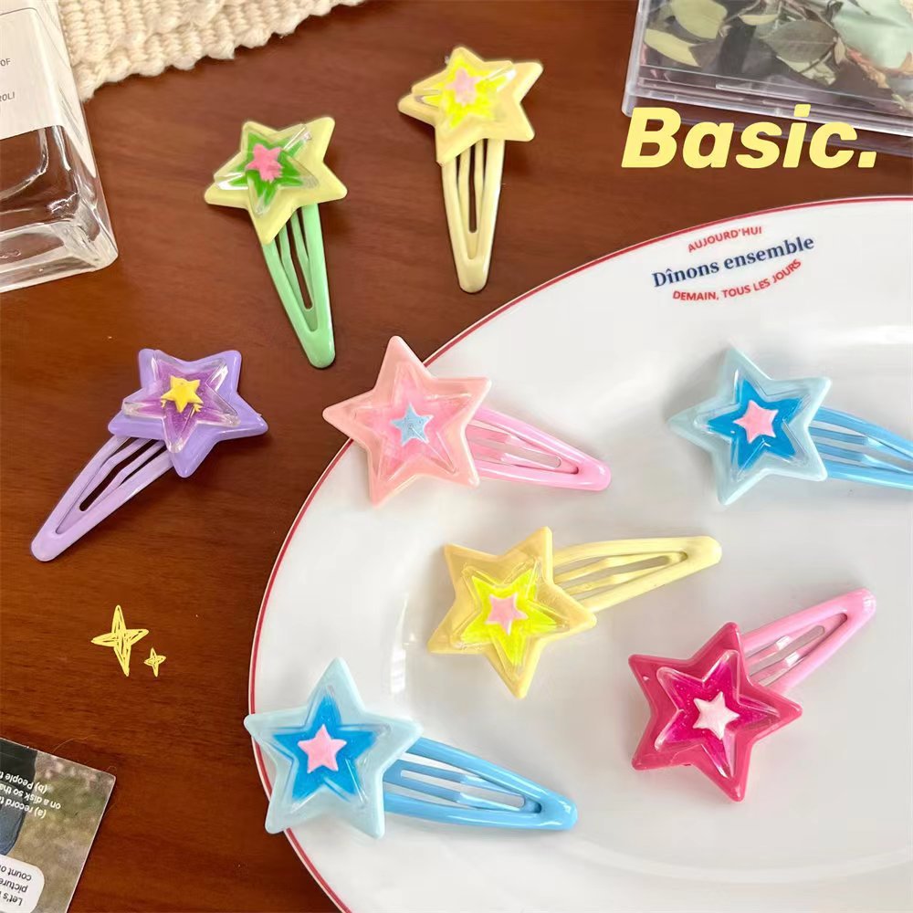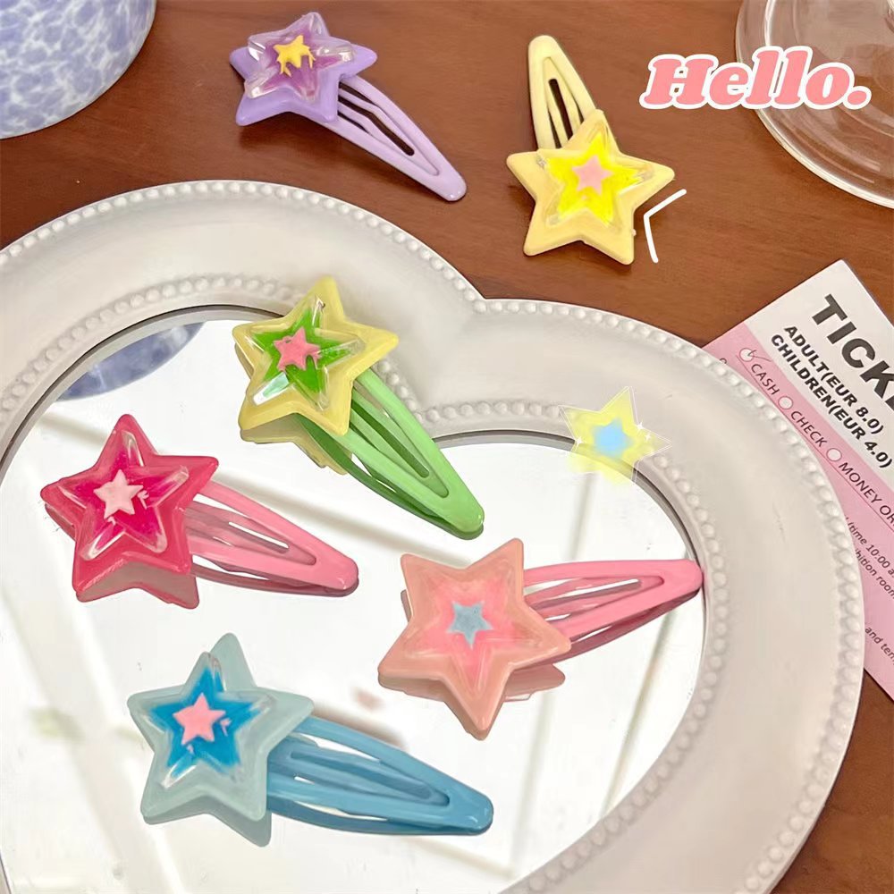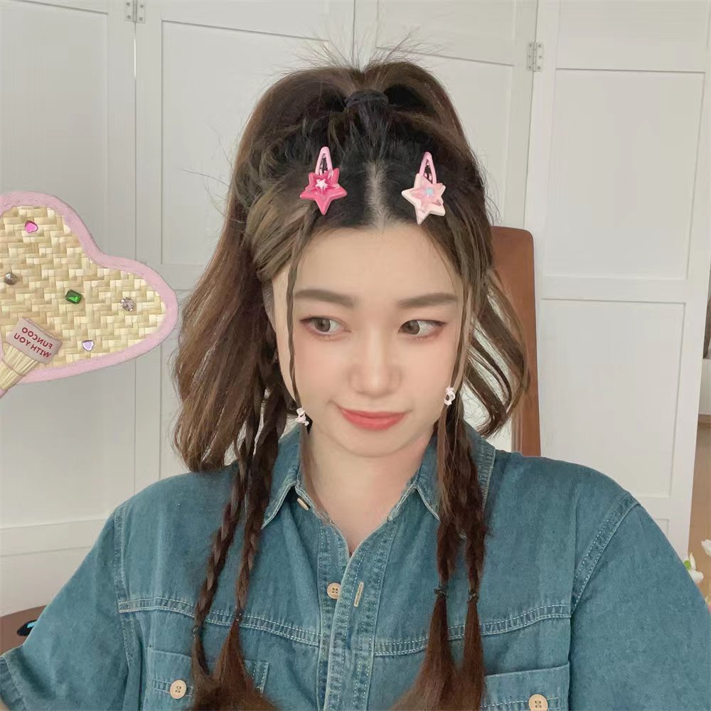 스타일 머리핀 달콤한 멋진 도파민 스타 BB 클립 인 달콤한 소녀 y2k 다섯개 별 측면 머리핀 귀여운 모자스토어 가기