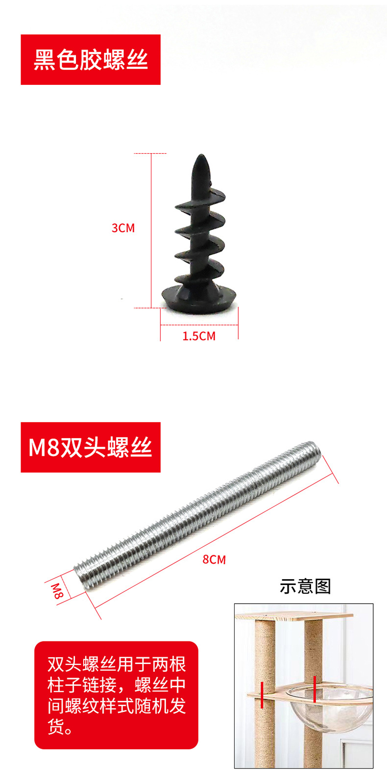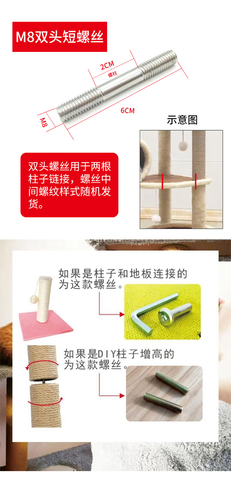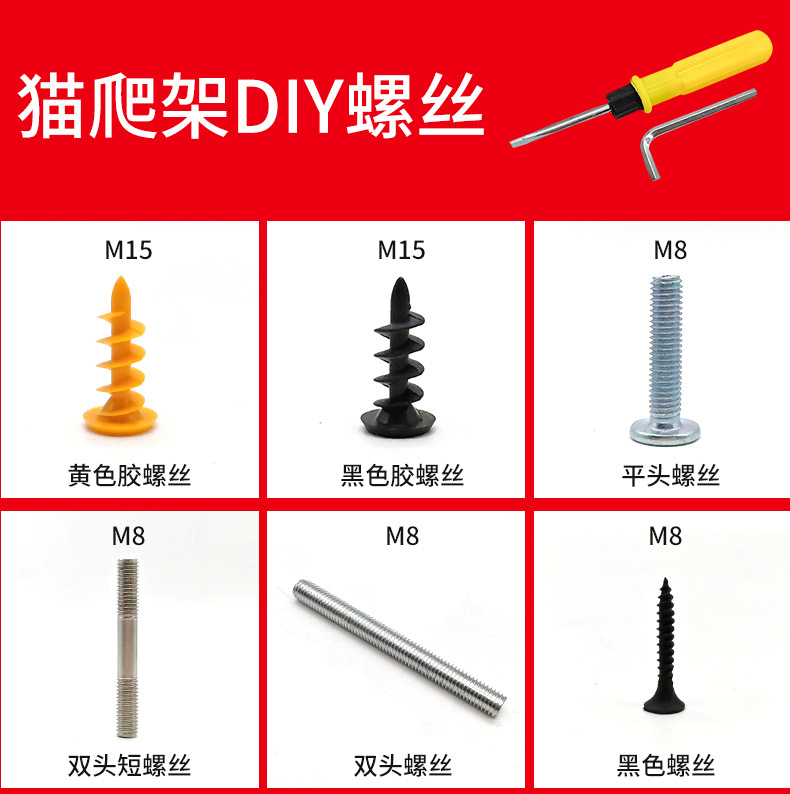 고양이 등반 프레임 하드웨어 액세서리 고양이 잡아 기둥 장난감 재료 플랫 헤드 육각 연결 나사 렌치스토어 가기