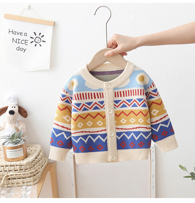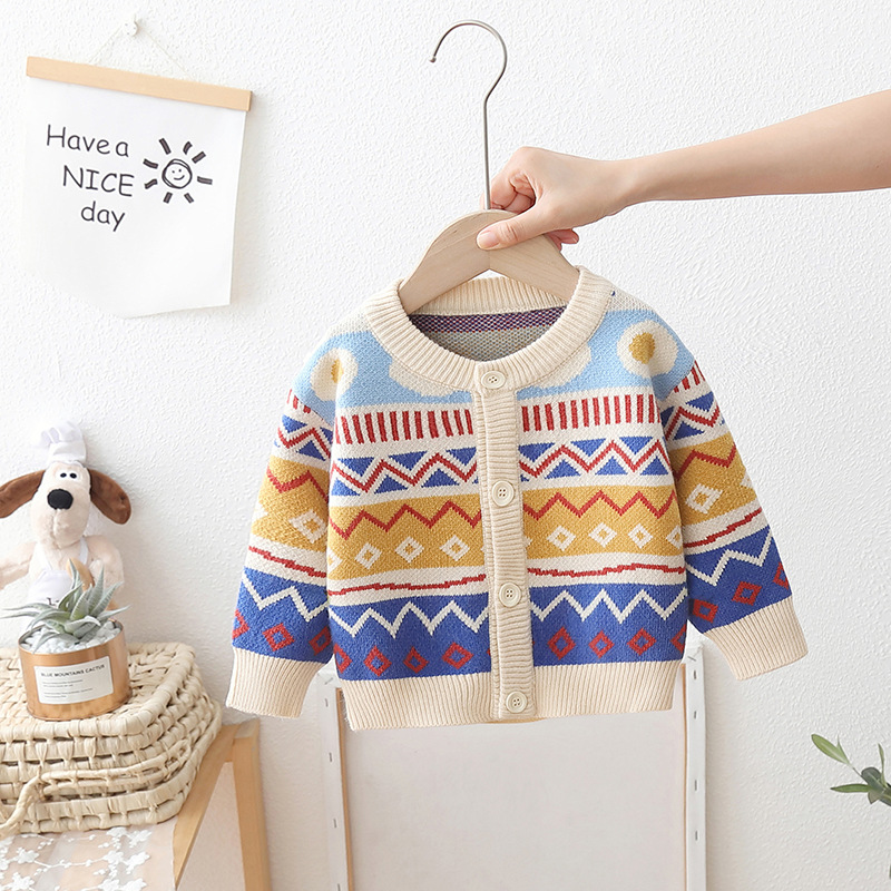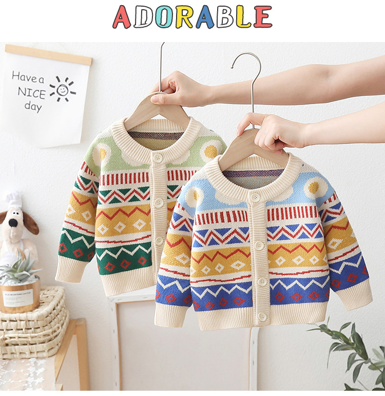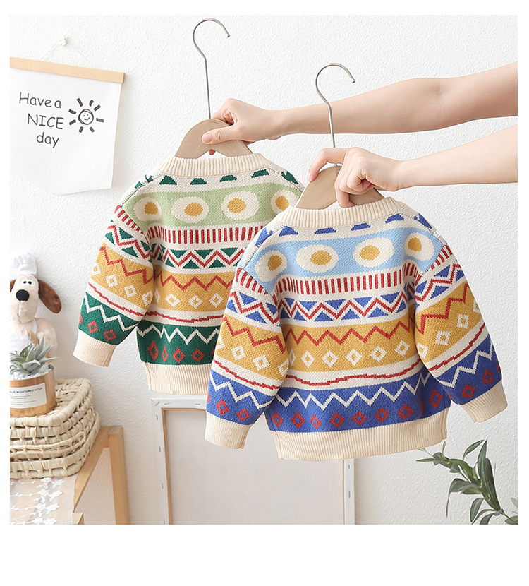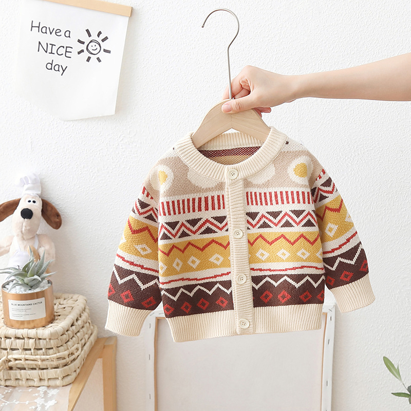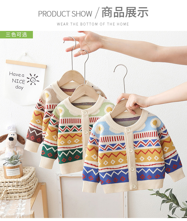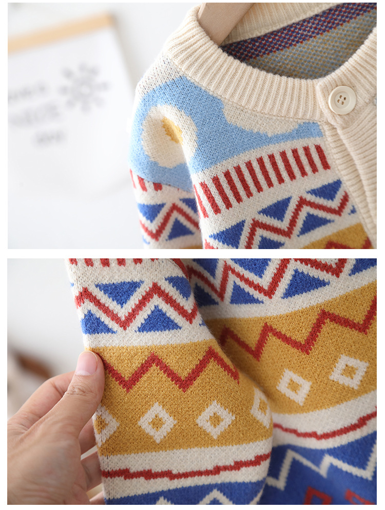 2023 세대의 어린이 스웨터 카디건 복고풍 줄무늬 아기 가을 착용 소년 니트 코트 외국 스타일스토어 가기