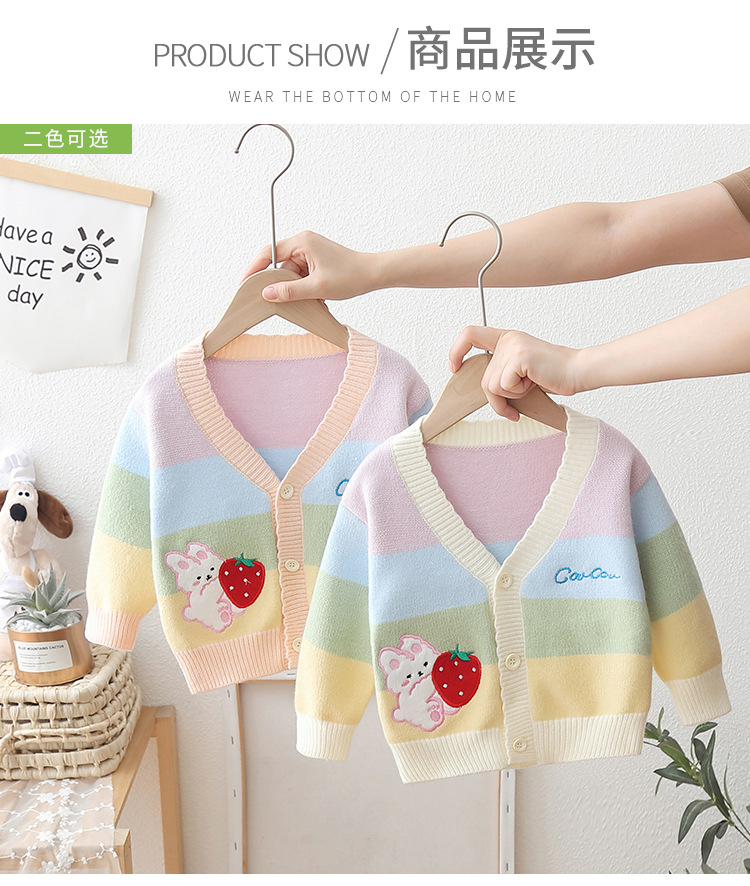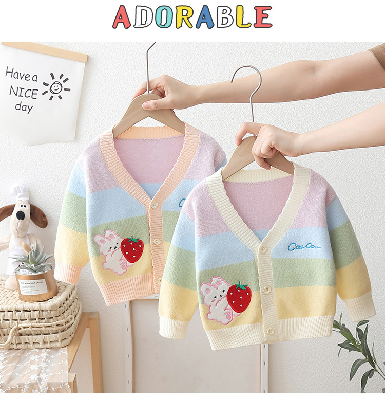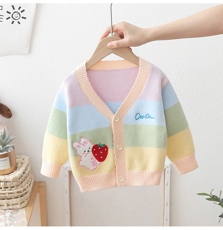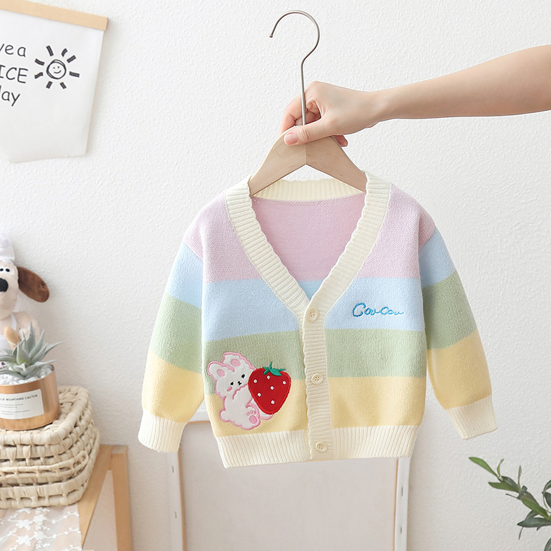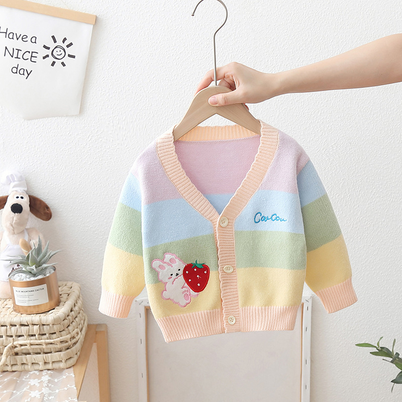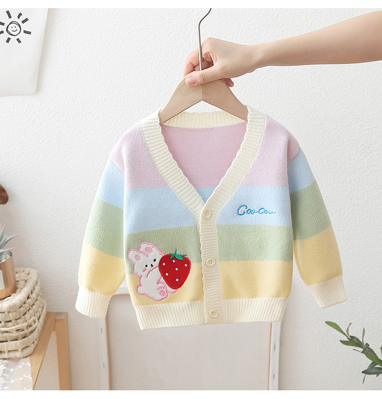 Dropshipping 2025 아기 스웨터 카디건 토끼 만화 어린이 가을 옷 소녀 니트 카디건 서양식 자수스토어 가기