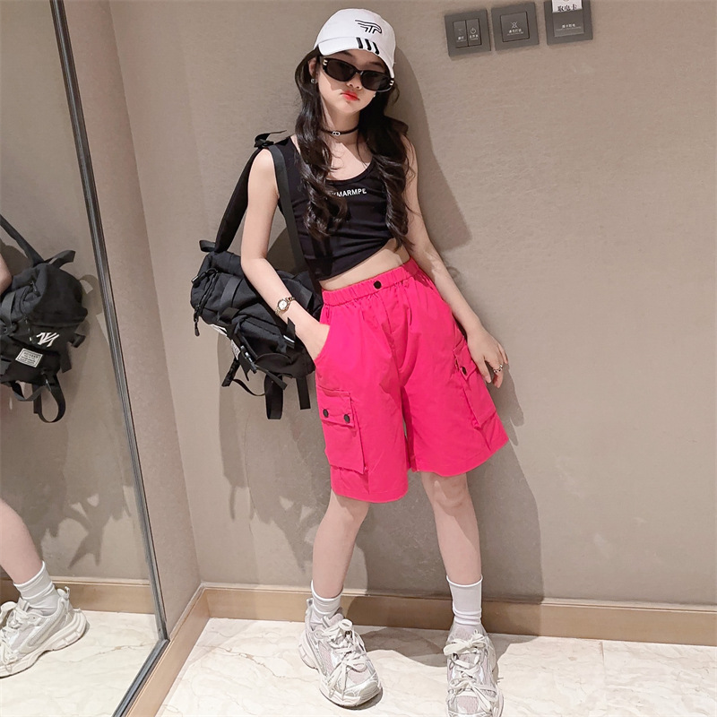 여아 프라이드 스트리트 조끼 여름 짧은 인터넷 인기 유행 멋진 얇은 슬링 탑 웨스턴 스타일 중대형 어린이를위한 유행 민소매 티셔츠스토어 가기