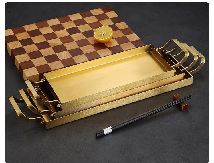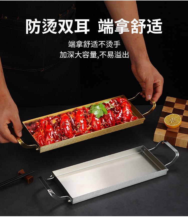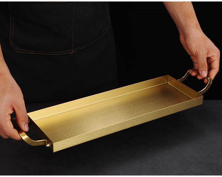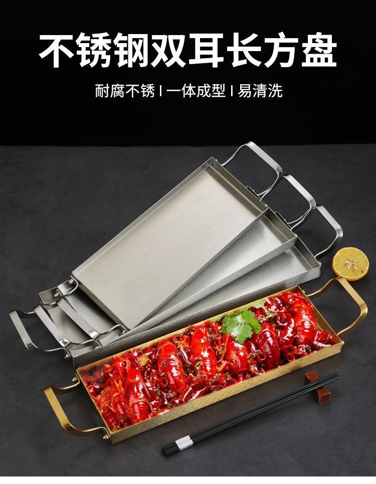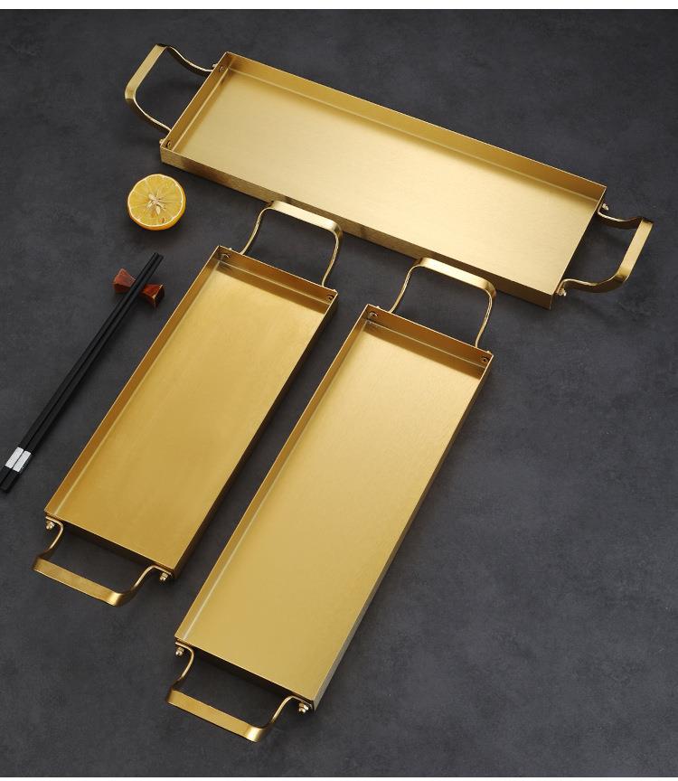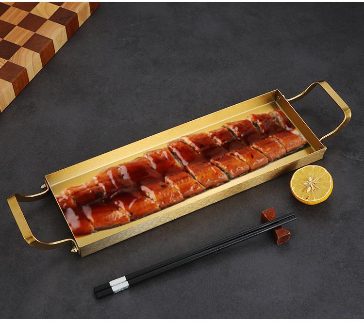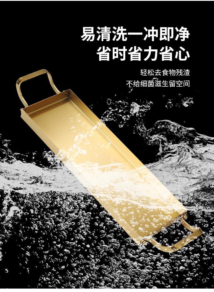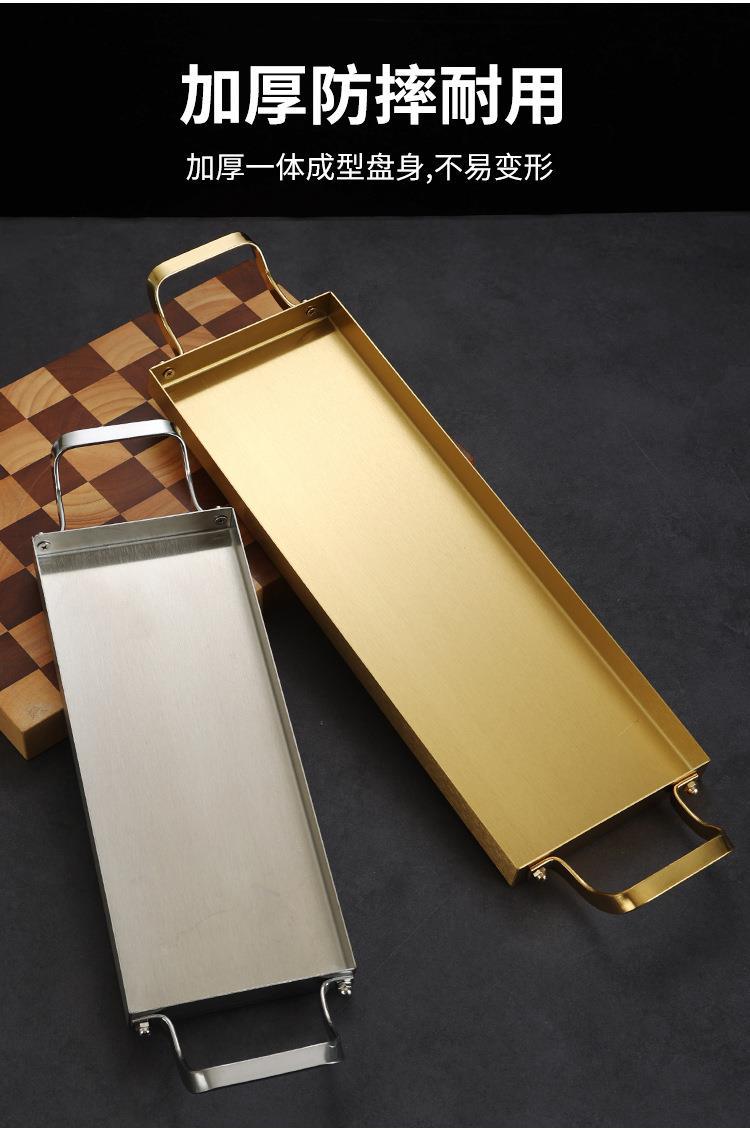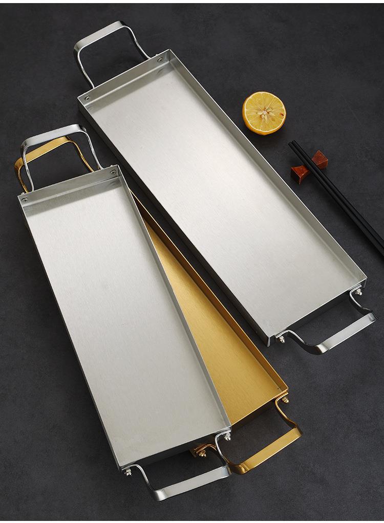 한국식 스테인레스 스틸 바베큐 플레이트 바이 노럴 골든 롱 스퀘어 플레이트 좁은 측면 플레이트 스낵 랍스터 플레이트 스시 접시 냄비 접시