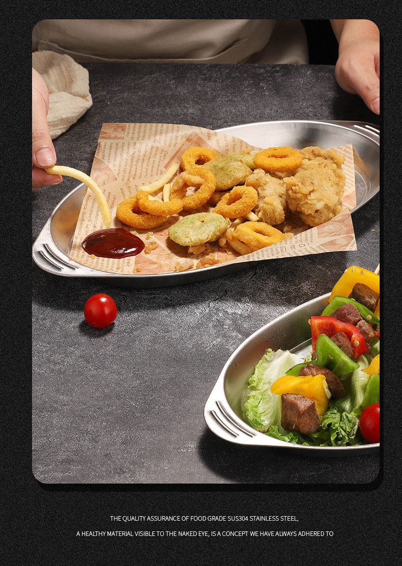 공장 직접 판매 Lexijia 304 스테인리스 생선 접시 타원형 찐 생선 접시 가정용 접시 식기스토어 가기