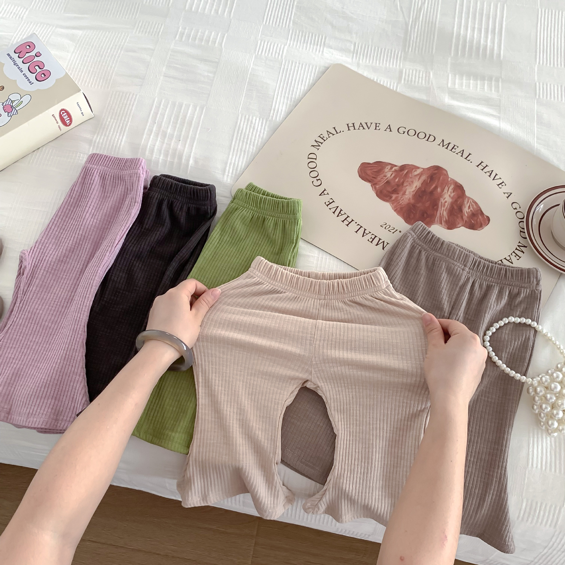 한국 아동복 봄과 가을 새 여아 플레어 팬츠 캔디 멀티 컬러 베이비 얇은 고탄력 리브 캐주얼 바지스토어 가기