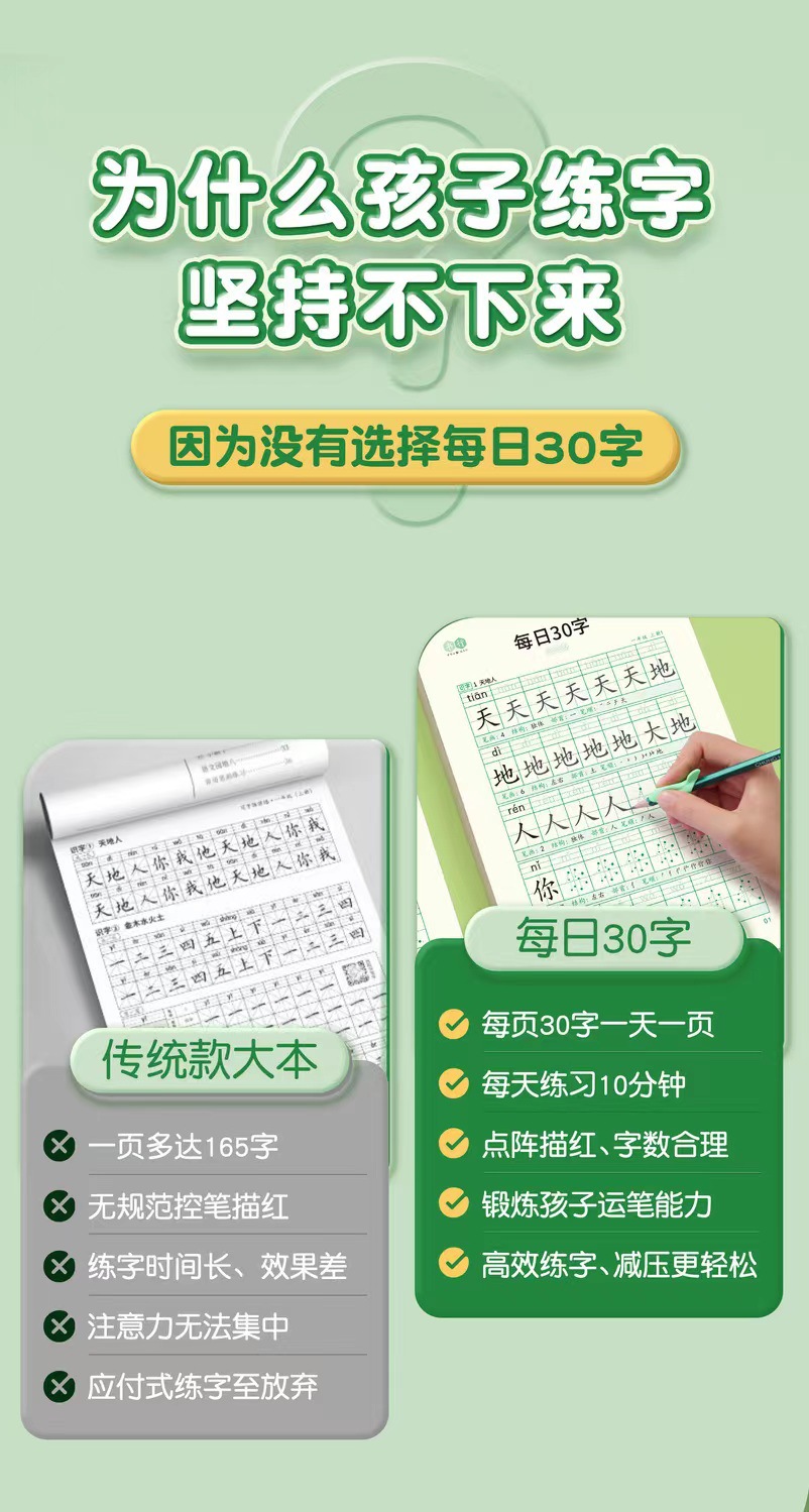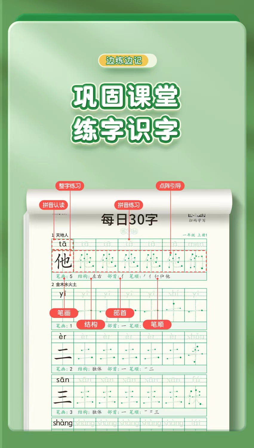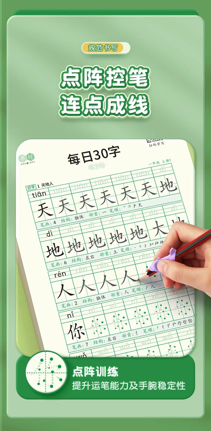 1 학년 동기 연습 카피 북 2345 6 중국 초등학교 학생 도트 매트릭스 감압 30 단어 연습 카피 북