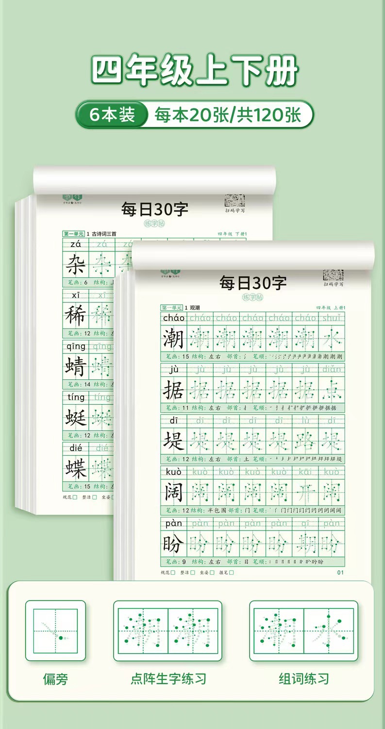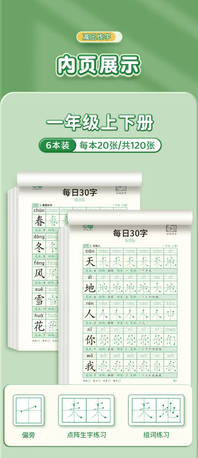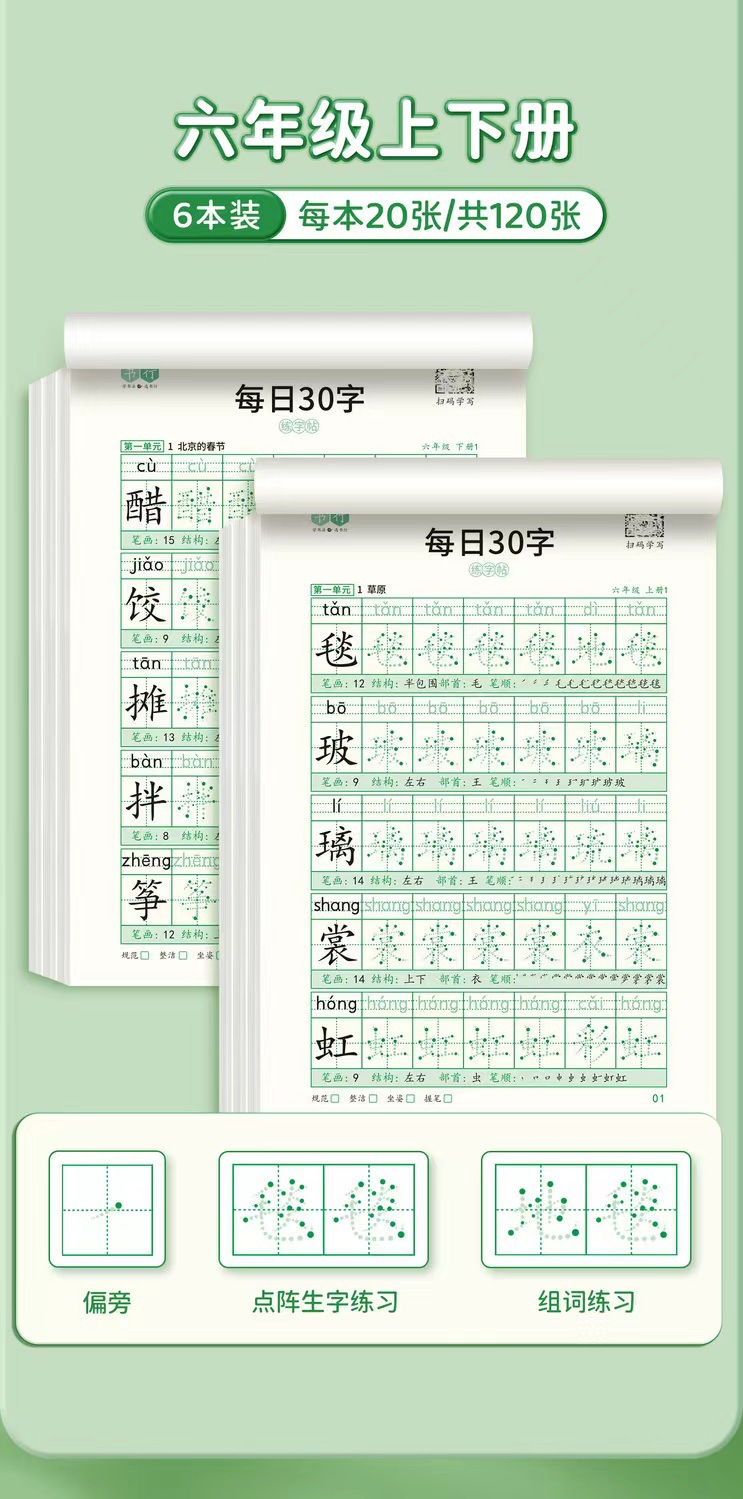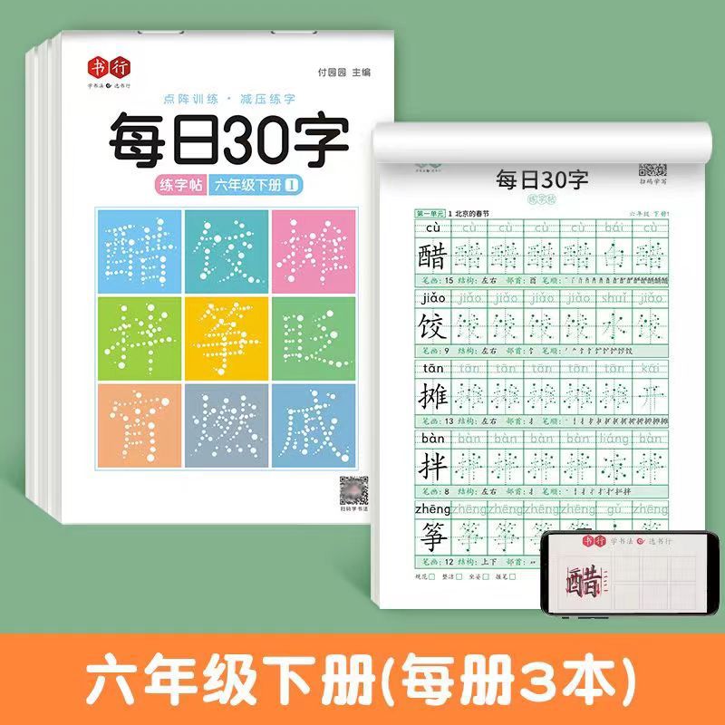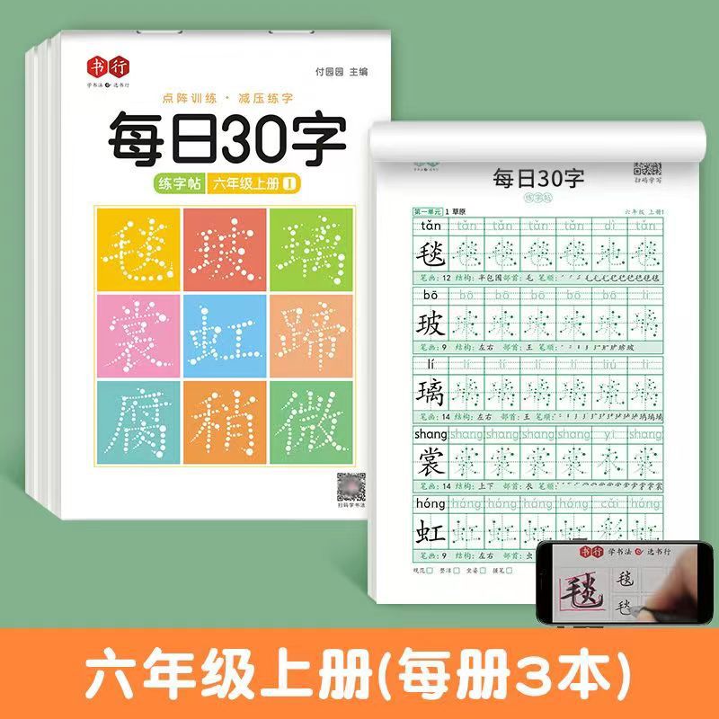 1 학년 동기 연습 카피 북 2345 6 중국 초등학교 학생 도트 매트릭스 감압 30 단어 연습 카피 북스토어 가기