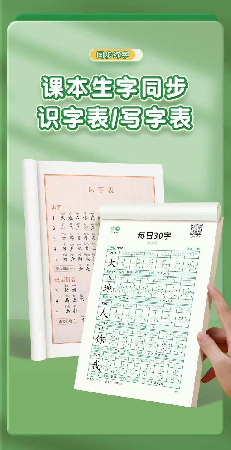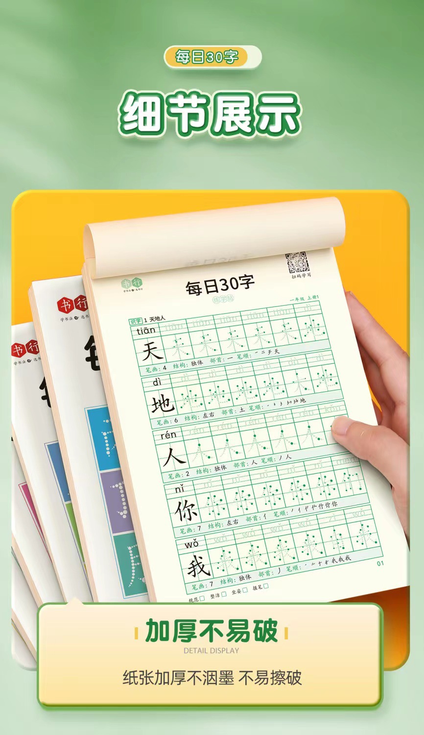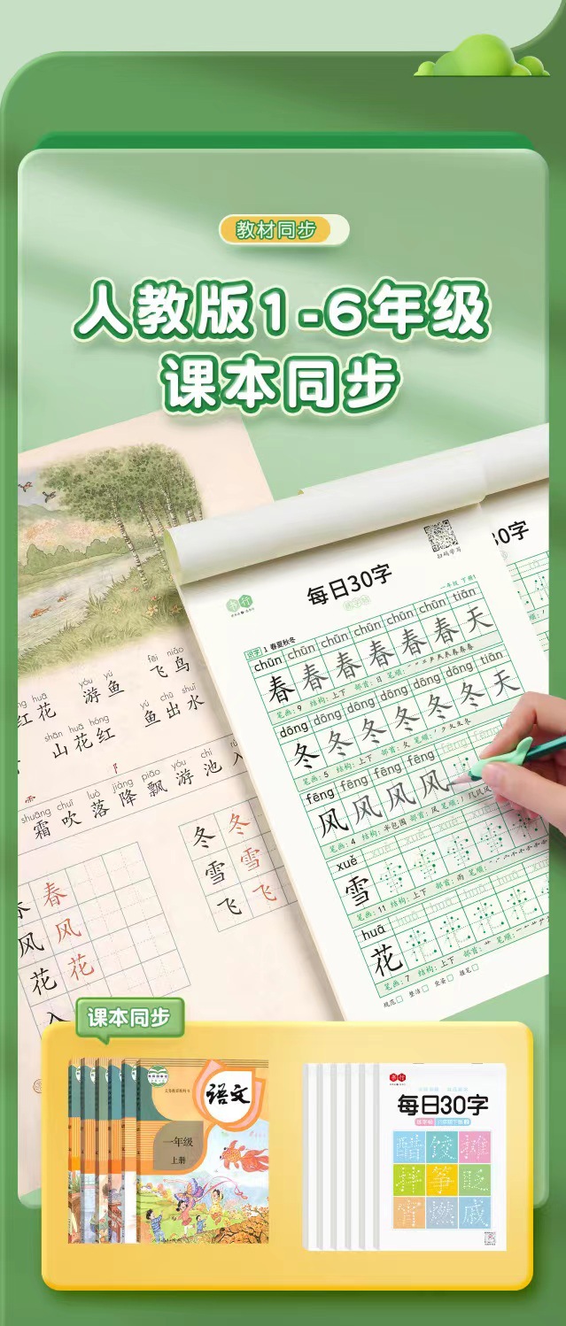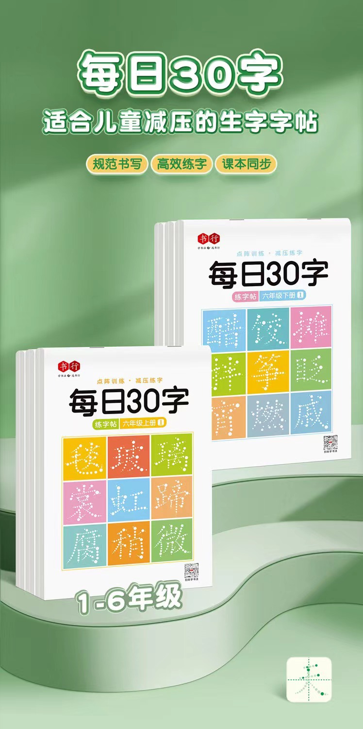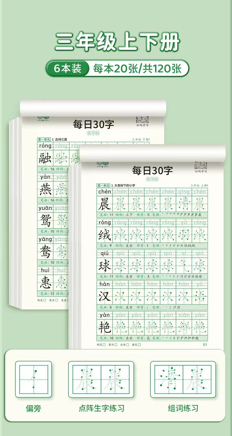 1 학년 동기 연습 카피 북 2345 6 중국 초등학교 학생 도트 매트릭스 감압 30 단어 연습 카피 북스토어 가기
