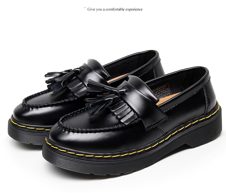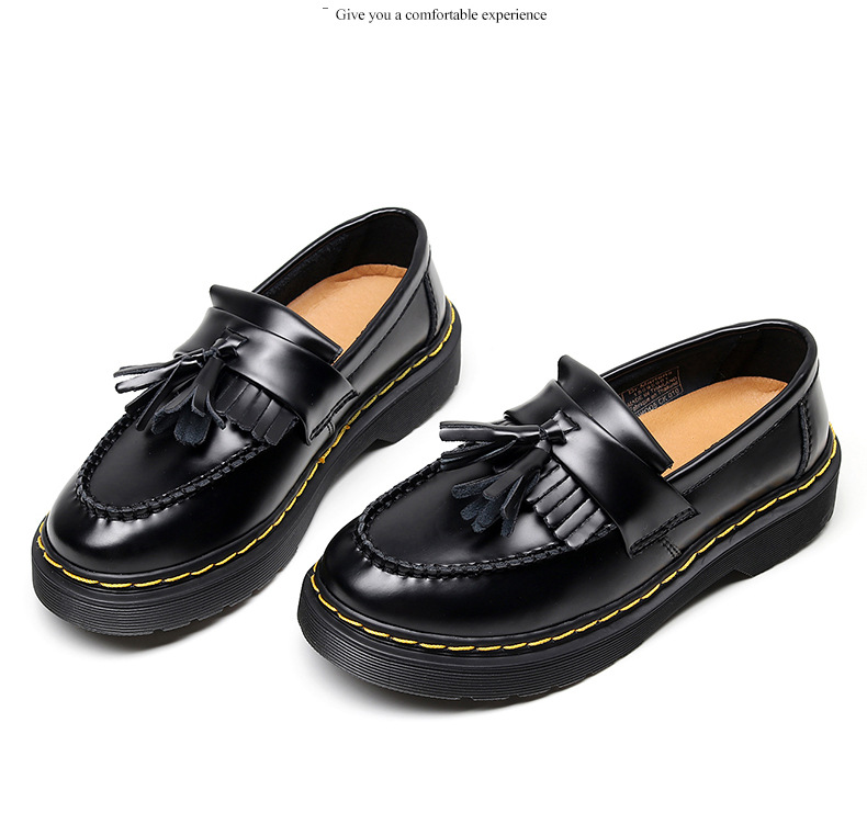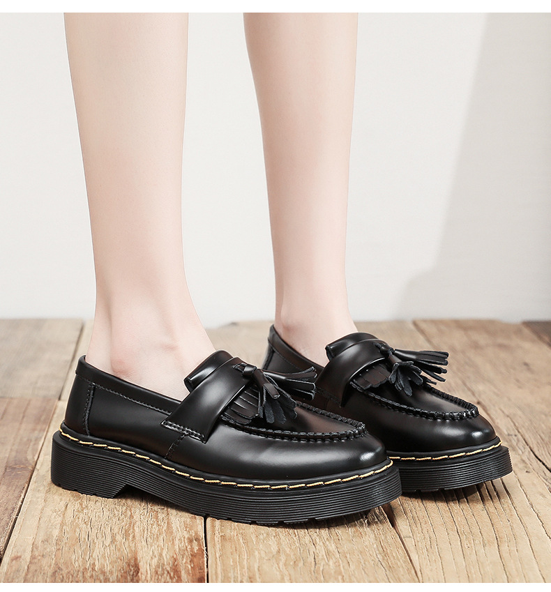 ADRIAN 태슬 로퍼 여성용 정품 가죽 로우탑 마틴 신발 여성용 영국 스타일 패션 학생 라운드 토 캐주얼 신발스토어 가기
