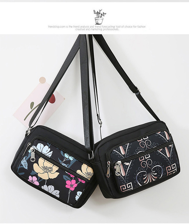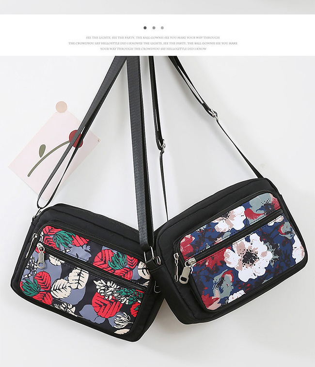 중년 미라 가방 크로스 바디 백 새로운 숙녀 패션 숄더백 캐주얼 지퍼 인쇄 나일론 캔버스 가방스토어 가기