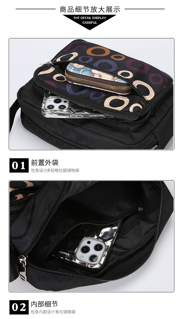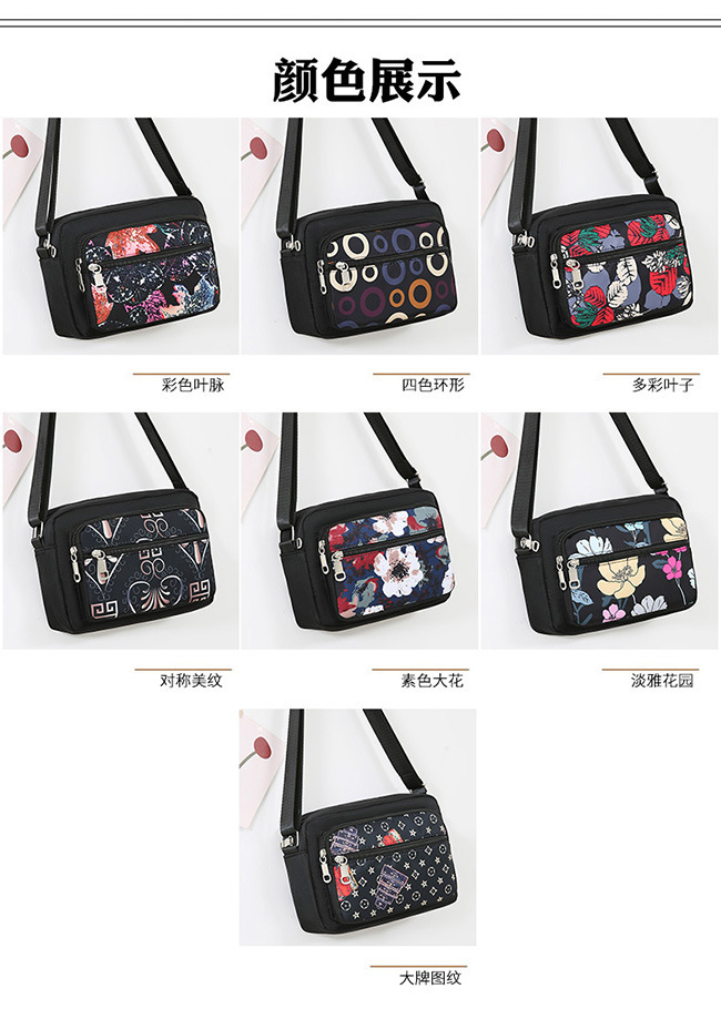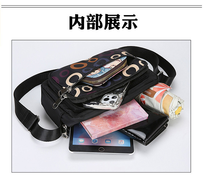 중년 미라 가방 크로스 바디 백 새로운 숙녀 패션 숄더백 캐주얼 지퍼 인쇄 나일론 캔버스 가방