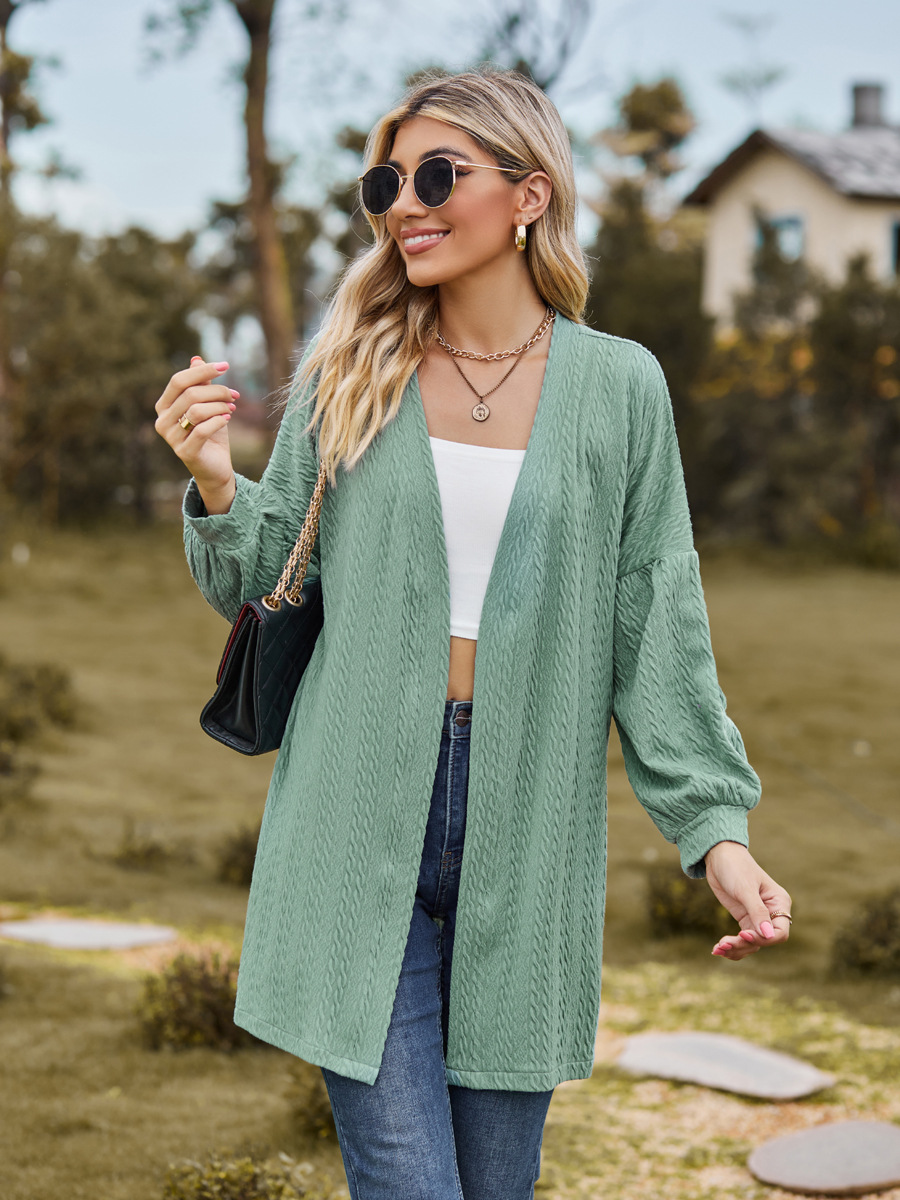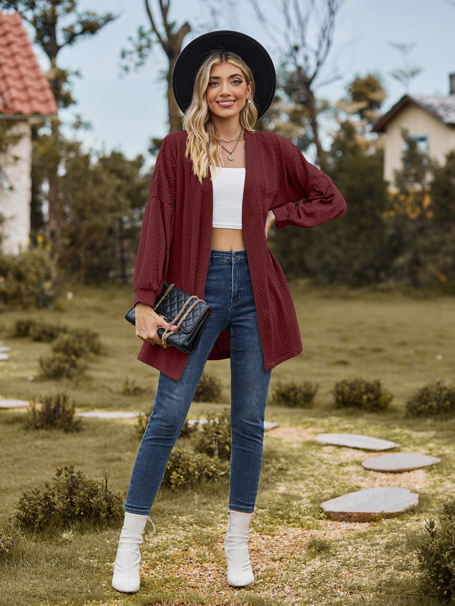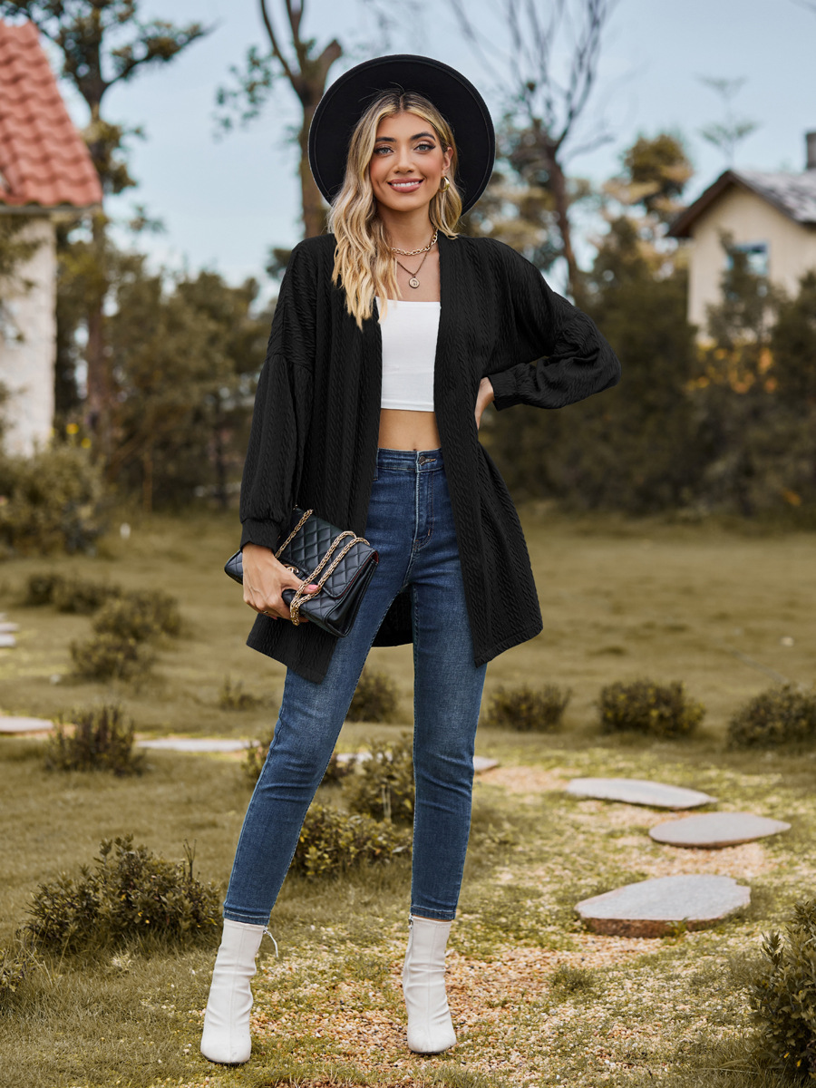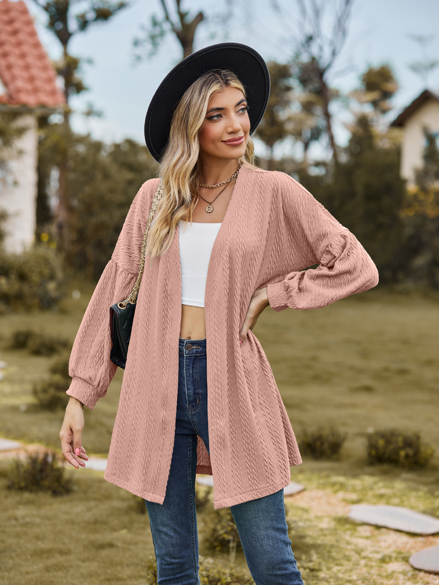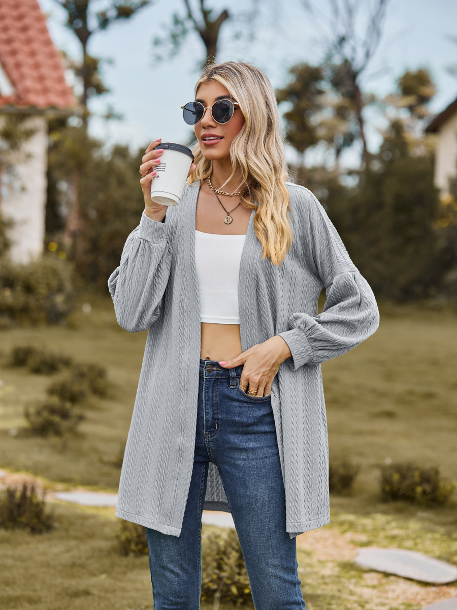 亚马逊2023欧美跨境外贸秋冬新款长袖纯色宽松开衫上衣女针织外套