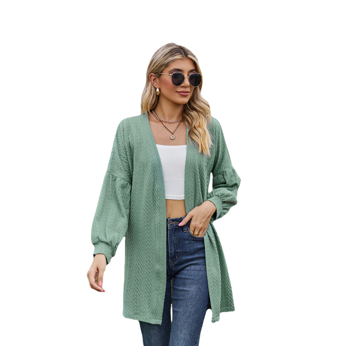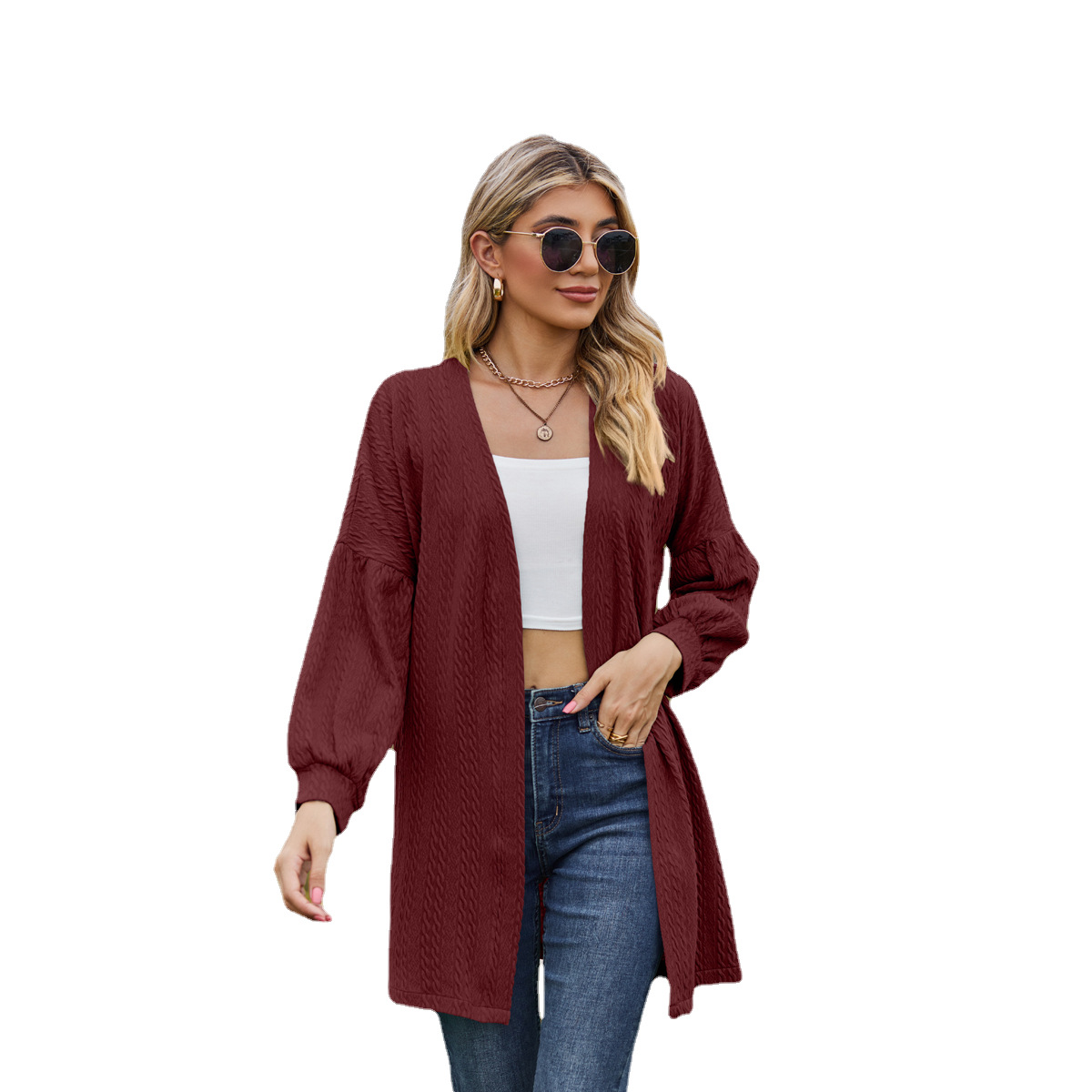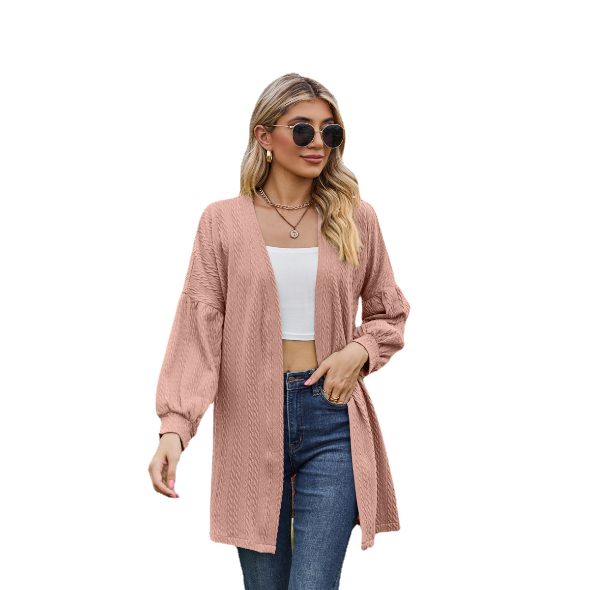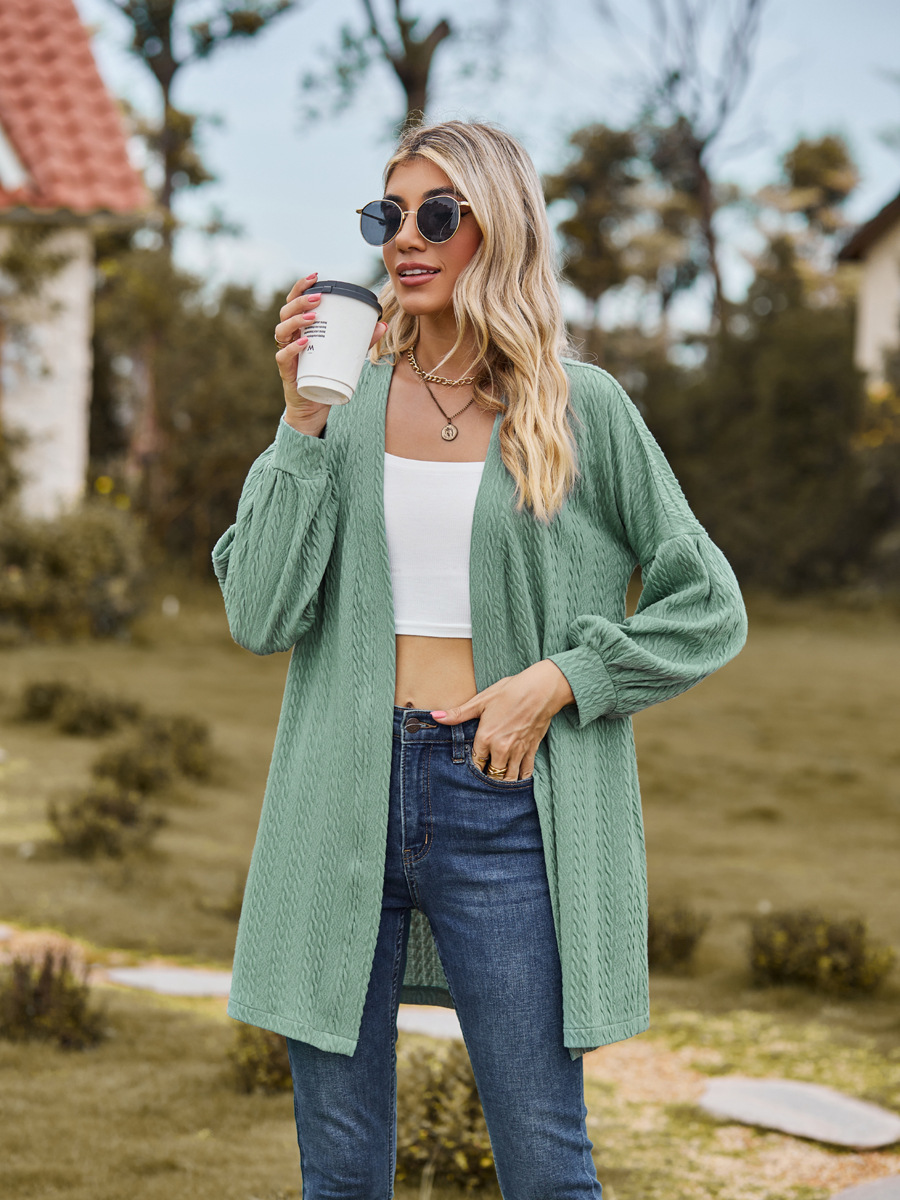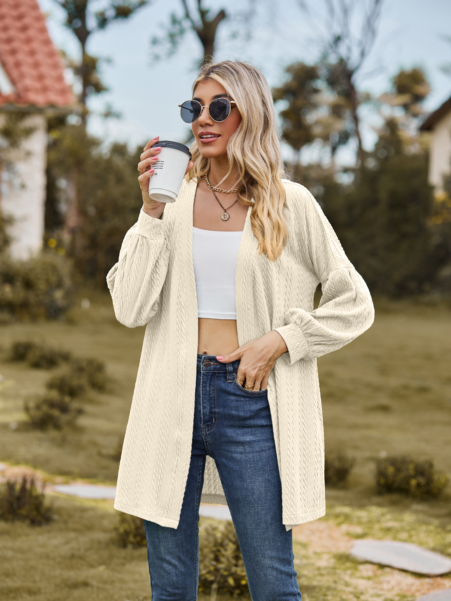 亚马逊2023欧美跨境外贸秋冬新款长袖纯色宽松开衫上衣女针织外套