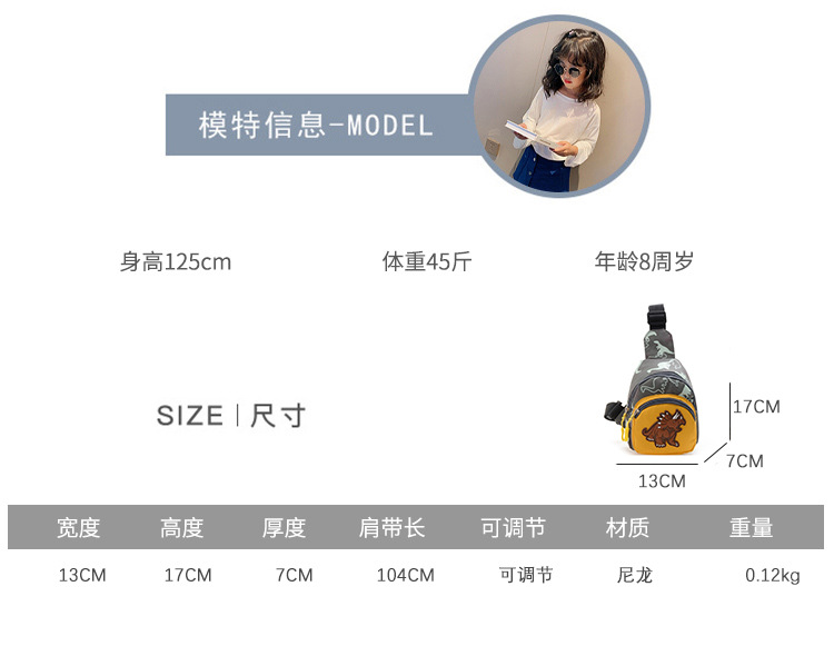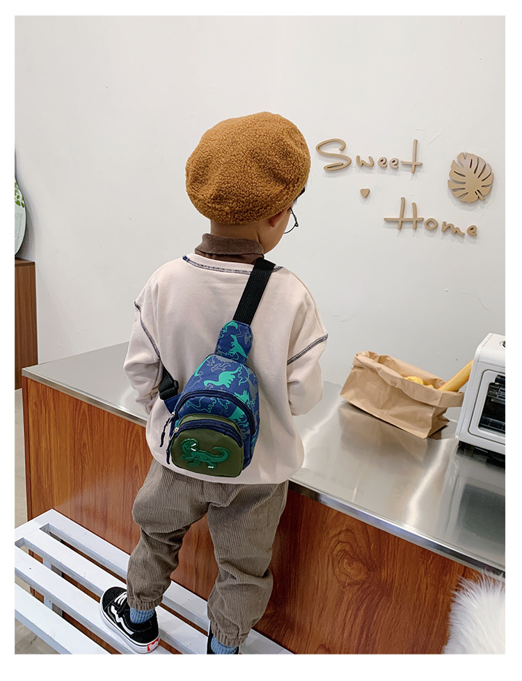 한국 스타일 패션 어린이 가슴 가방 소년 아기 어깨 크로스 바디 가방 캐주얼 개인화 된 소년 소녀 위장 공룡 작은 배낭