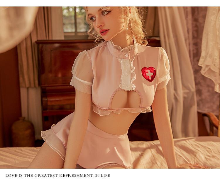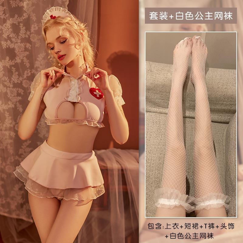섹시한 속옷 섹시한 균일 유혹 순수한 욕망 작은 가슴 플러스 사이즈 잠옷 간호사 역할 놀이 세트 침구