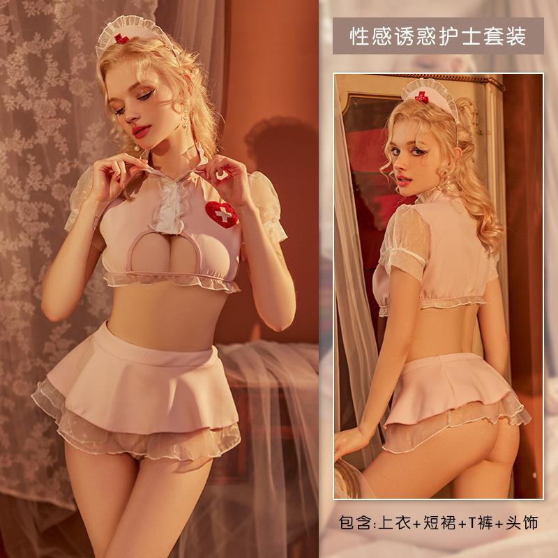섹시한 속옷 섹시한 균일 유혹 순수한 욕망 작은 가슴 플러스 사이즈 잠옷 간호사 역할 놀이 세트 침구스토어 가기