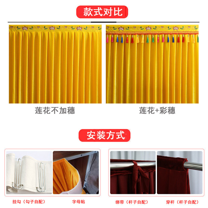 ✅ 새로운 스타일의 불전당, 사찰, 가정용 대형 황색 연꽃 불상 예배용 테이블보, 불상 배경 커튼, 불교 커튼스토어 가기