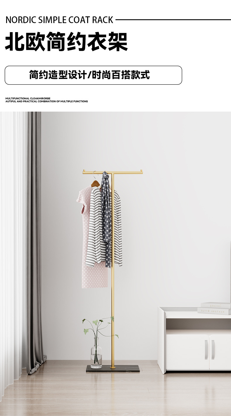 공장 직접 판매 바닥 스탠딩 침실 옷걸이 바닥 스탠딩 옷걸이 간단한 현대 코트 랙 침대 옆 선반