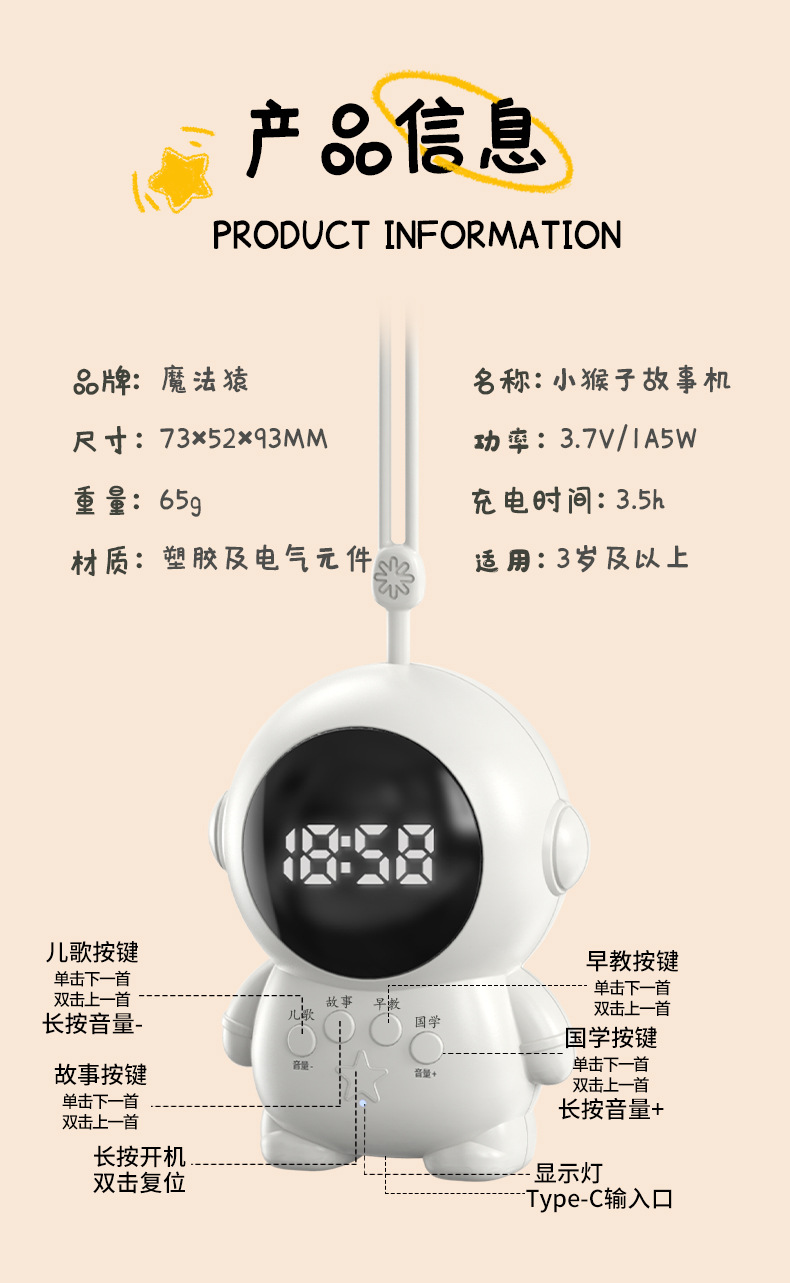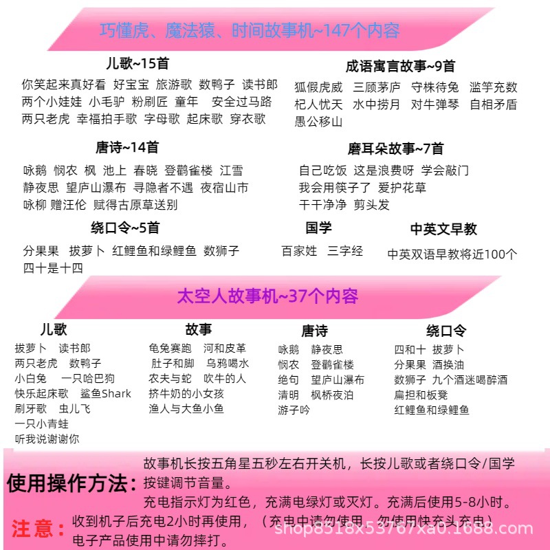 어린이 조기 교육 기계 우주인 이야기 기계 이야기 아기 노래 음악 계몽주의 플레이어 장난감을 듣고 이야기스토어 가기