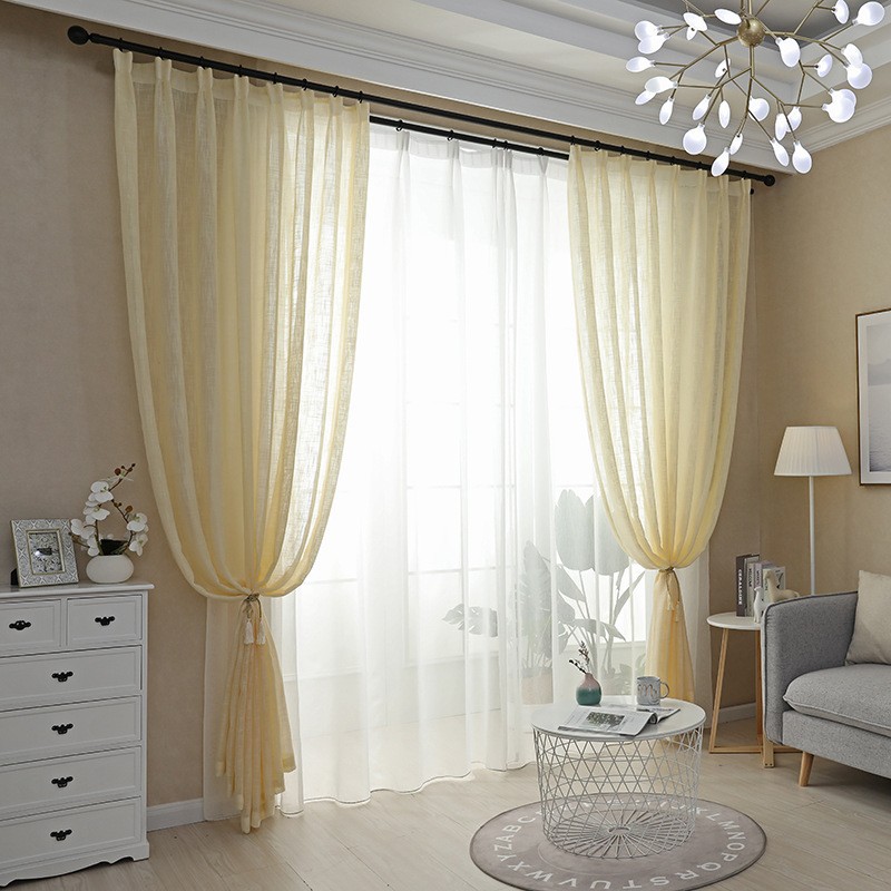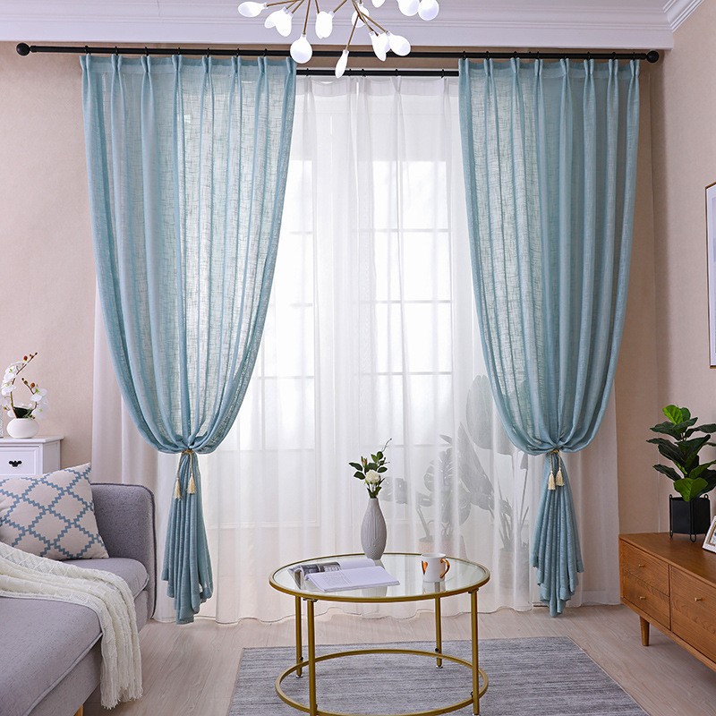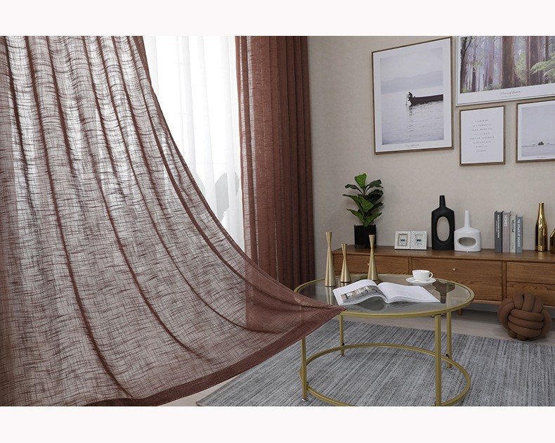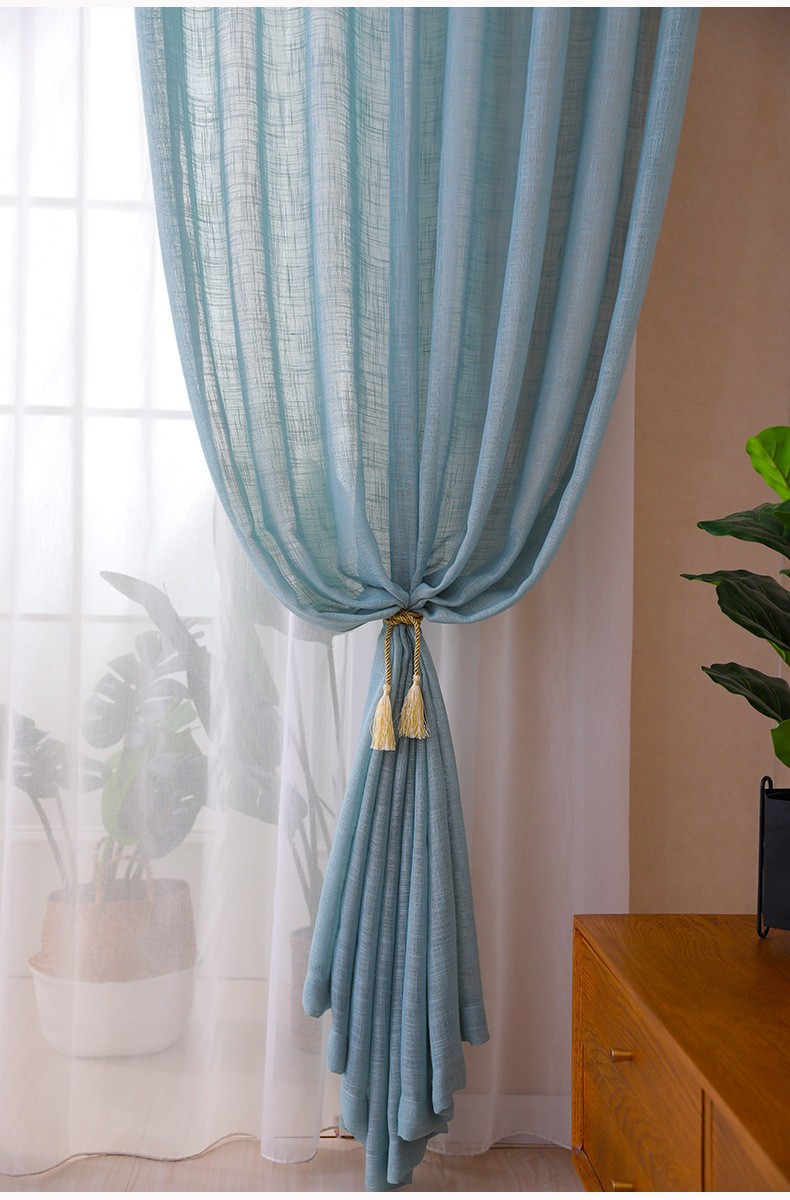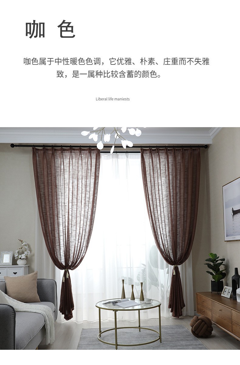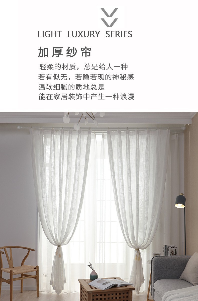 새로운 일본식 반 음영 완성 된 창 화면 크로스 모조 린넨 원사 단색 거실 베이 창 스크린 커튼