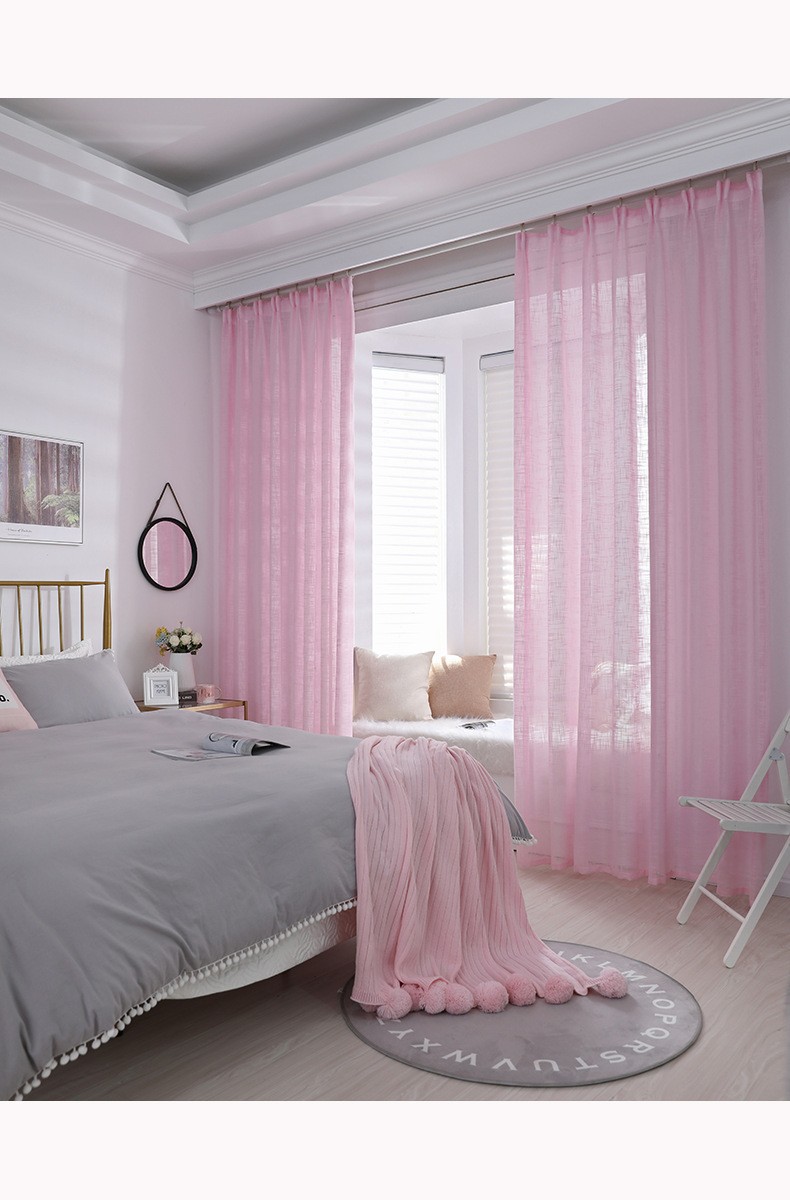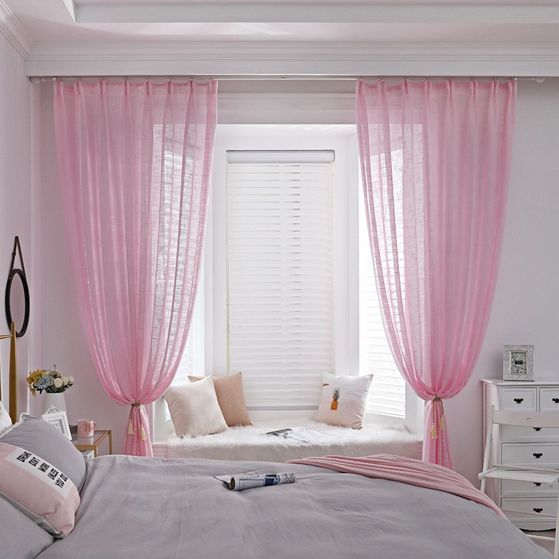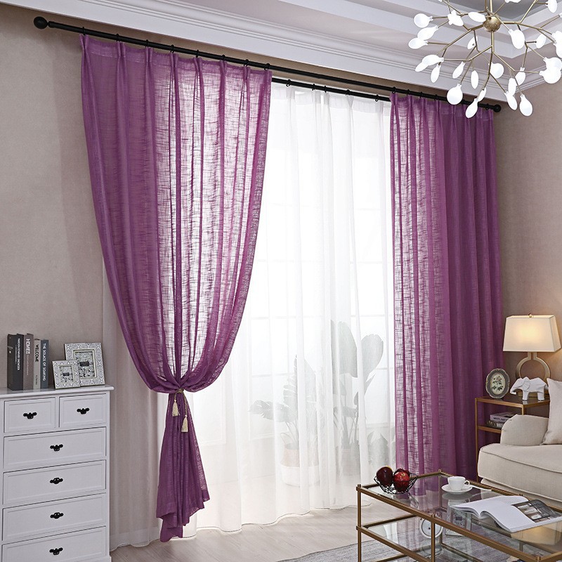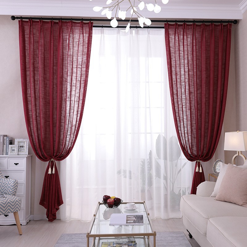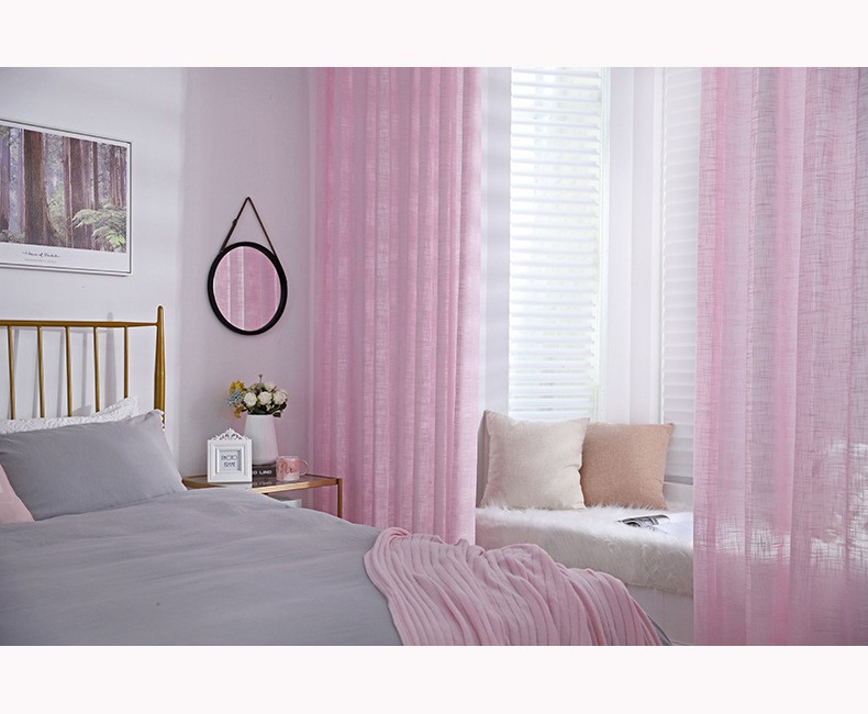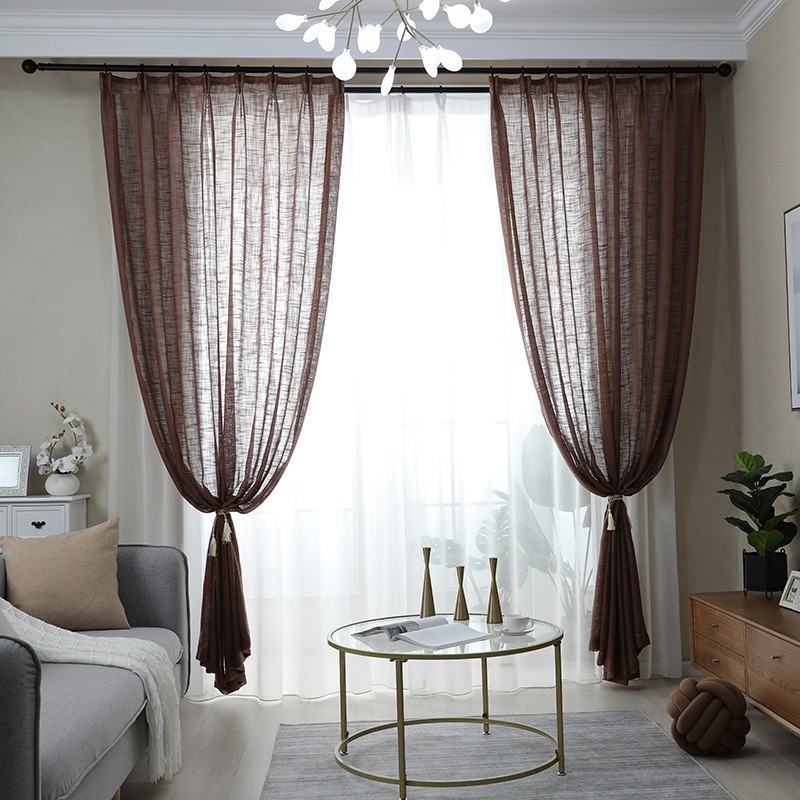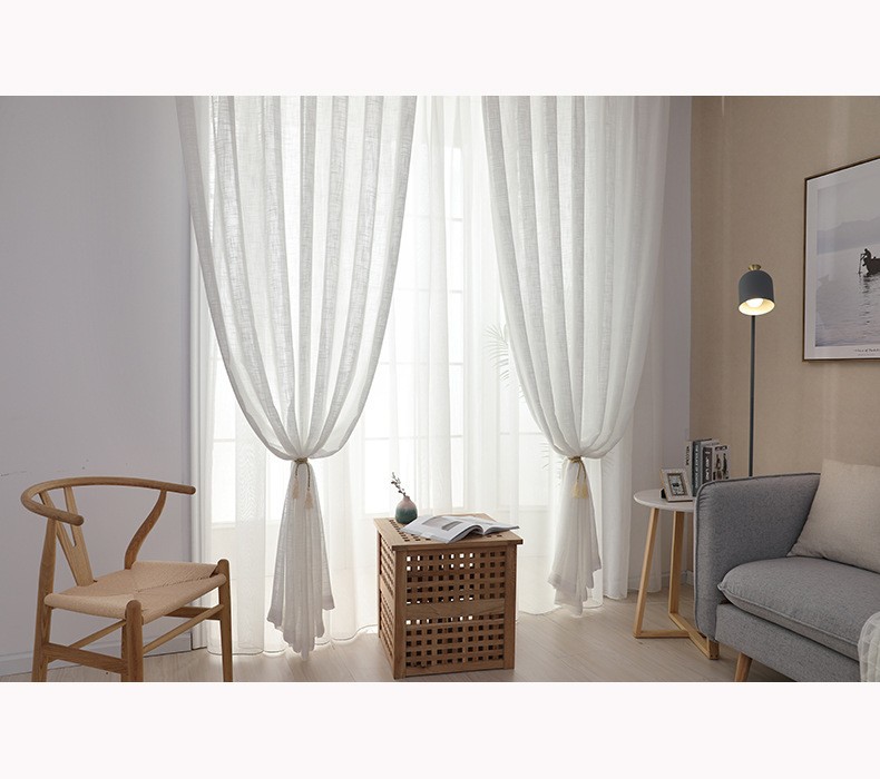 새로운 일본식 반 음영 완성 된 창 화면 크로스 모조 린넨 원사 단색 거실 베이 창 스크린 커튼