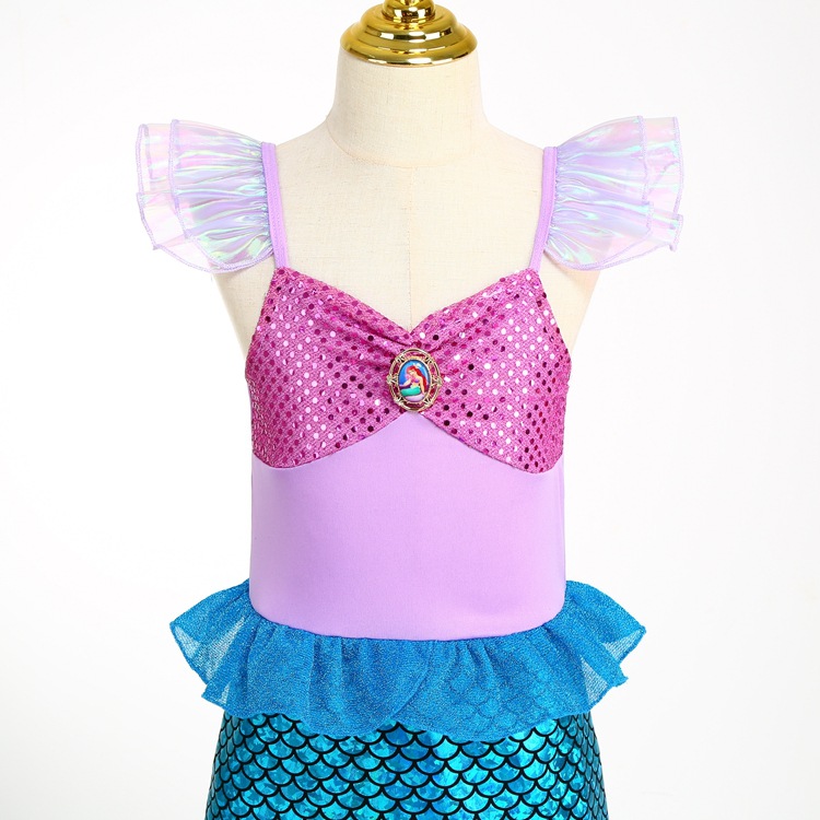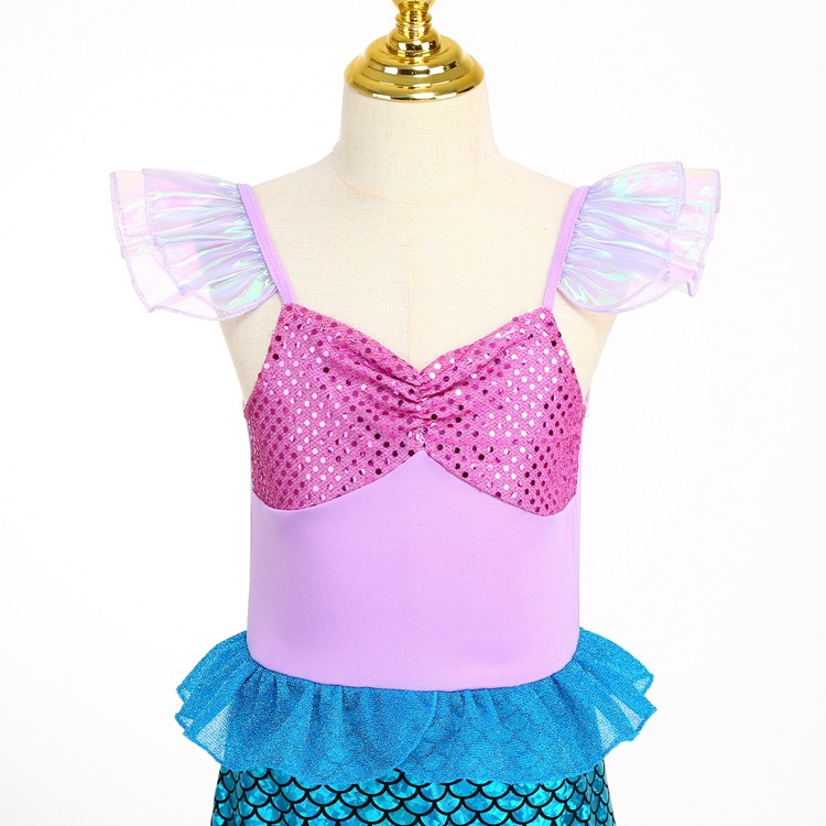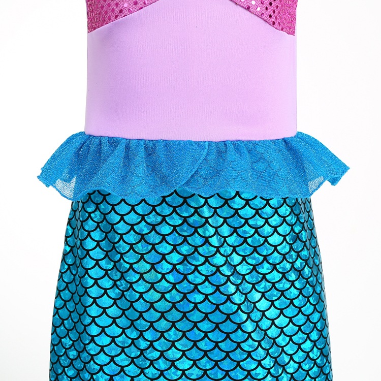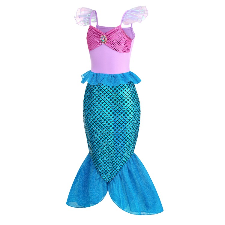 20.23 만 거룩한 축제 어린이 인어 조끼 원피스 여자의 서양 스타일 비행 소매 공주 원피스 피쉬 테일 긴 원피스스토어 가기