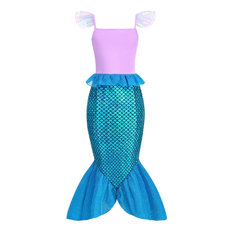 20.23 만 거룩한 축제 어린이 인어 조끼 원피스 여자의 서양 스타일 비행 소매 공주 원피스 피쉬 테일 긴 원피스