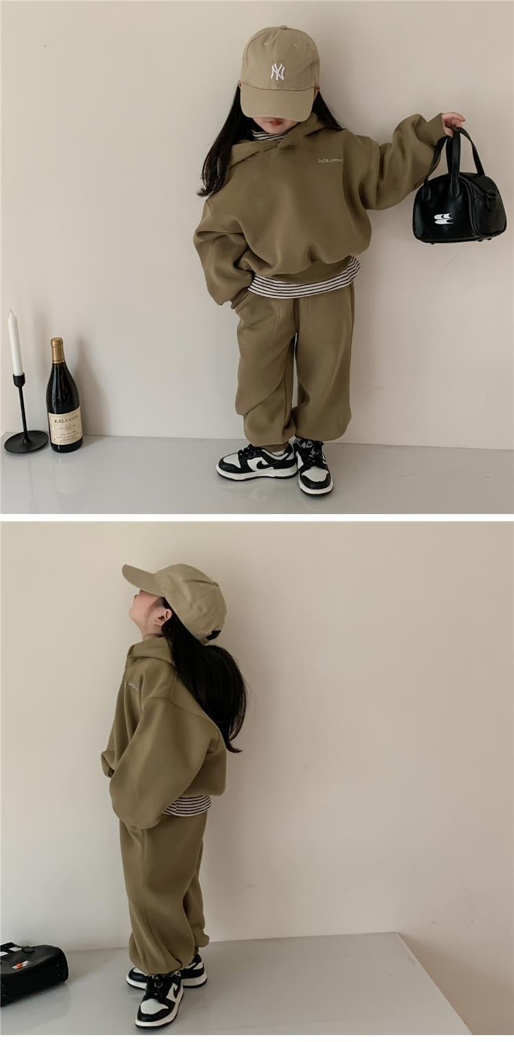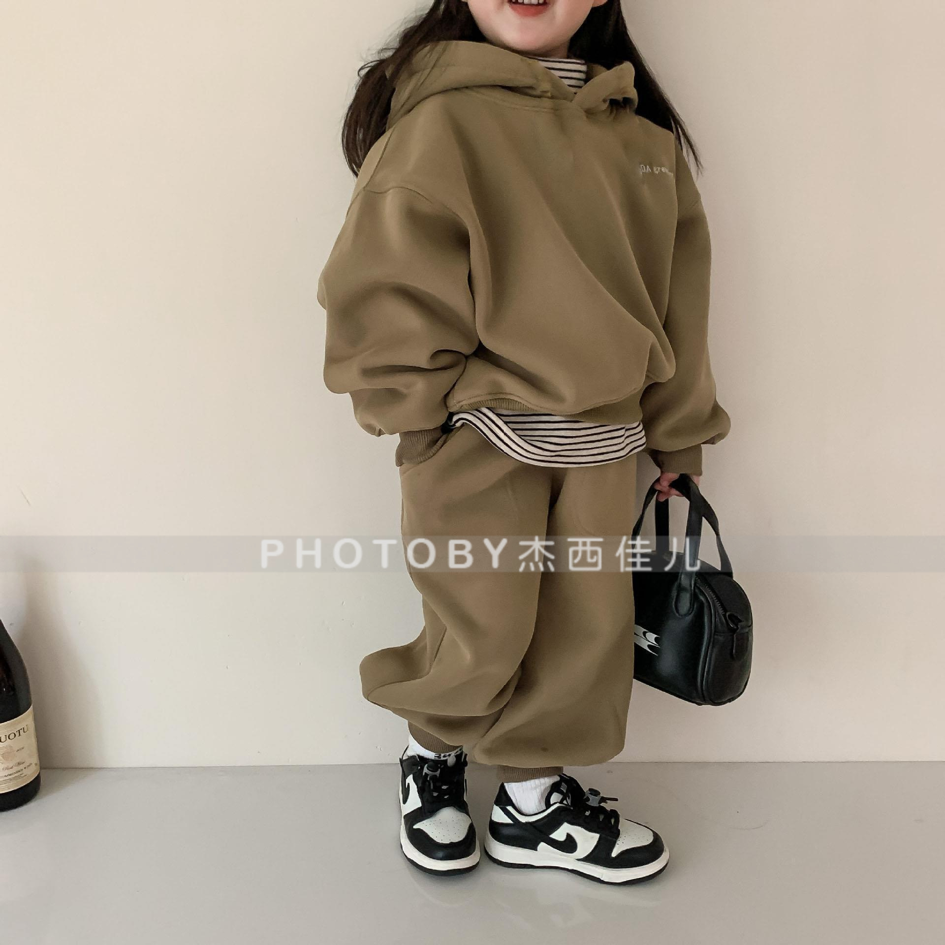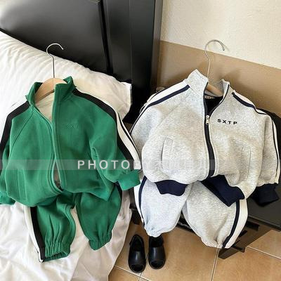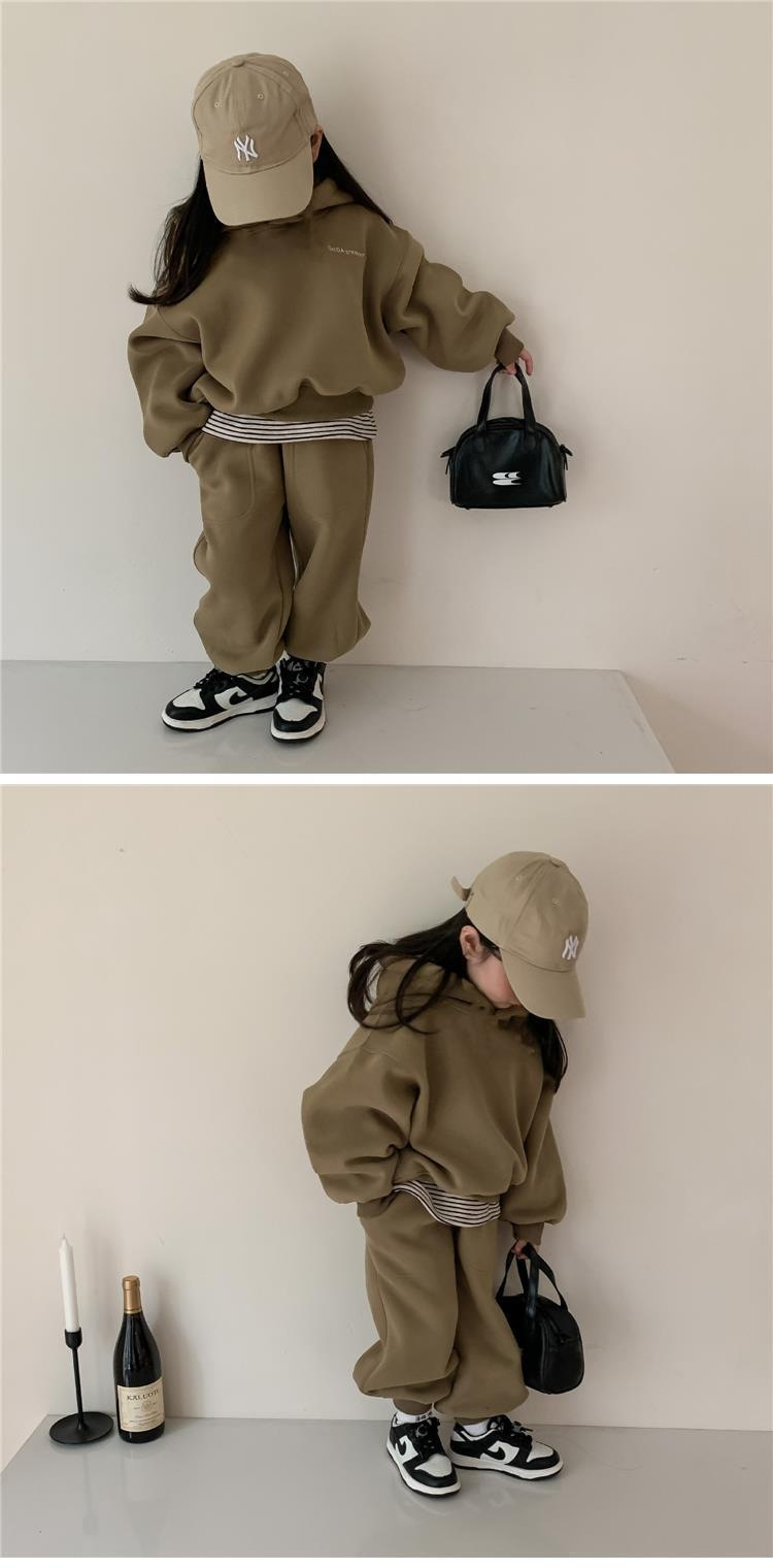 2025 가을 겨울 아동복 심플 투피스 세트 유아 남아 의류 플리스 스웨트셔츠 트렌디 스타일 세트스토어 가기