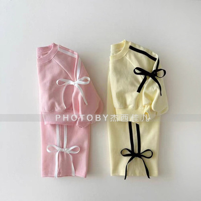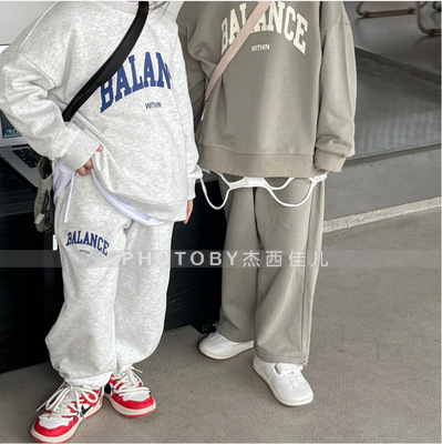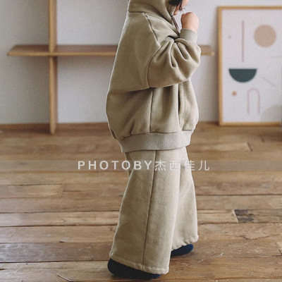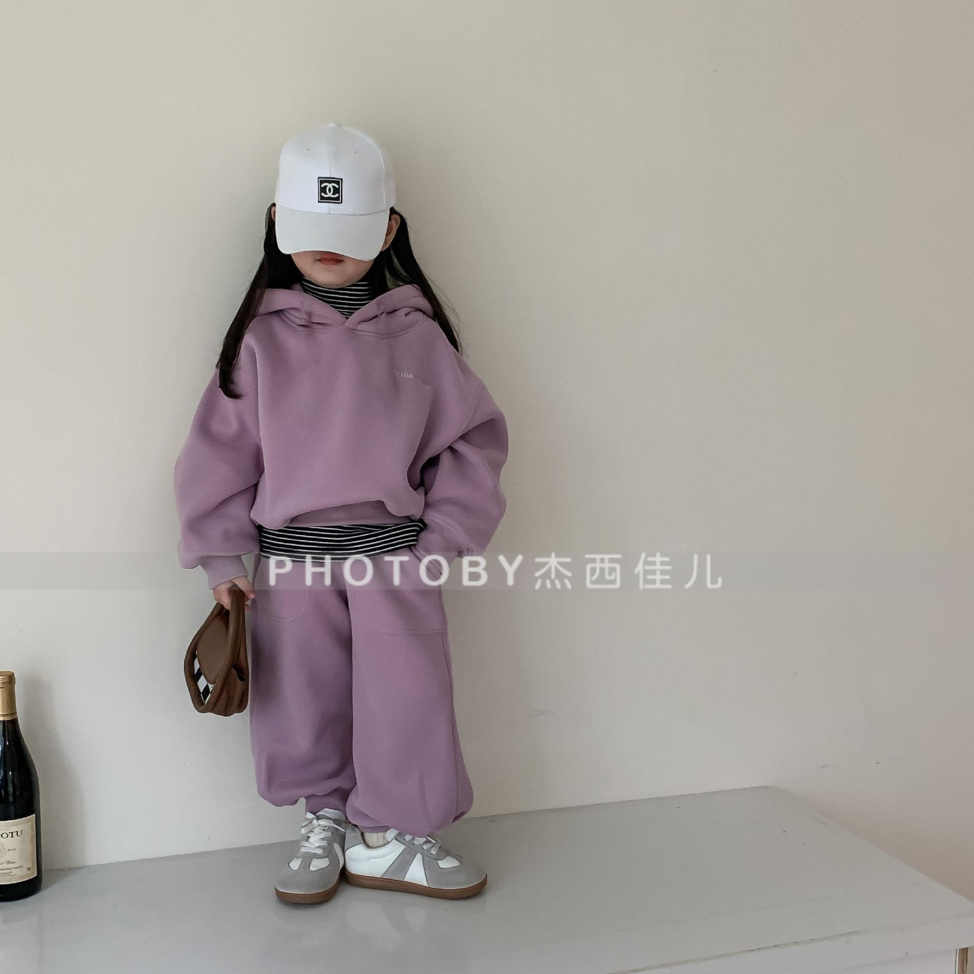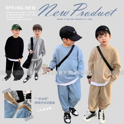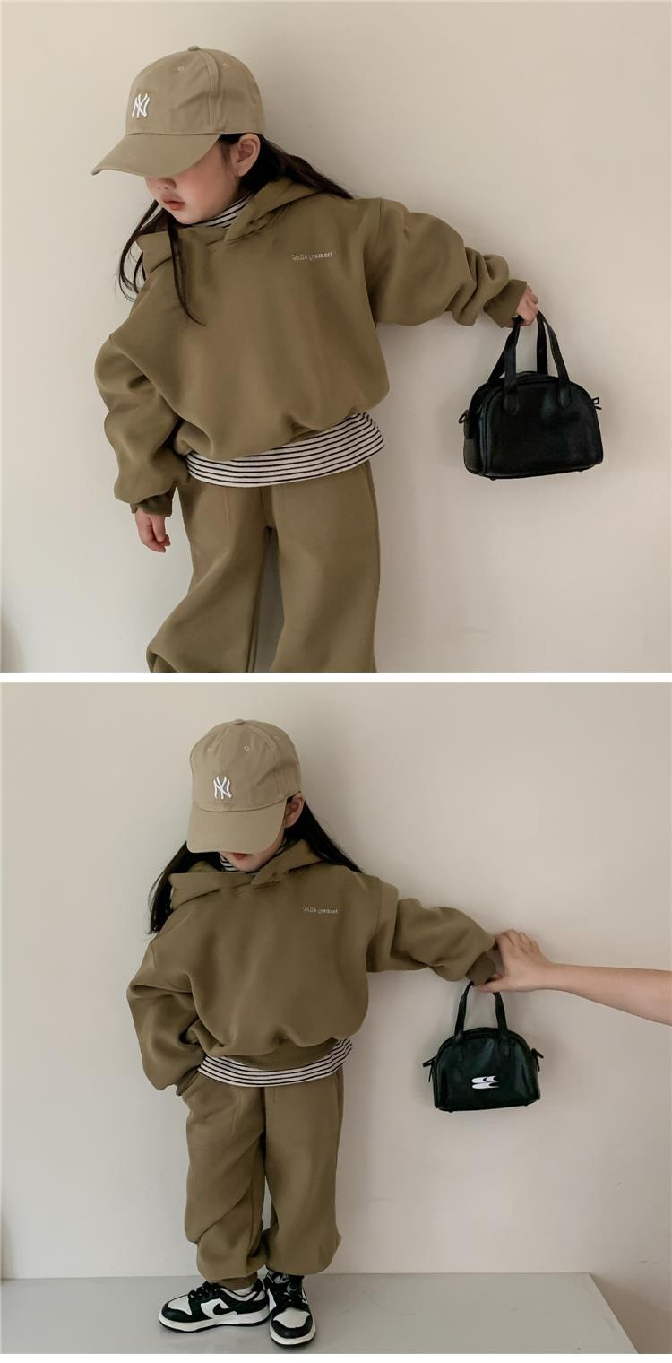 2025 가을 겨울 아동복 심플 투피스 세트 유아 남아 의류 플리스 스웨트셔츠 트렌디 스타일 세트스토어 가기