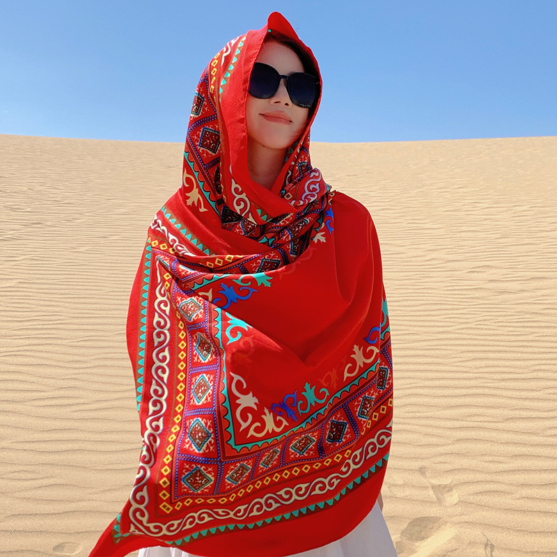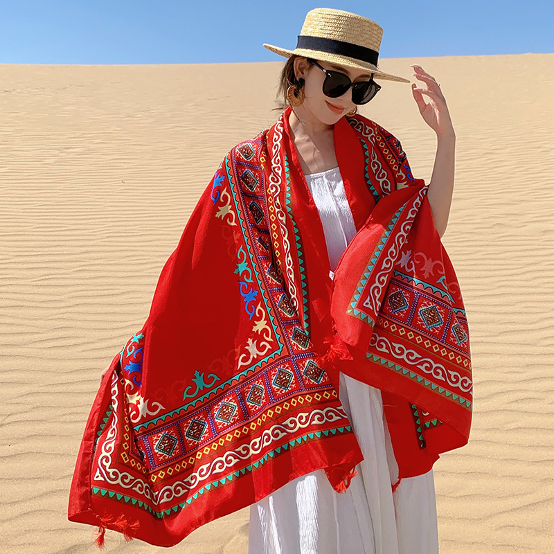 캐주얼 야외 에스닉 스타일 망토 통기성 스카프 편안한 대형 망토 사막 패션 사진 여행 숄