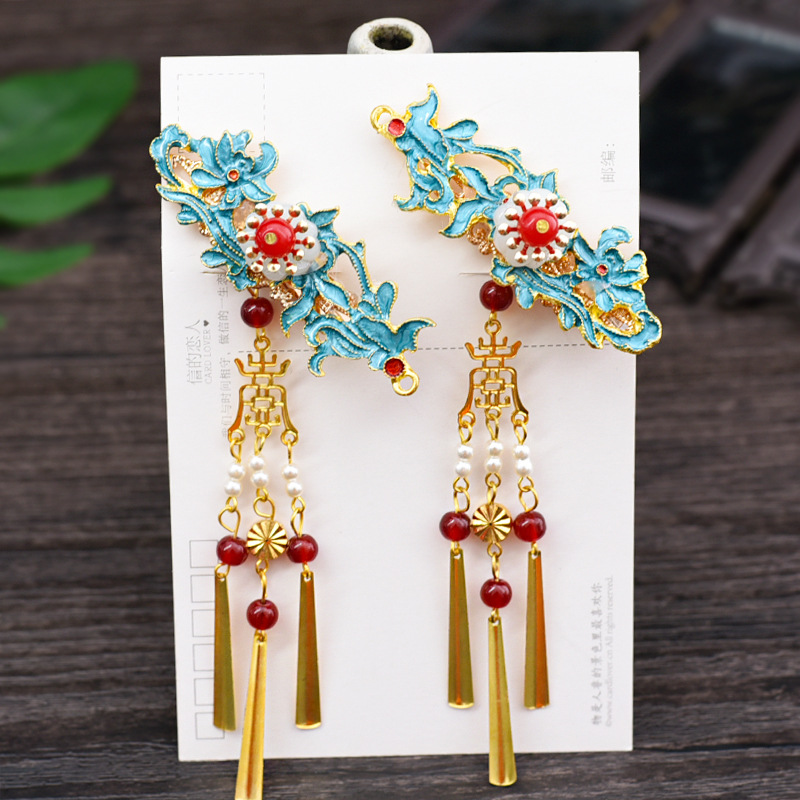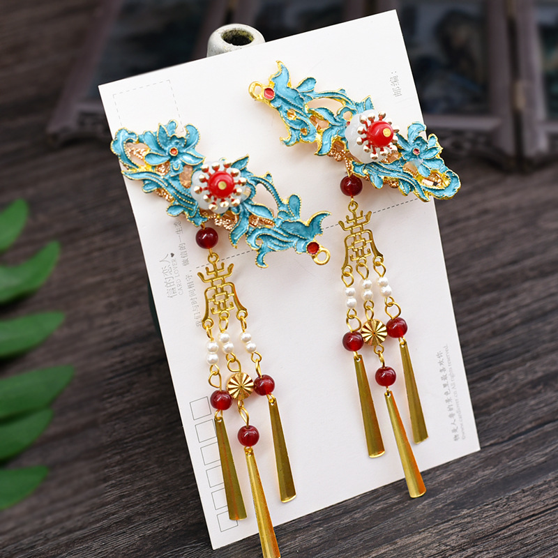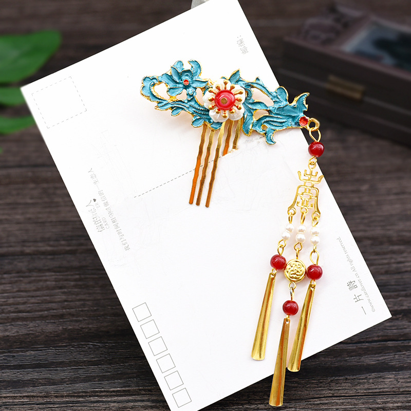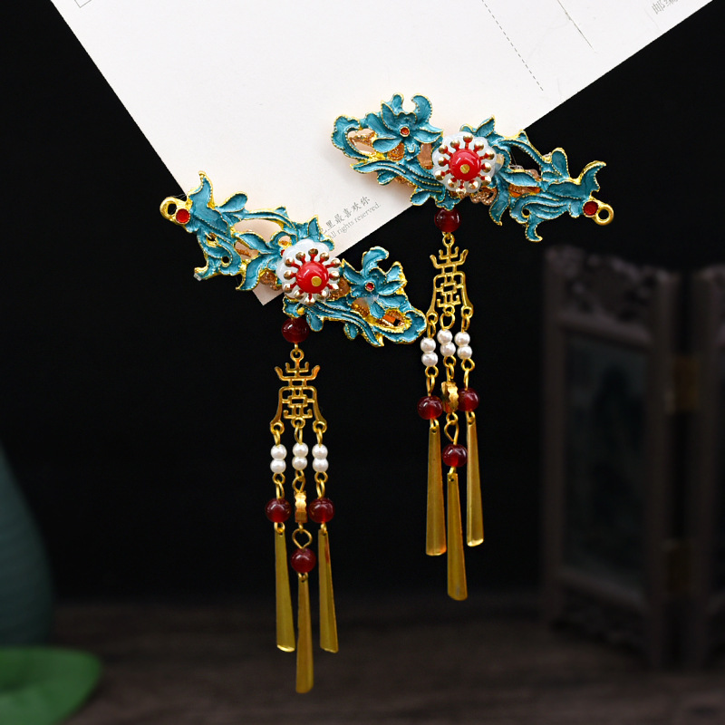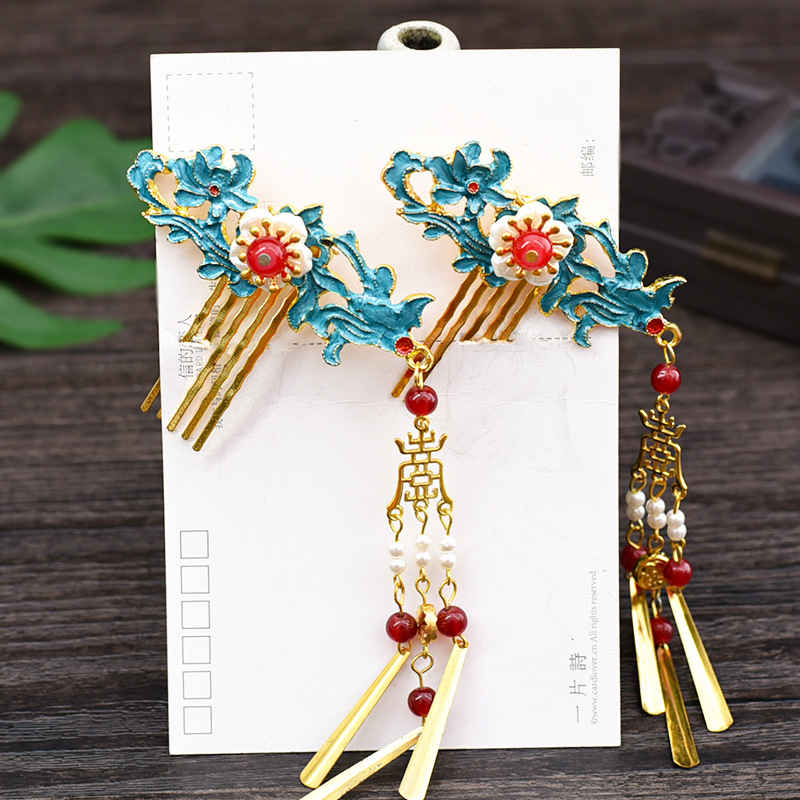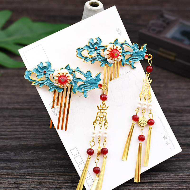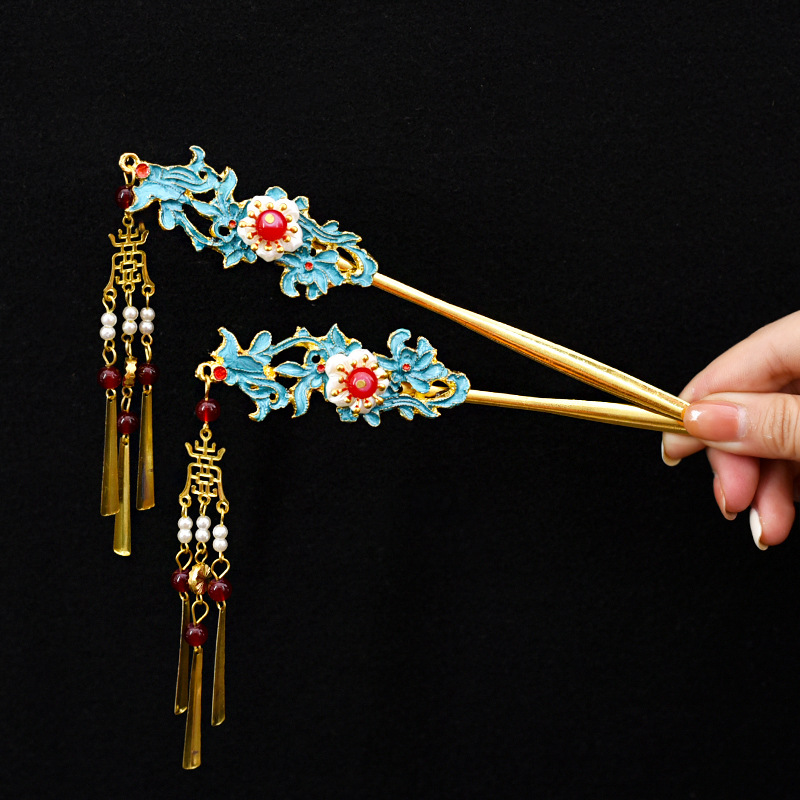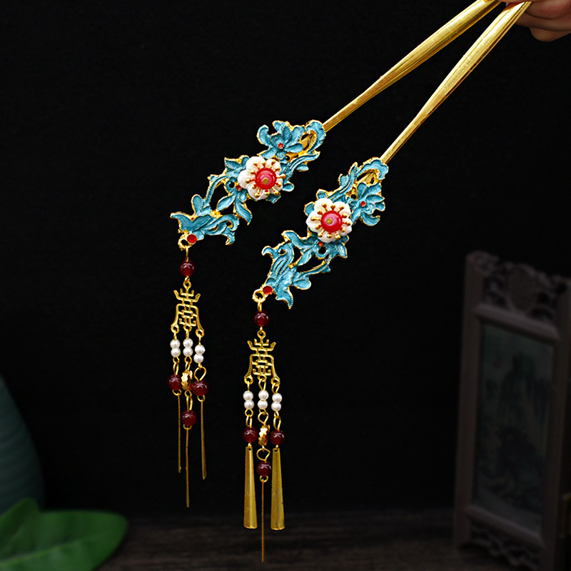 밍 스타일 구운 파란 머리 액세서리 구운 파란 머리 머리핀 세트 긴 새로운 스타일 중국 스타일 머리 머리핀 복고풍 스타일 이동식 헤어 액세서리스토어 가기