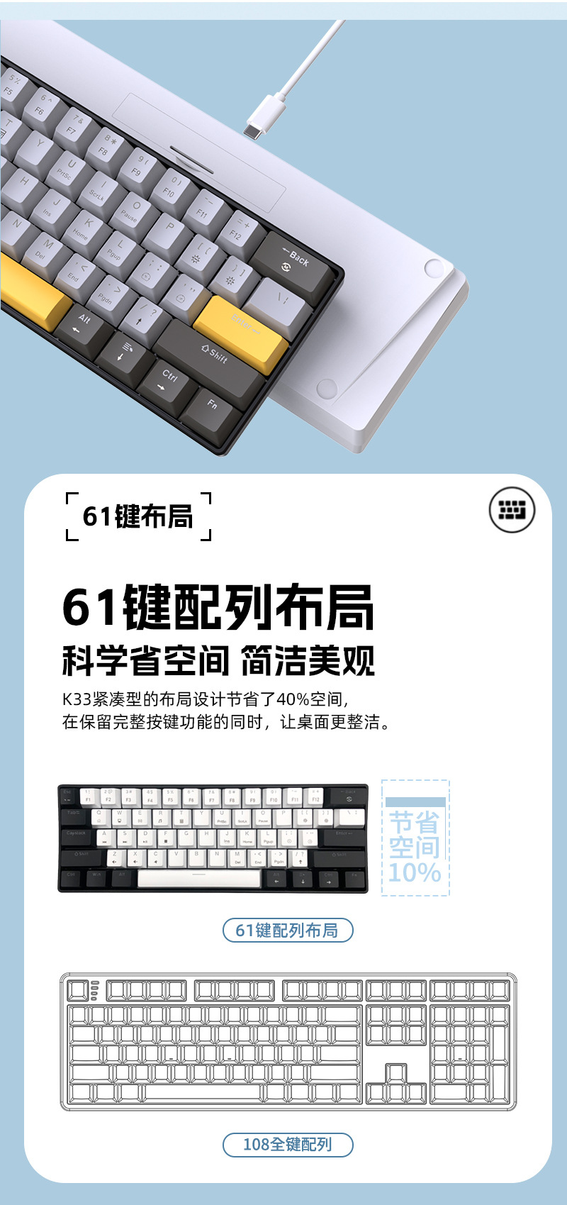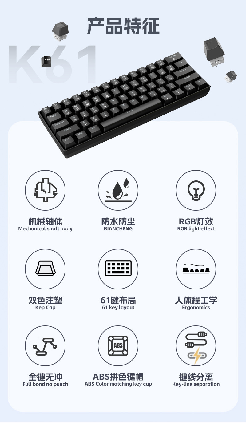 • 61키 흑백 컬러 매칭 기계식 키보드