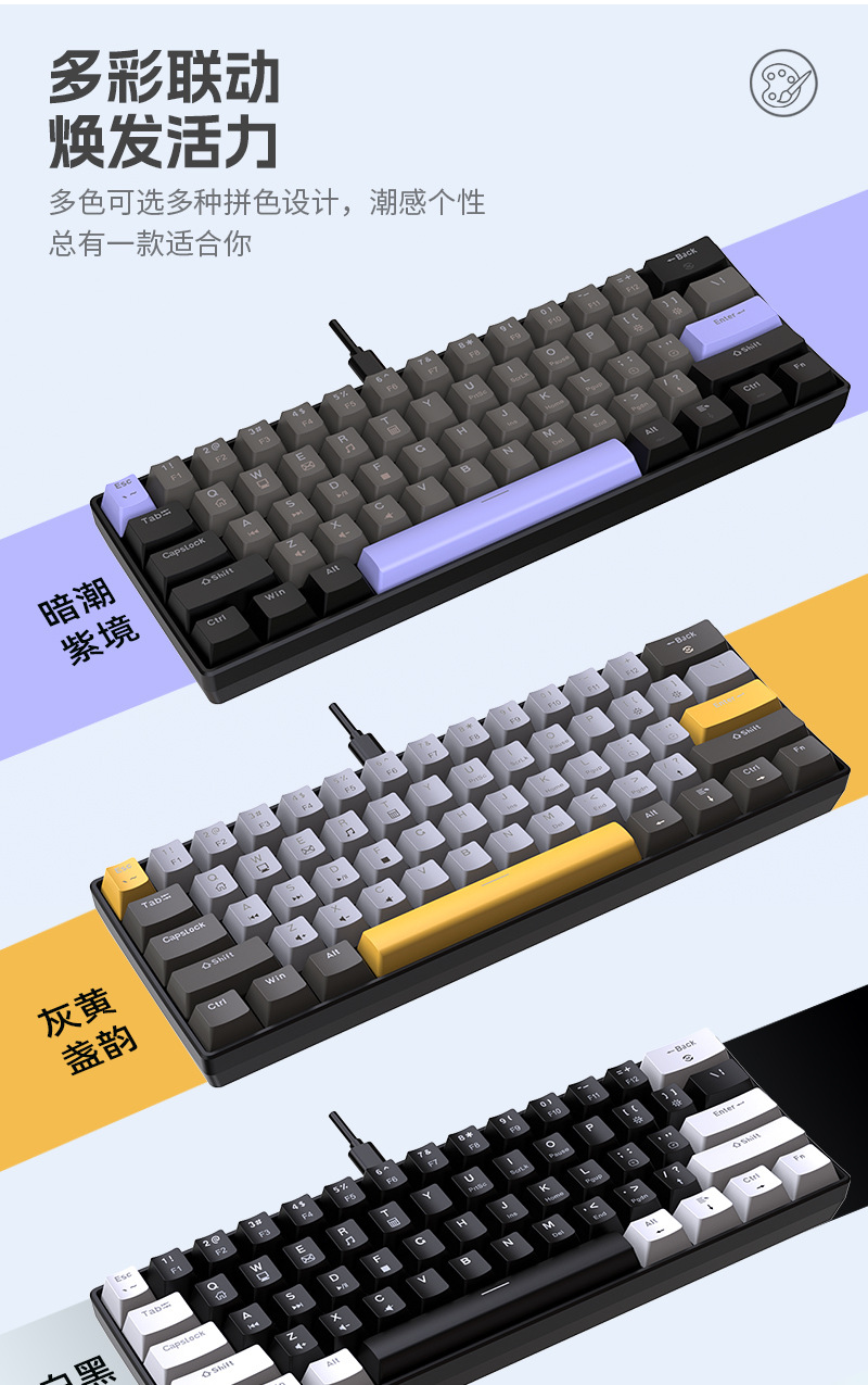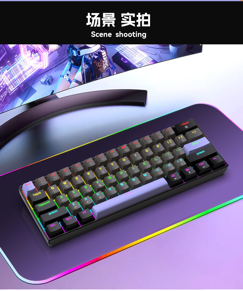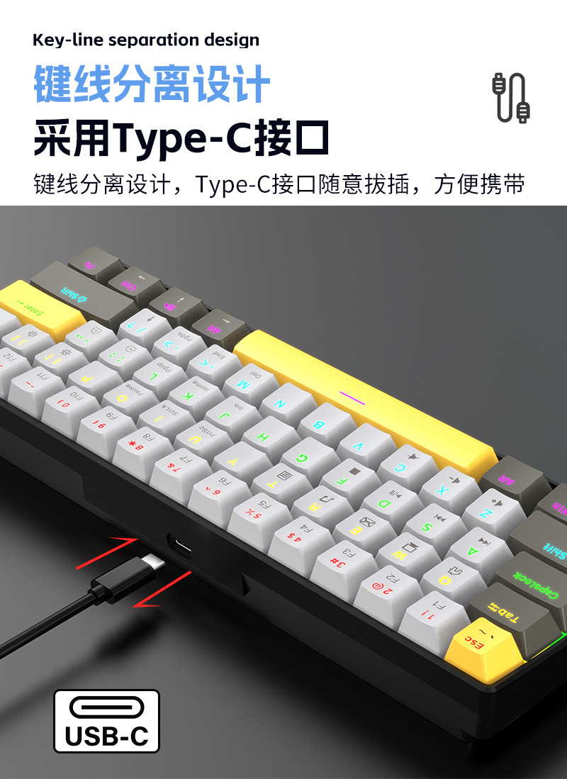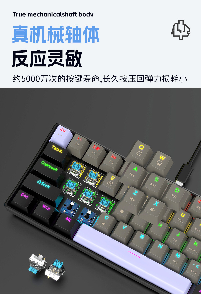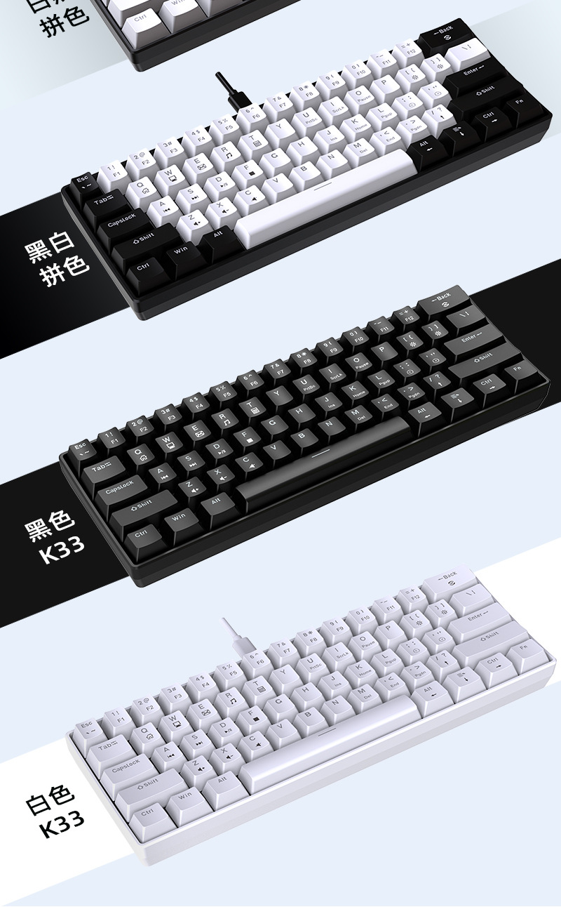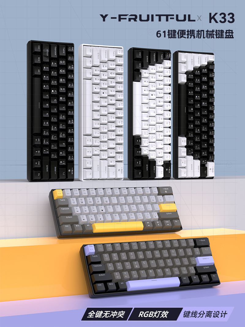 Yun Guo K33 e 스포츠 유선 기계식 키보드 플러그 가능 61 키 발광 녹색 샤프트 기계식 키보드 컴퓨터 액세서리스토어 가기