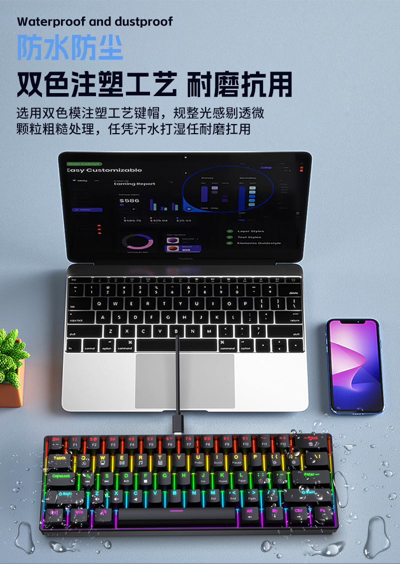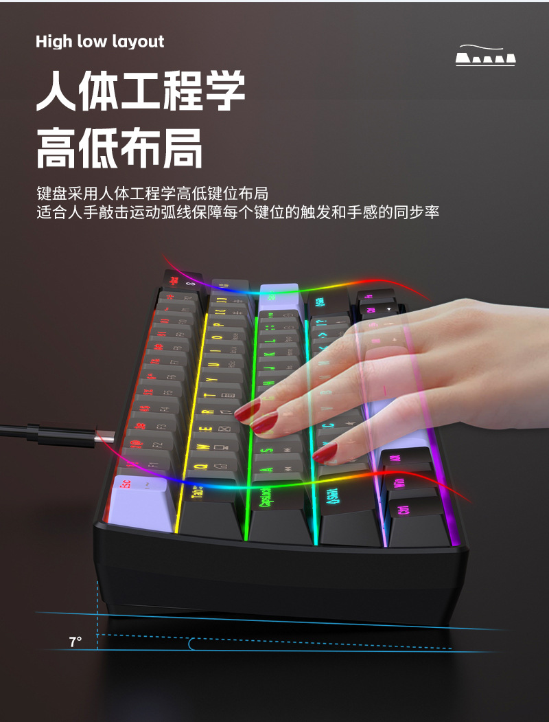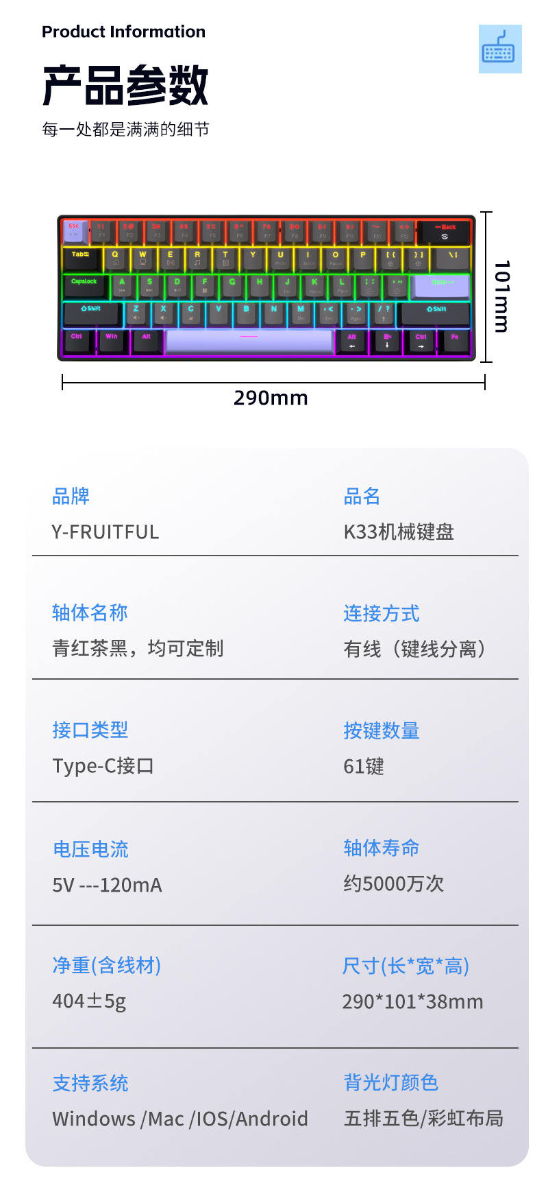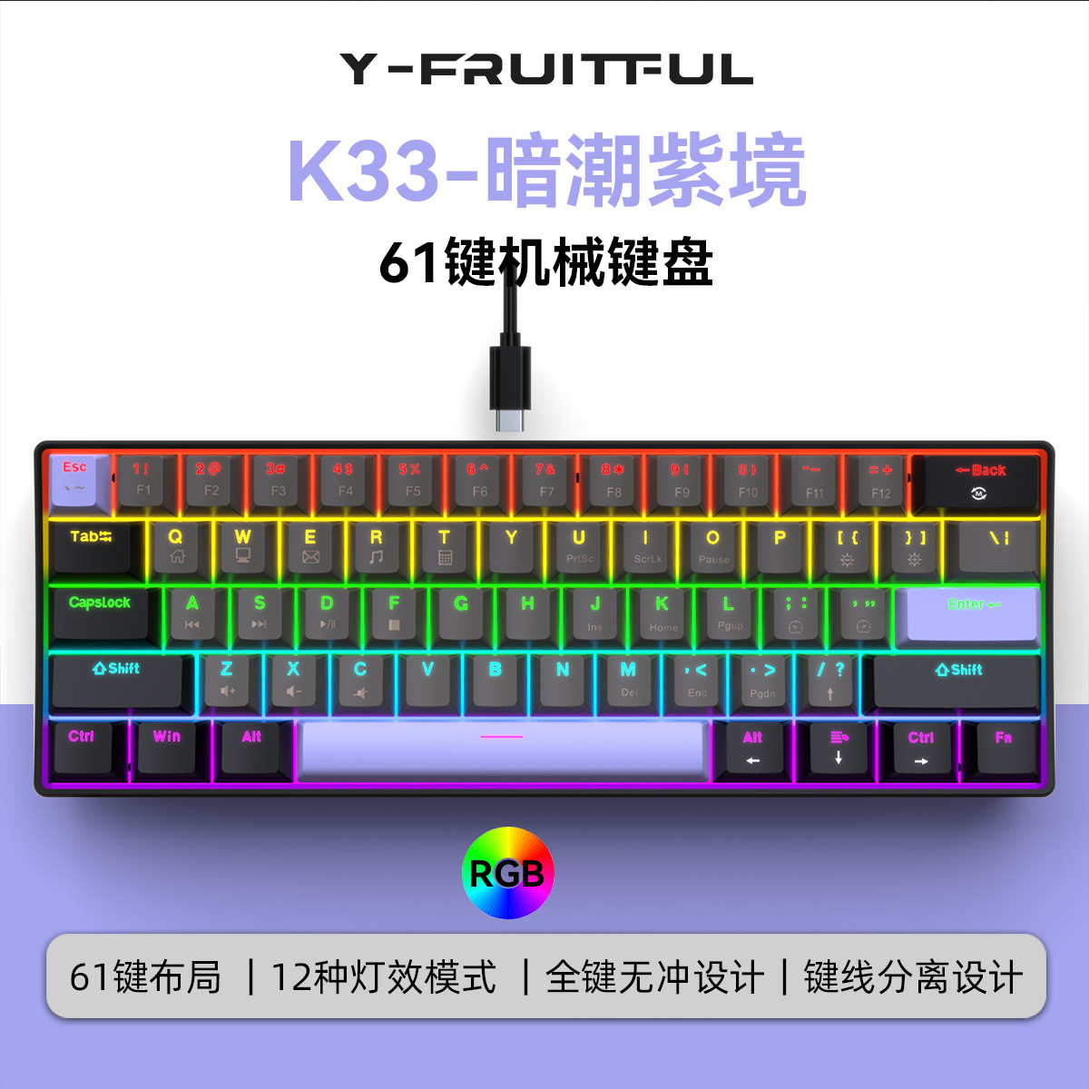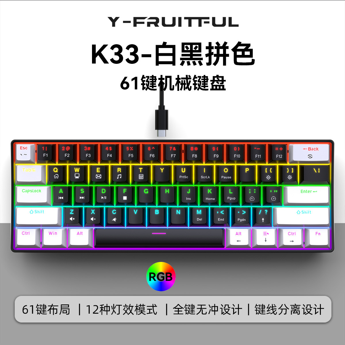 Yun Guo K33 e 스포츠 유선 기계식 키보드 플러그 가능 61 키 발광 녹색 샤프트 기계식 키보드 컴퓨터 액세서리스토어 가기