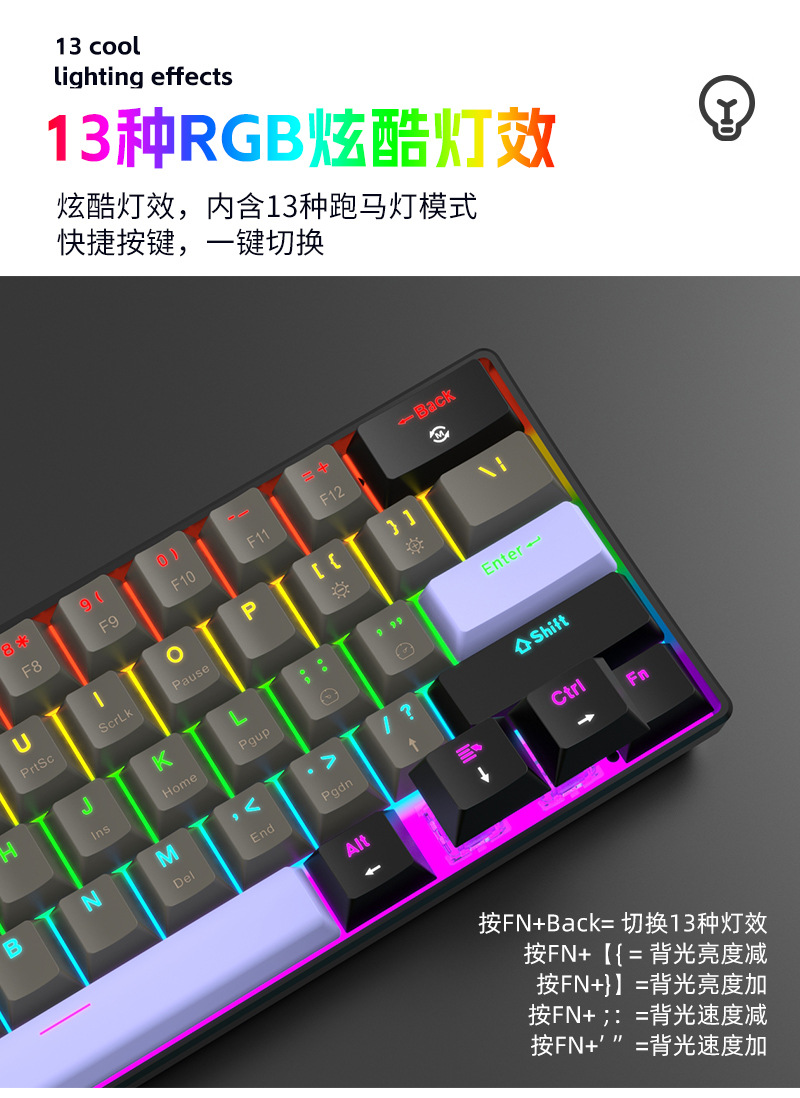 Yun Guo K33 e 스포츠 유선 기계식 키보드 플러그 가능 61 키 발광 녹색 샤프트 기계식 키보드 컴퓨터 액세서리