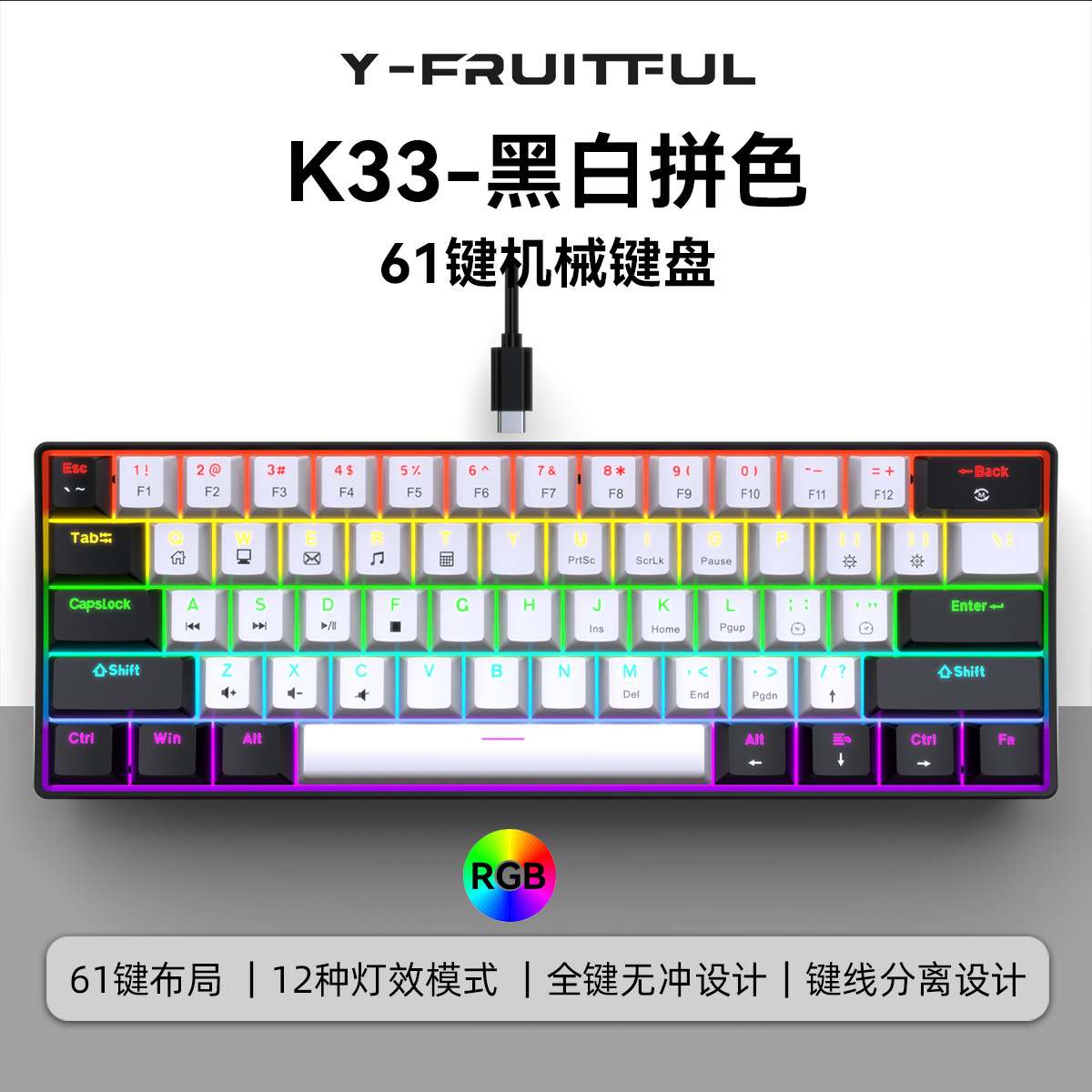 • 61키 흰색과 검정색 컬러 매칭 기계식 키보드